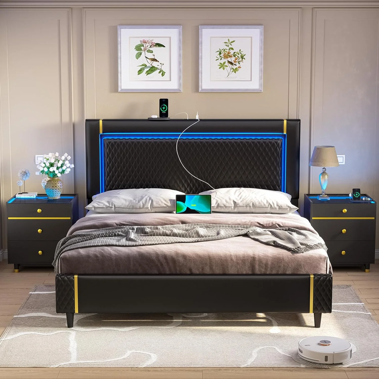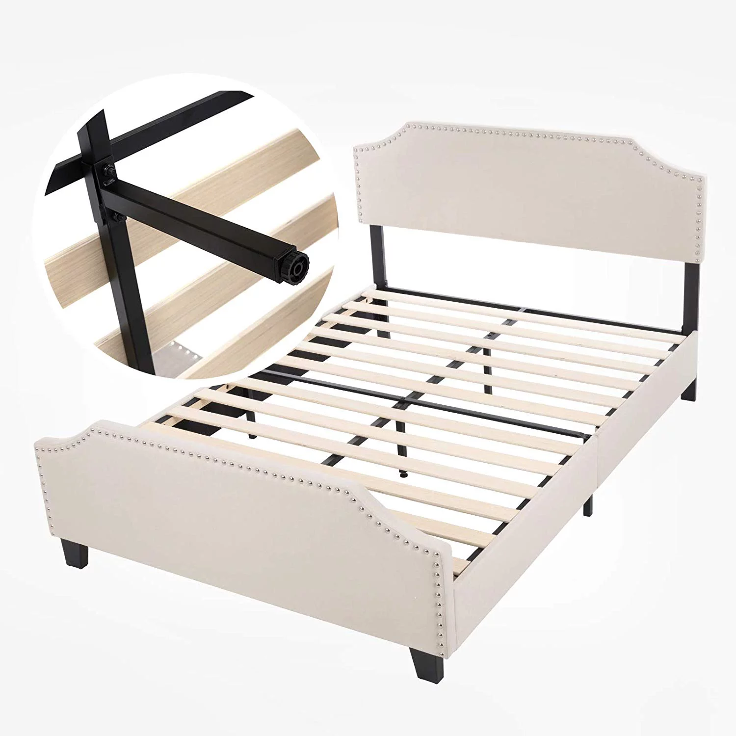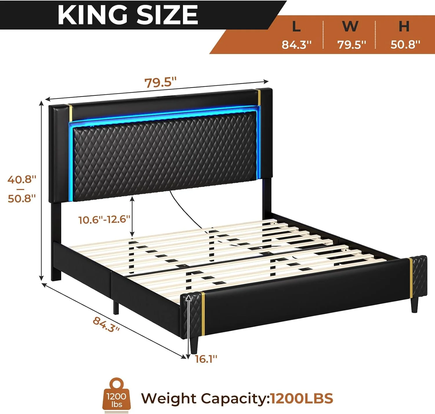 Smiaoer King Size Metal Platform Bed Frame with Headboard and Footboard, No Box Spring Needed