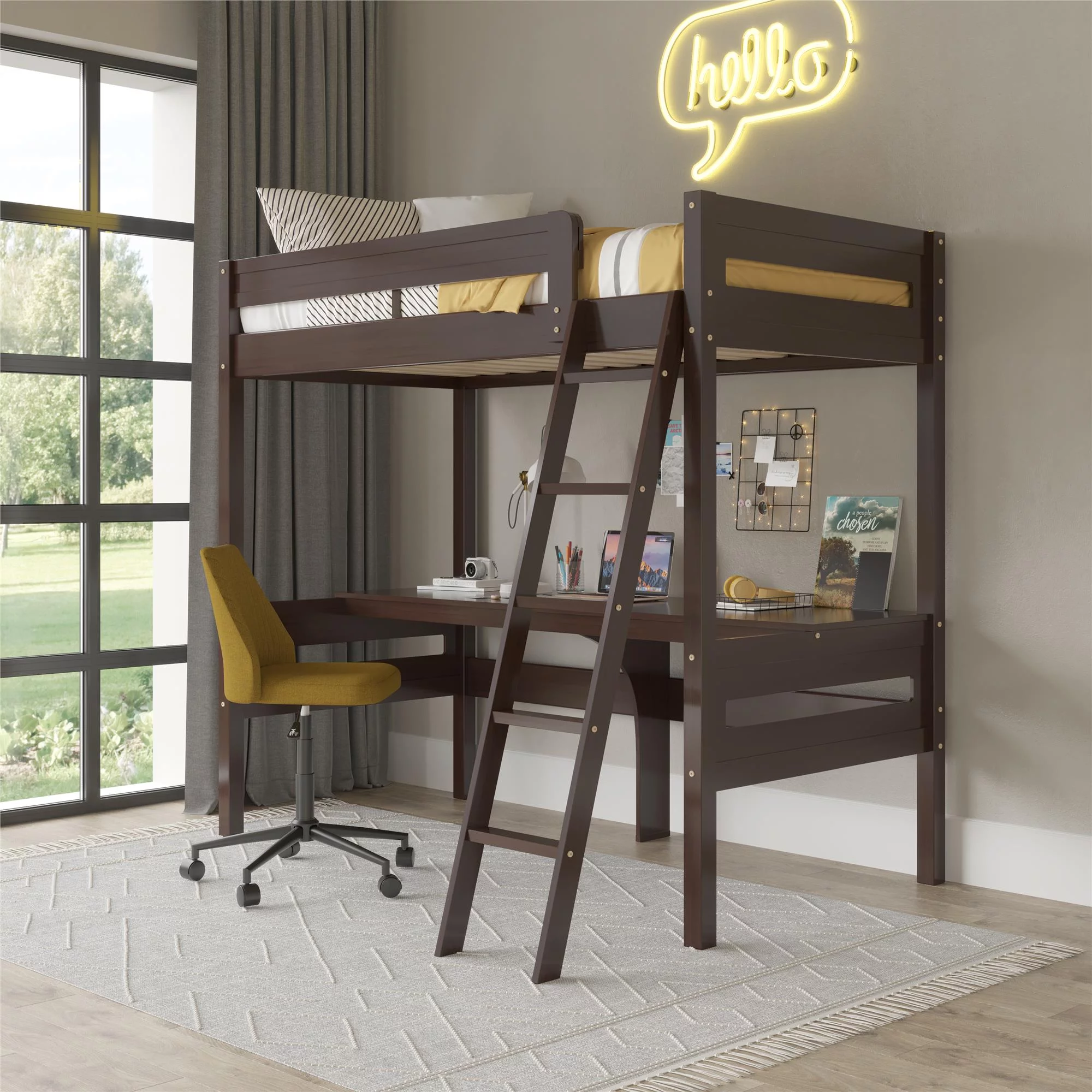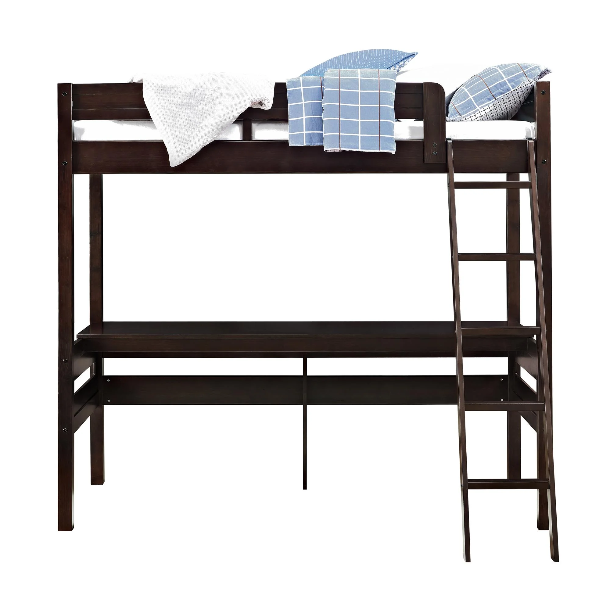 Euroco Wood Twin Loft Bed with Desk & Storage Shelves for Kids Bedroom, Espresso
