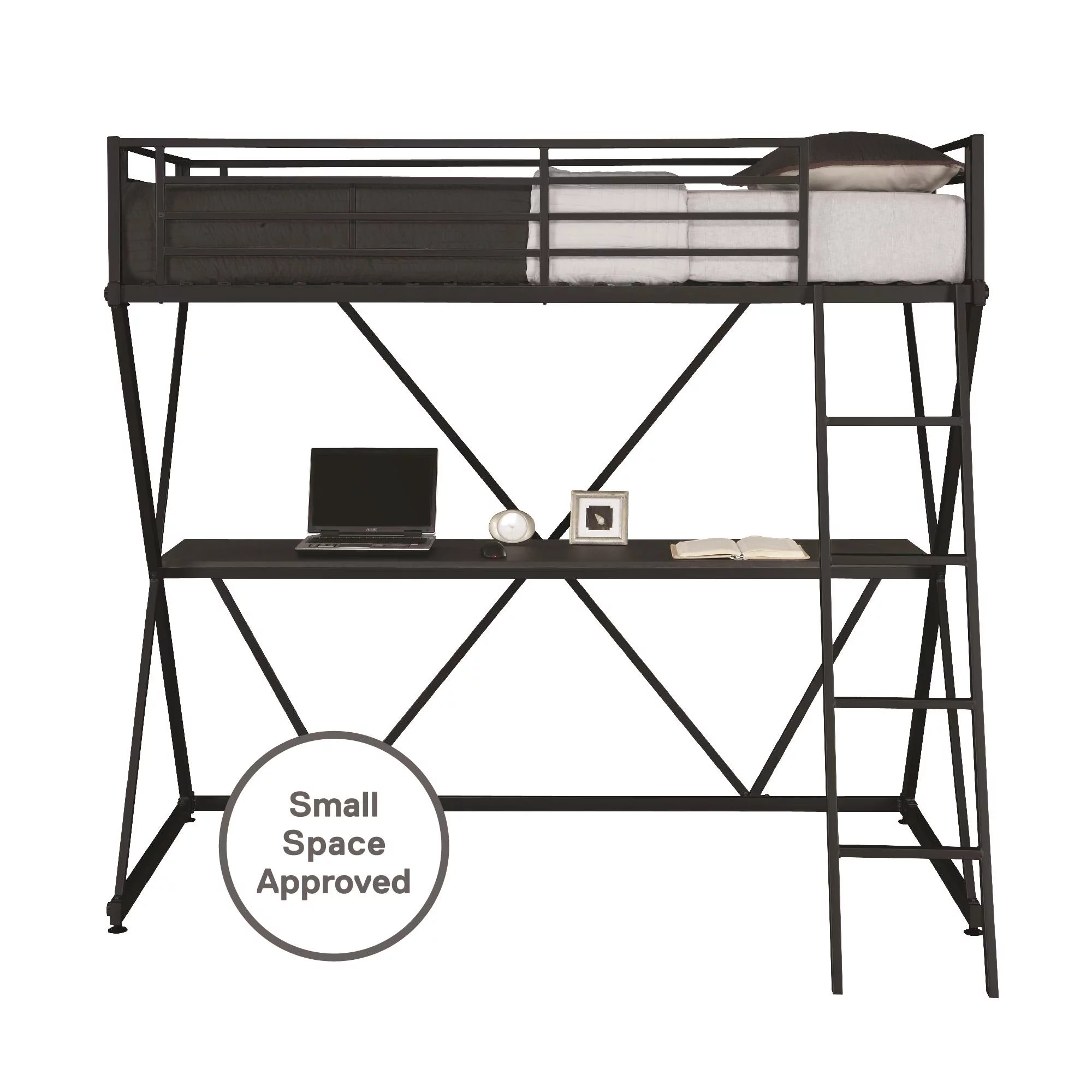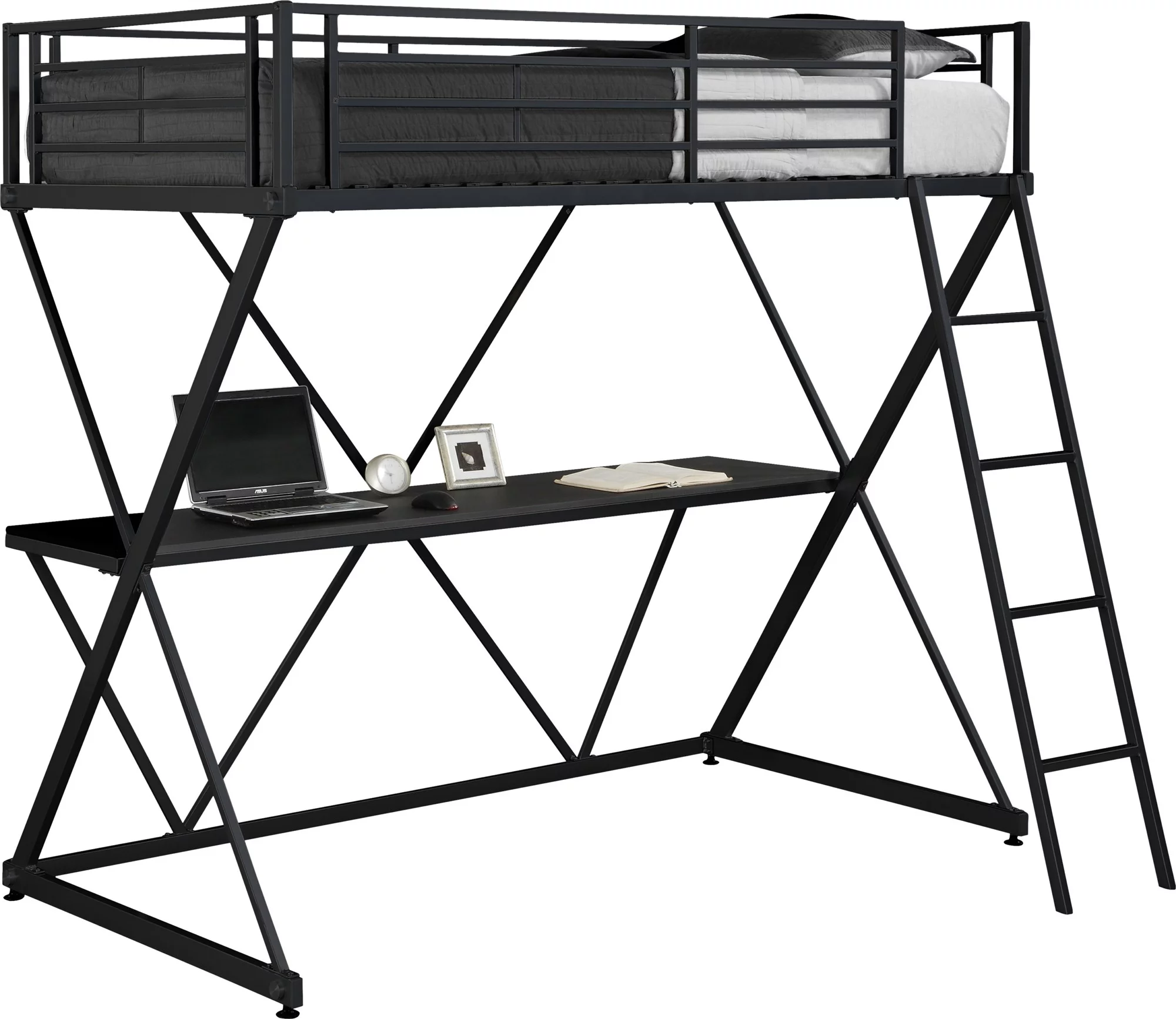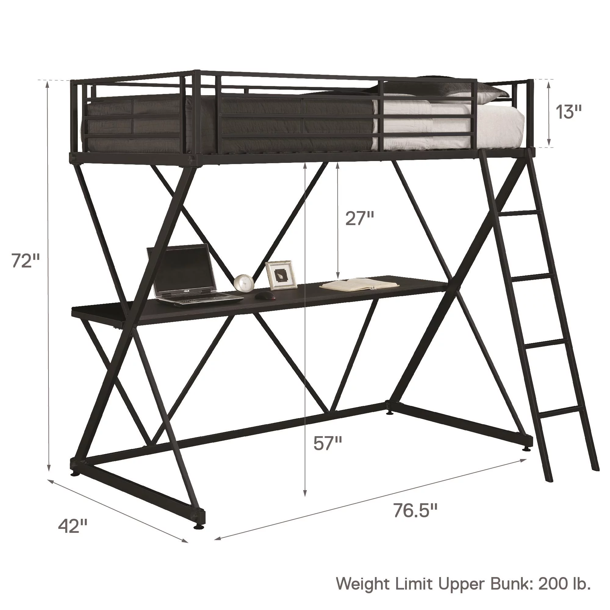 DHP Sage Studio Twin Metal Loft Bed with Integrated Desk and Shelves, Silver
