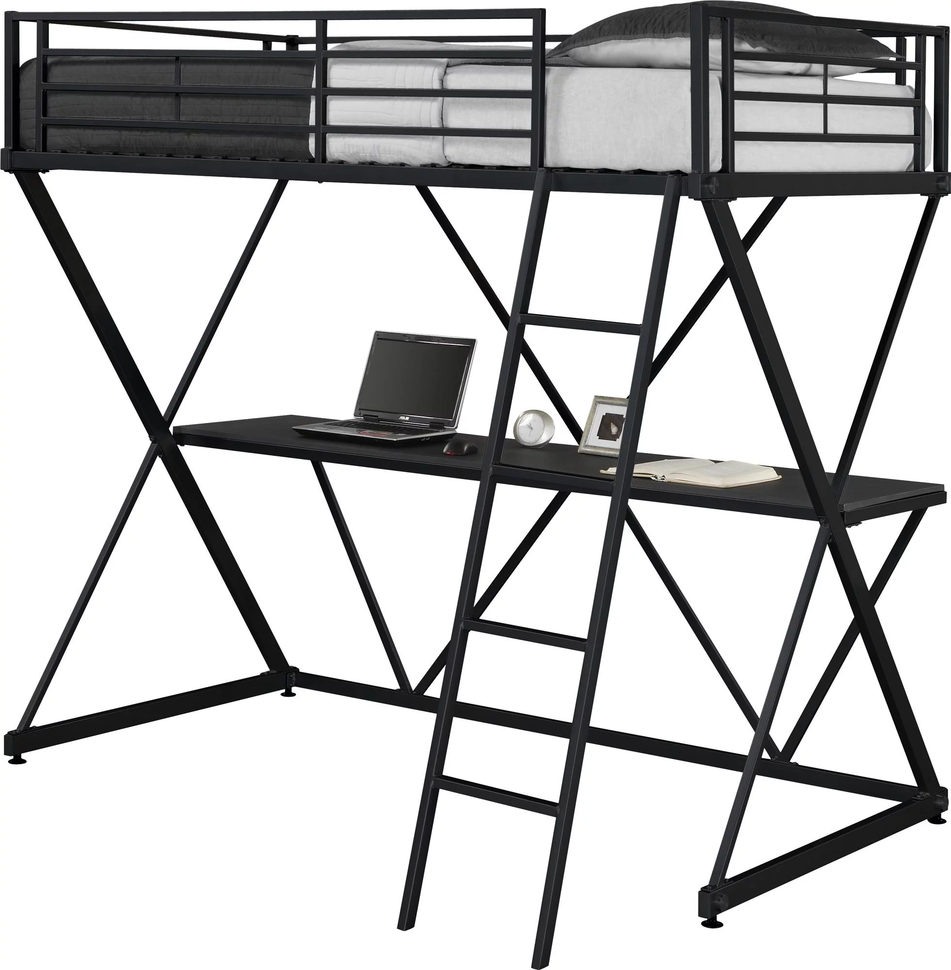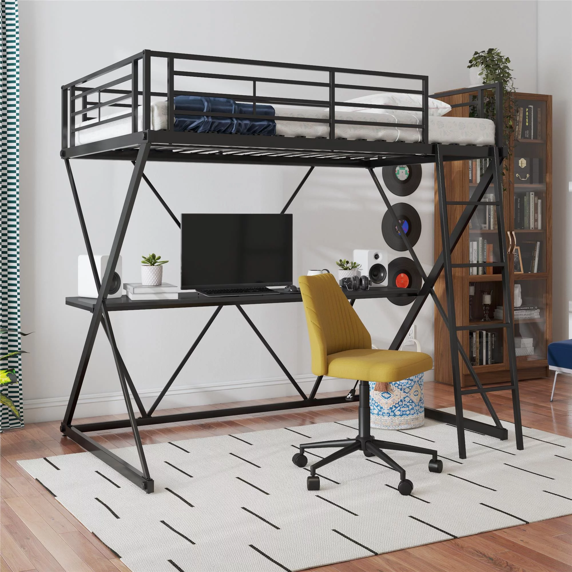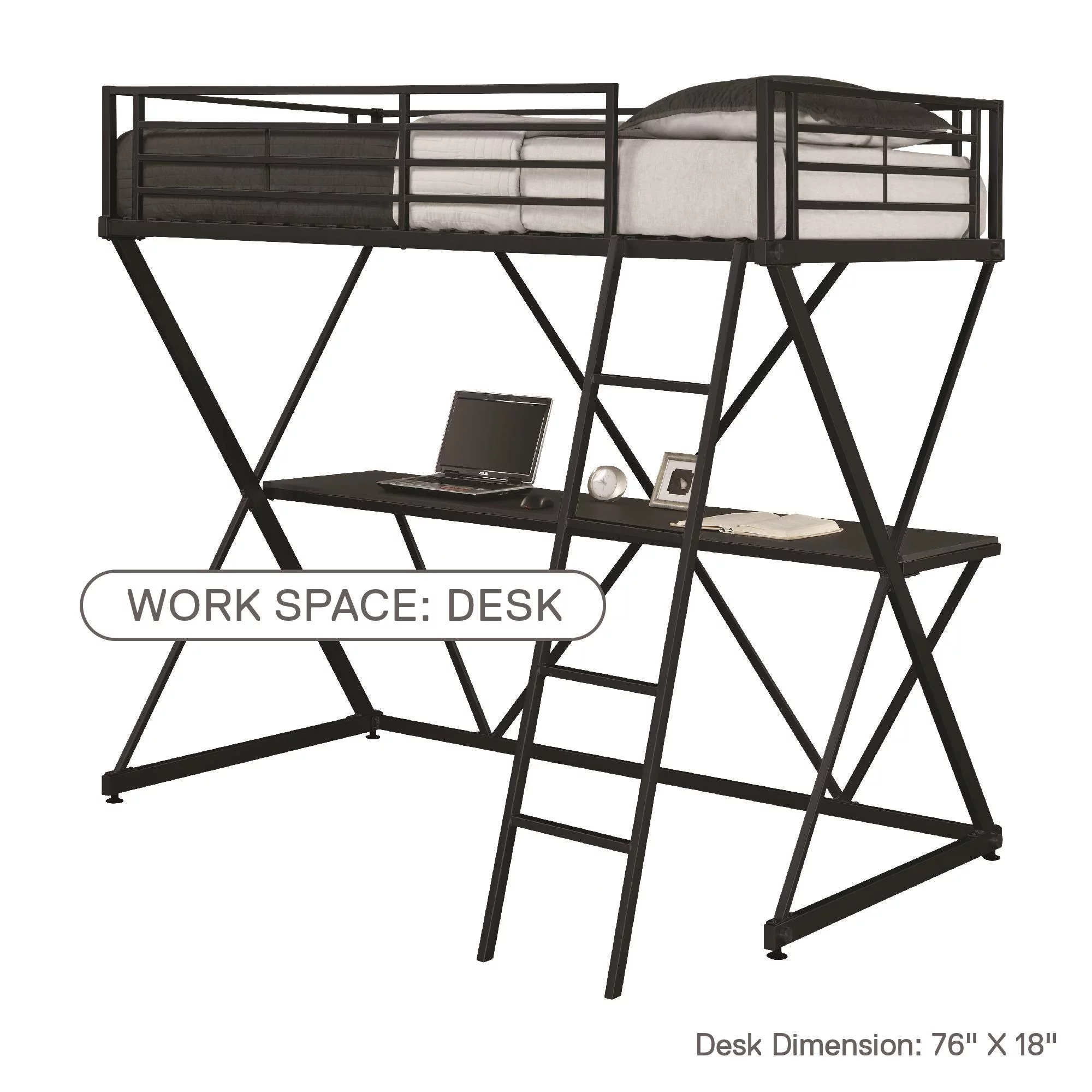 DHP Sage Studio Twin Metal Loft Bed with Integrated Desk and Shelves, Silver