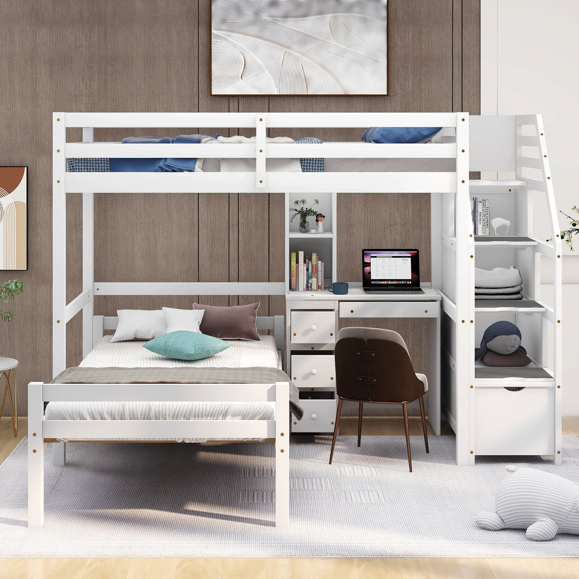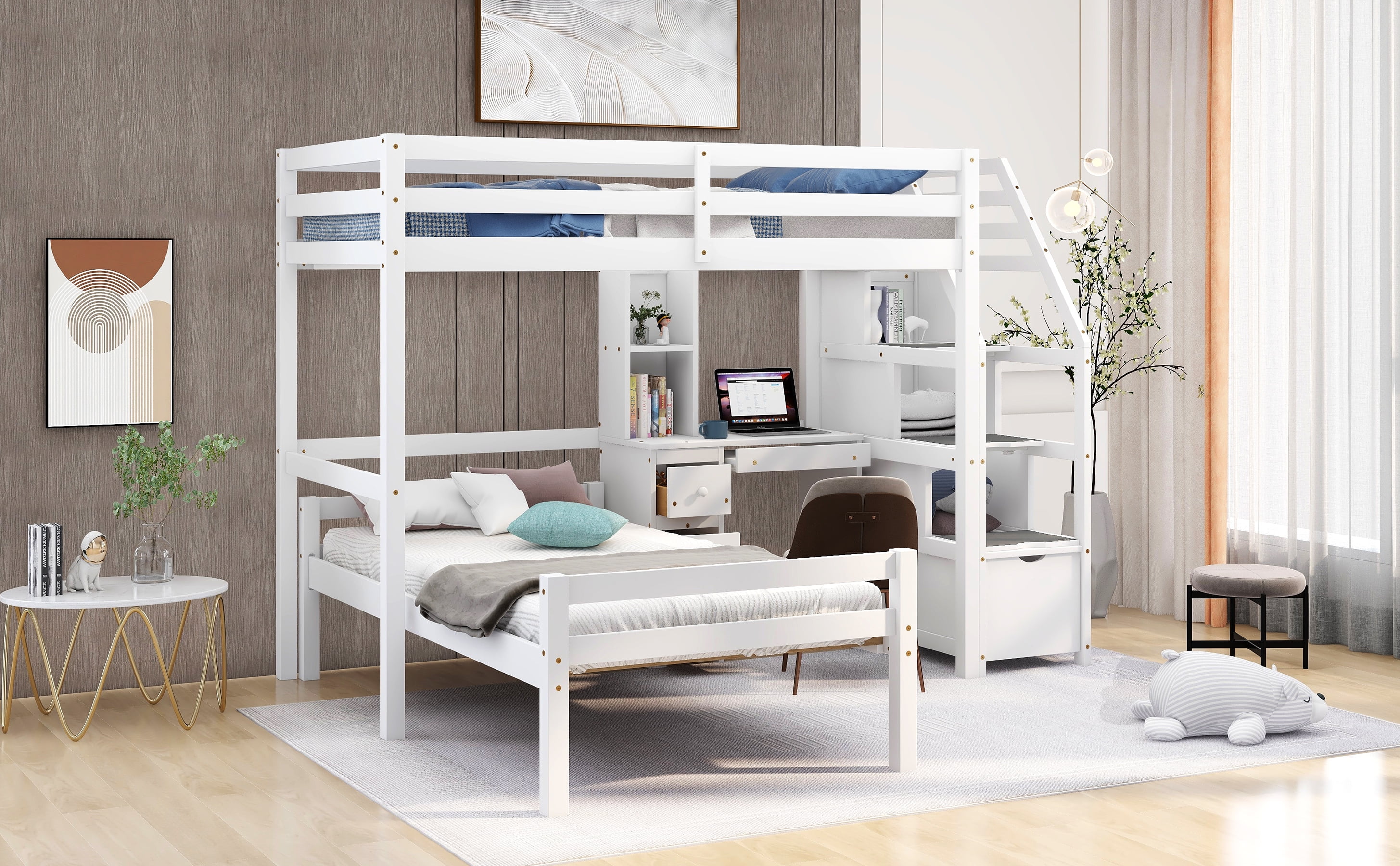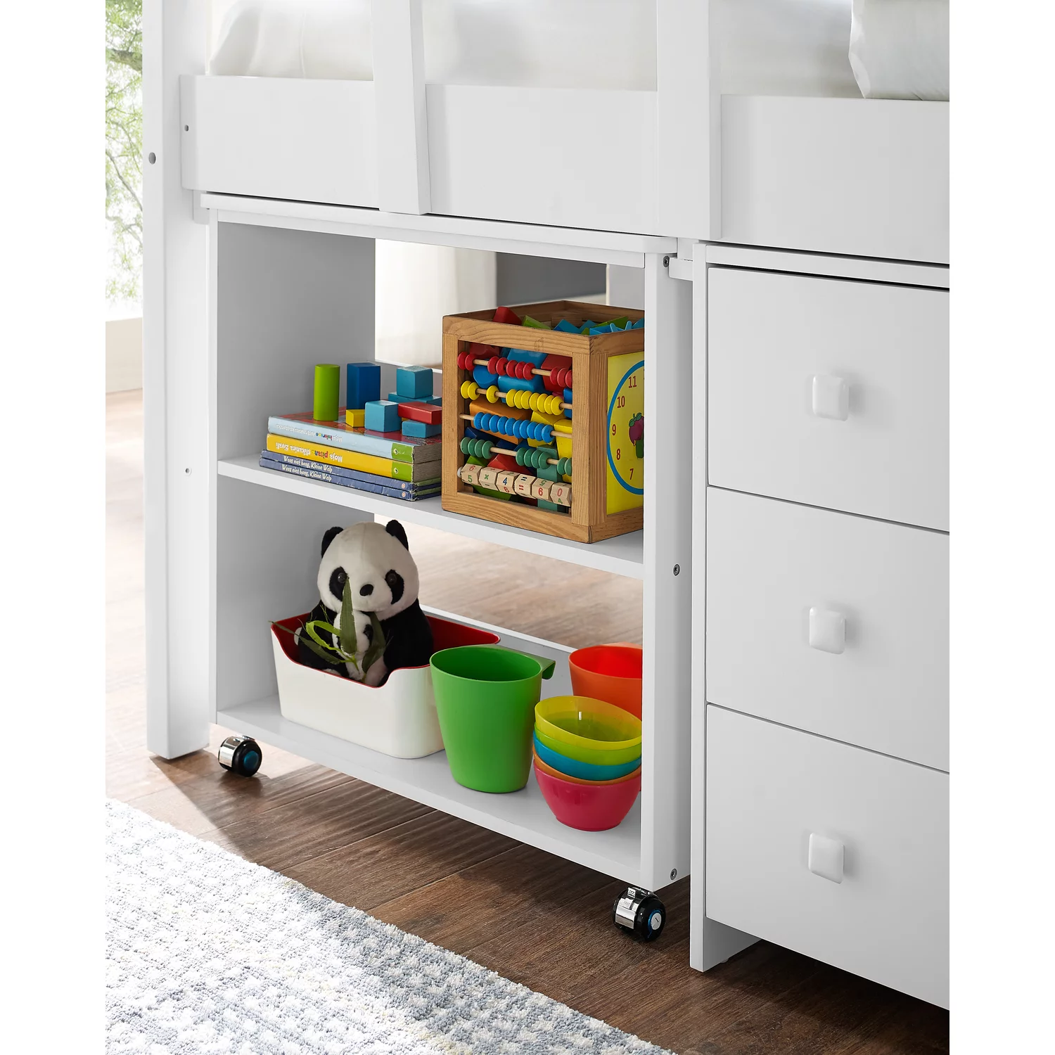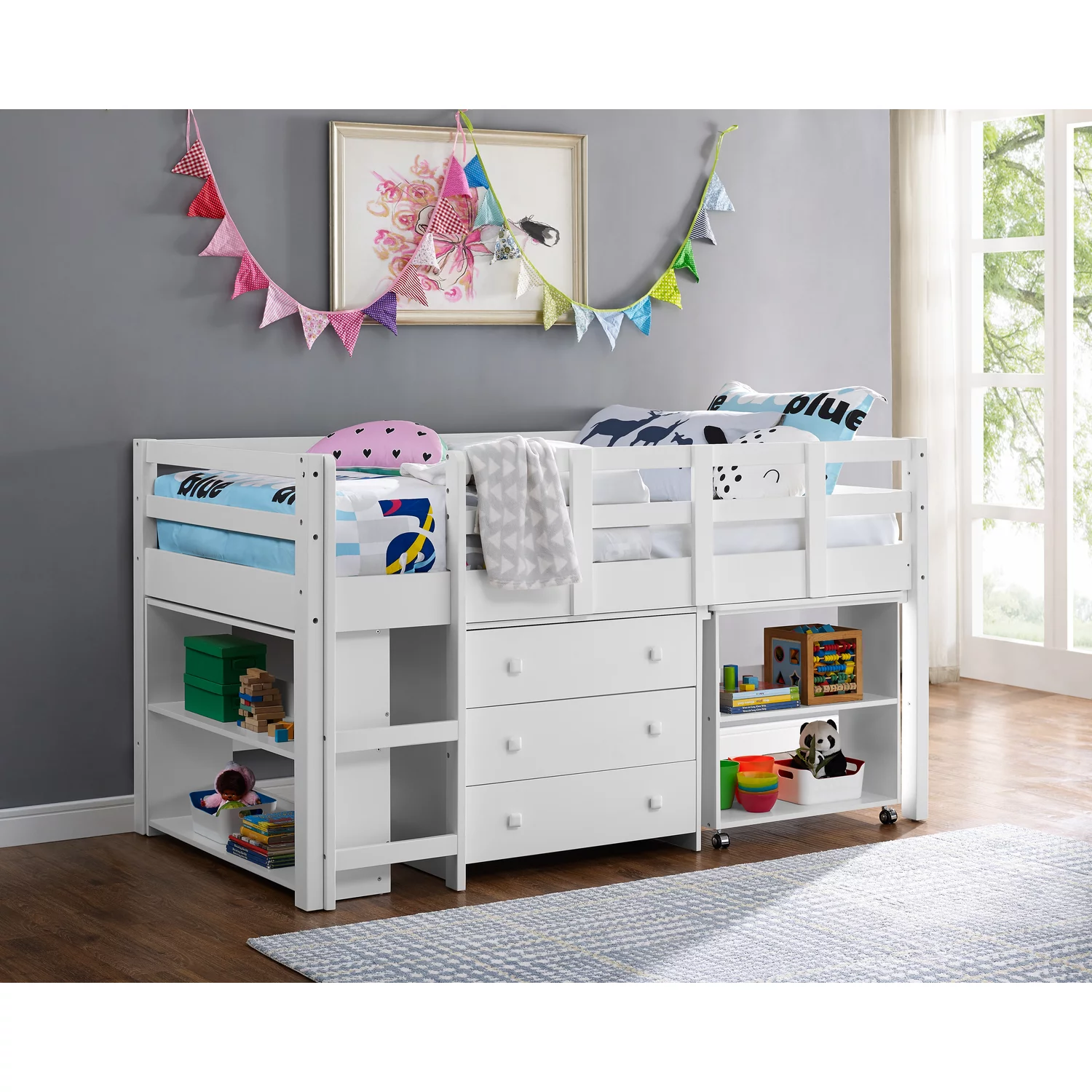 Euroco Wood Twin Bunk Loft Bed with Desk, Drawers and Shelf for Kids, White