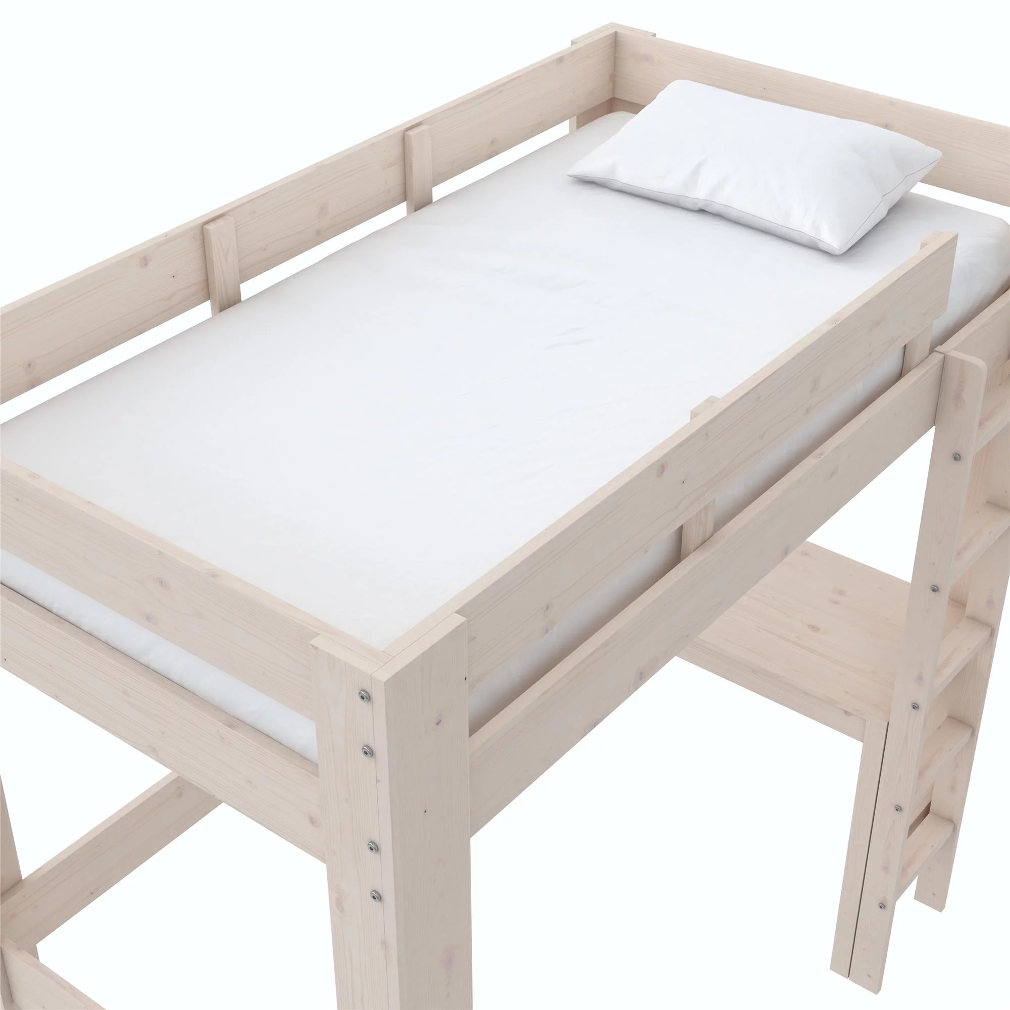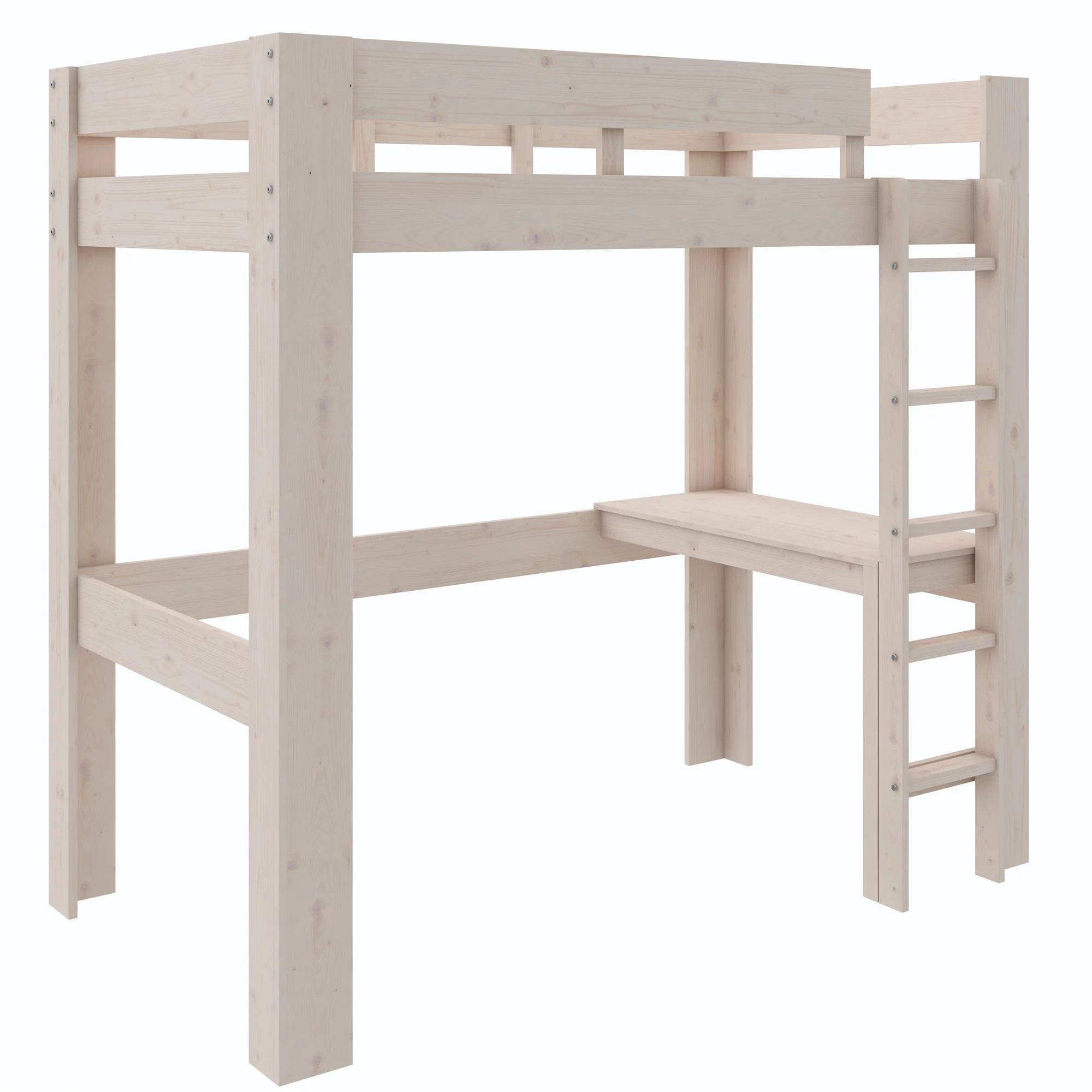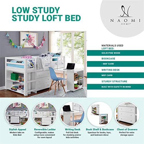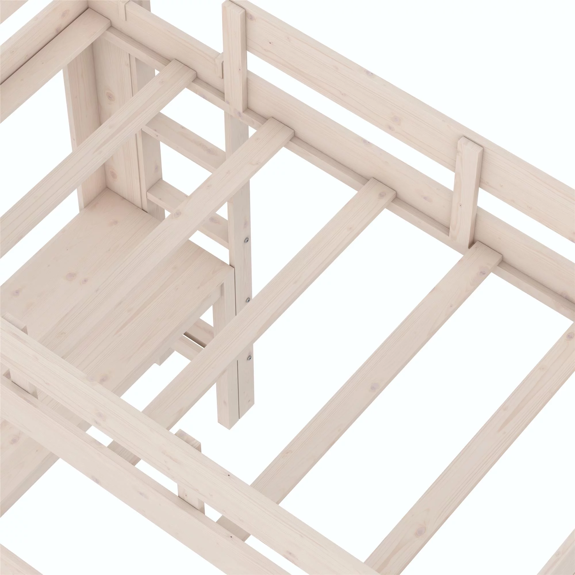 Gewnee Pine Wood Twin Size Loft Bed with Built-in Desk and Ladder for Kids Room,White