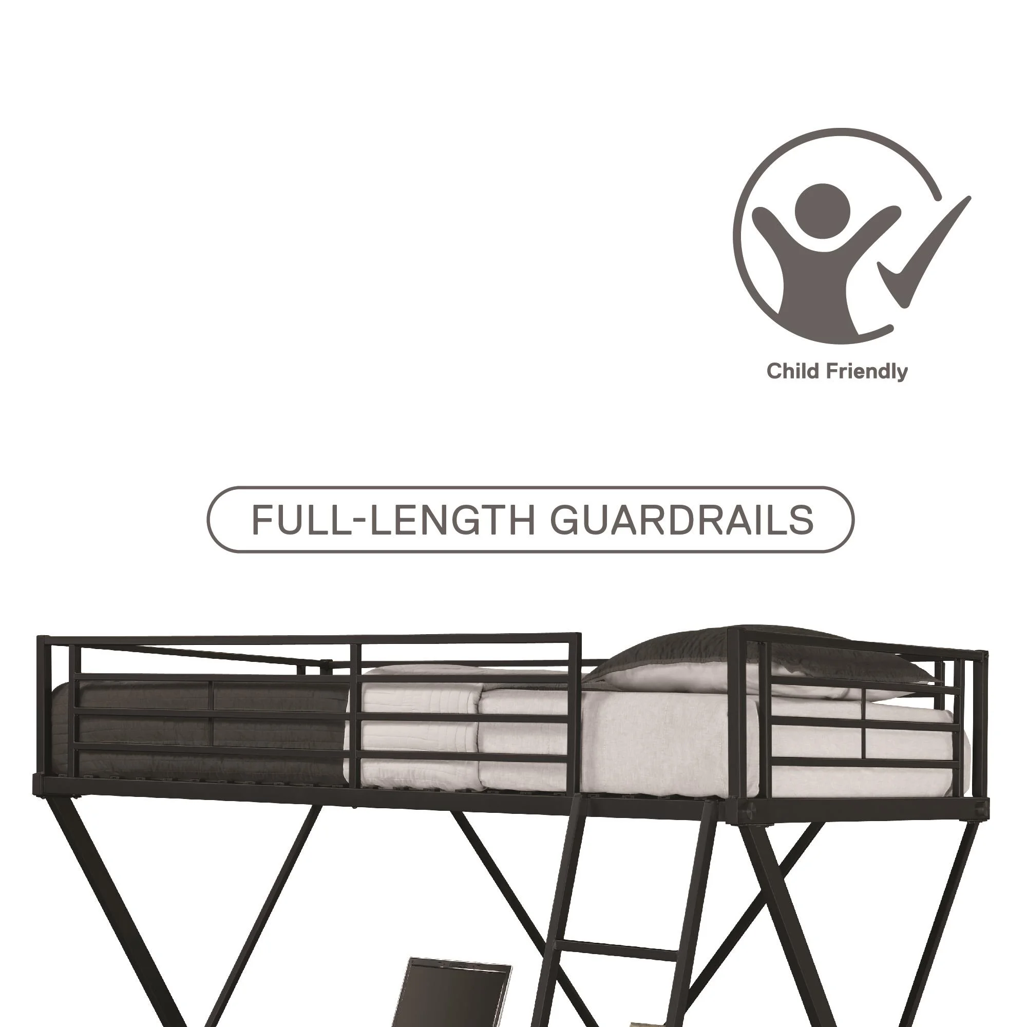 Gewnee Full Size Metal Loft Bed with Desk and Two Ladders for Kids and Teens,Black