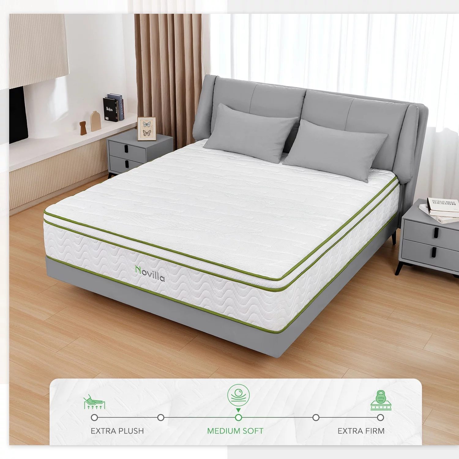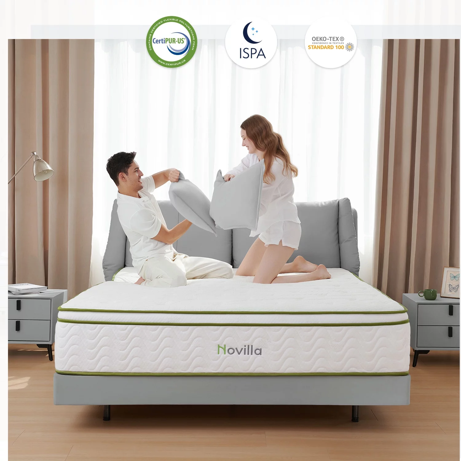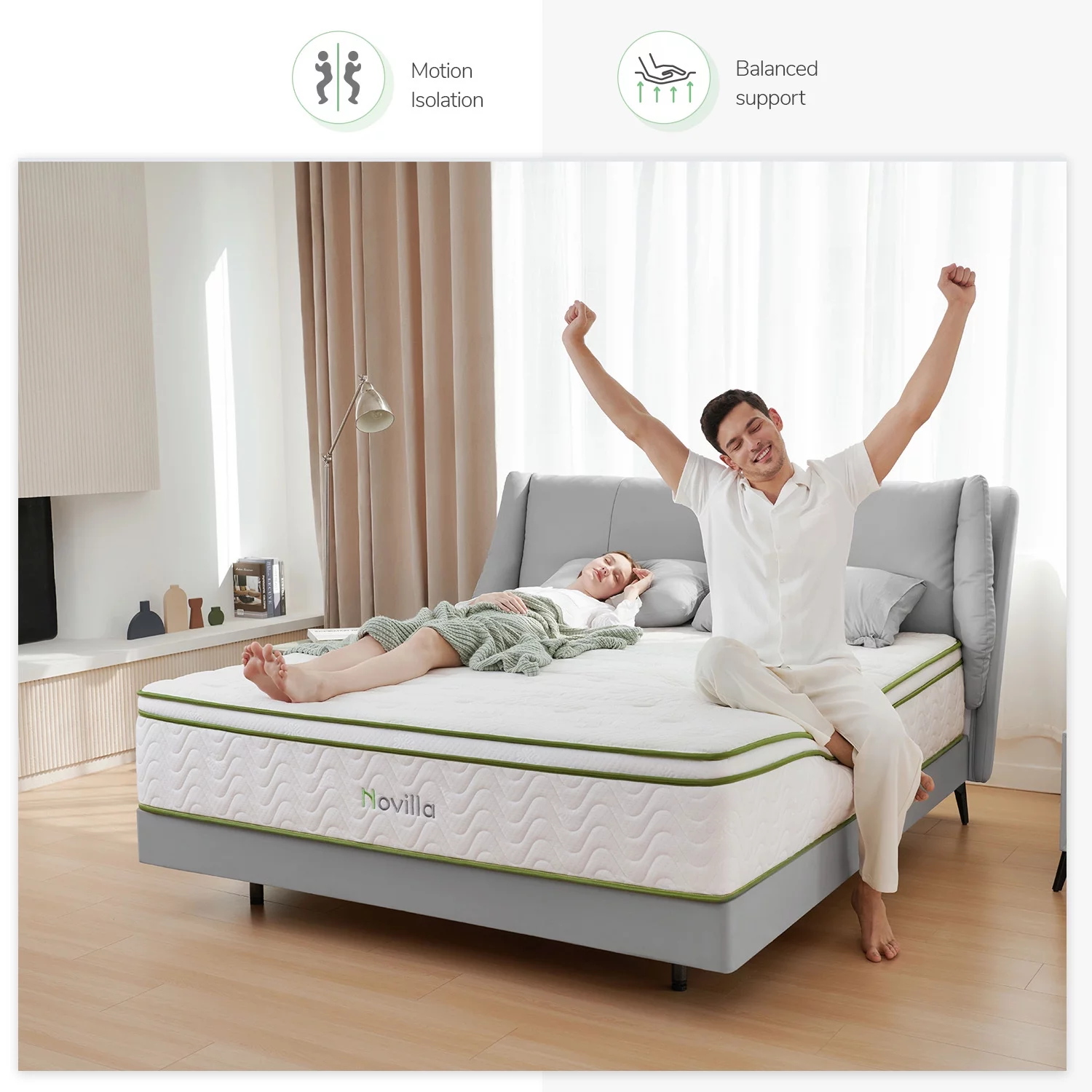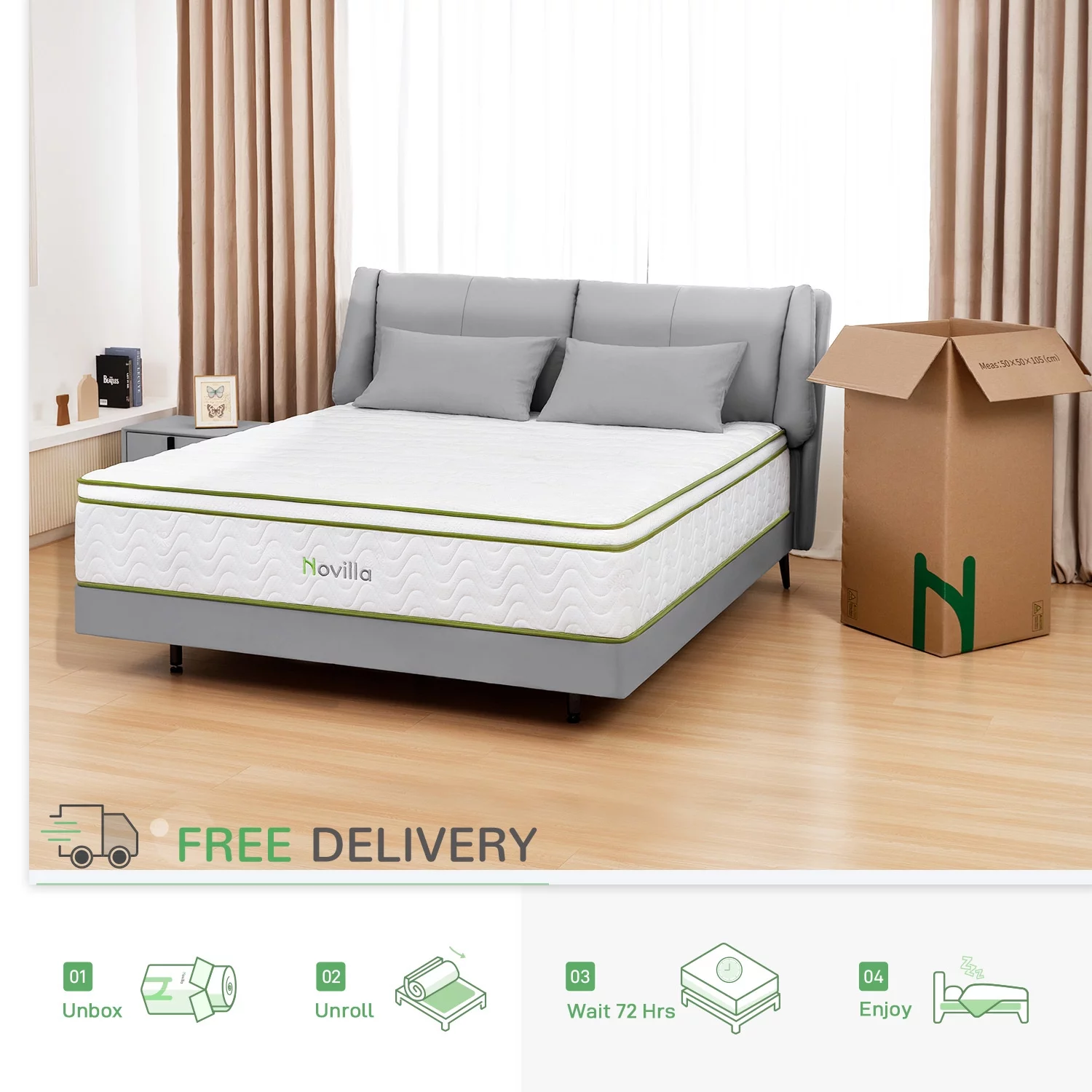 Novilla Amenity 12'' Adult Cool Memory Foam Pocket Spring Bed in a Box Hybrid Mattress Queen Size