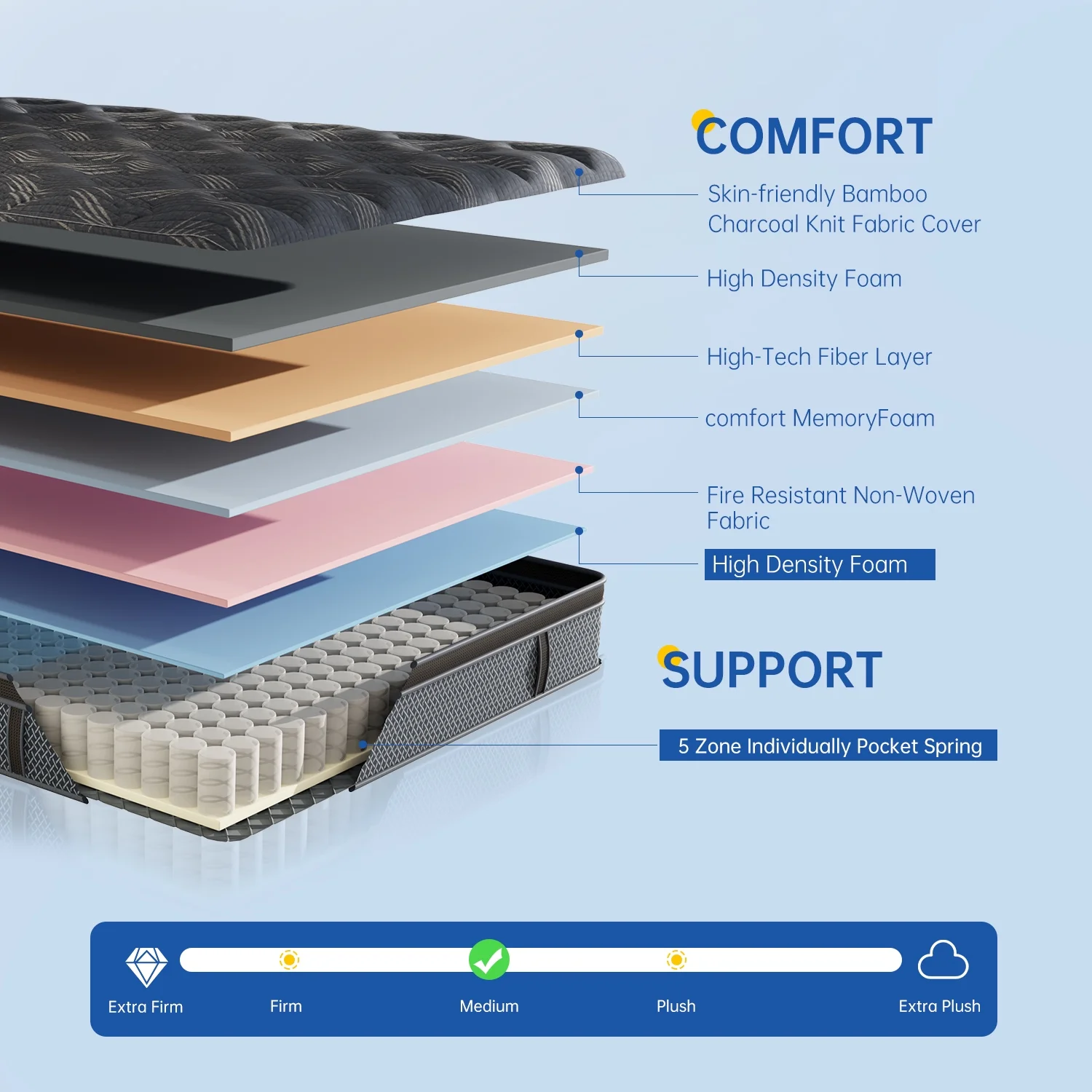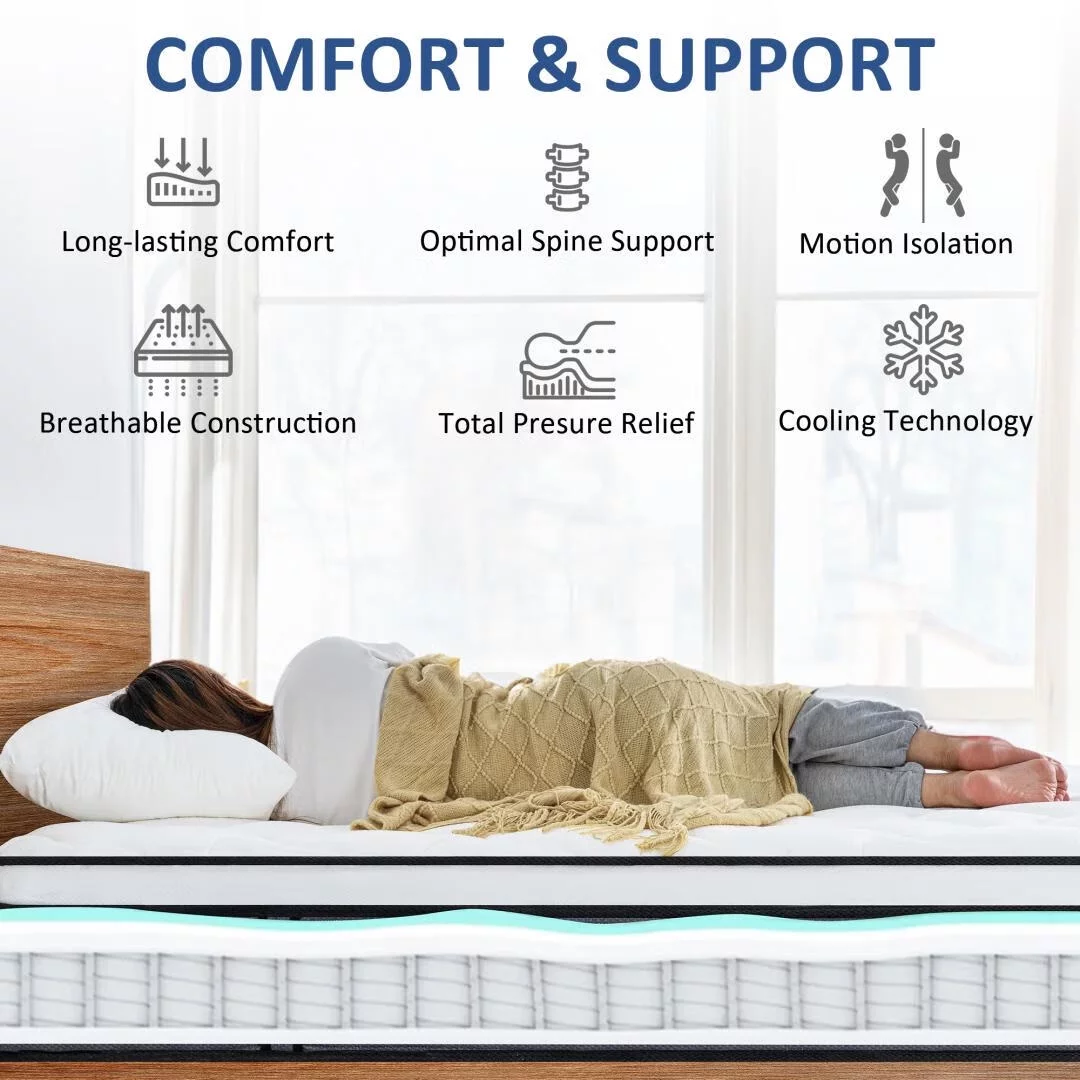 10" Gel Memory Foam Mattress,Z-HOM Hybrid Mattresses in a Box Medium Firm Cool Comfort Pocket Spring Queen Size