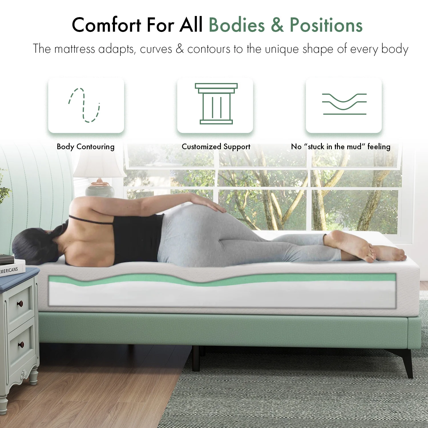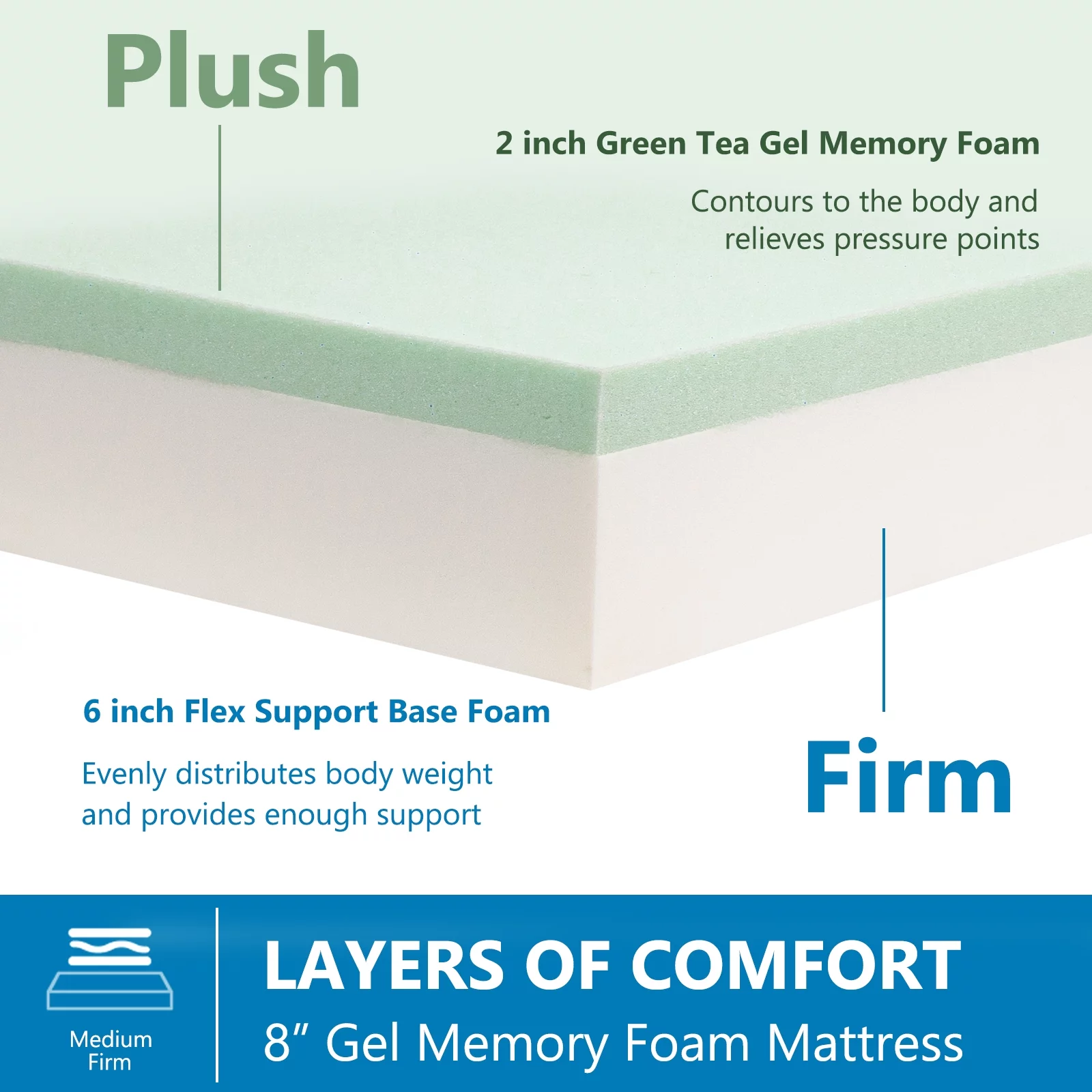 Queen Mattress, 10 inch Green Tea Gel Memory Foam Mattress in a box ,Cooling Gel Infused, Medium Feeling Made in USA