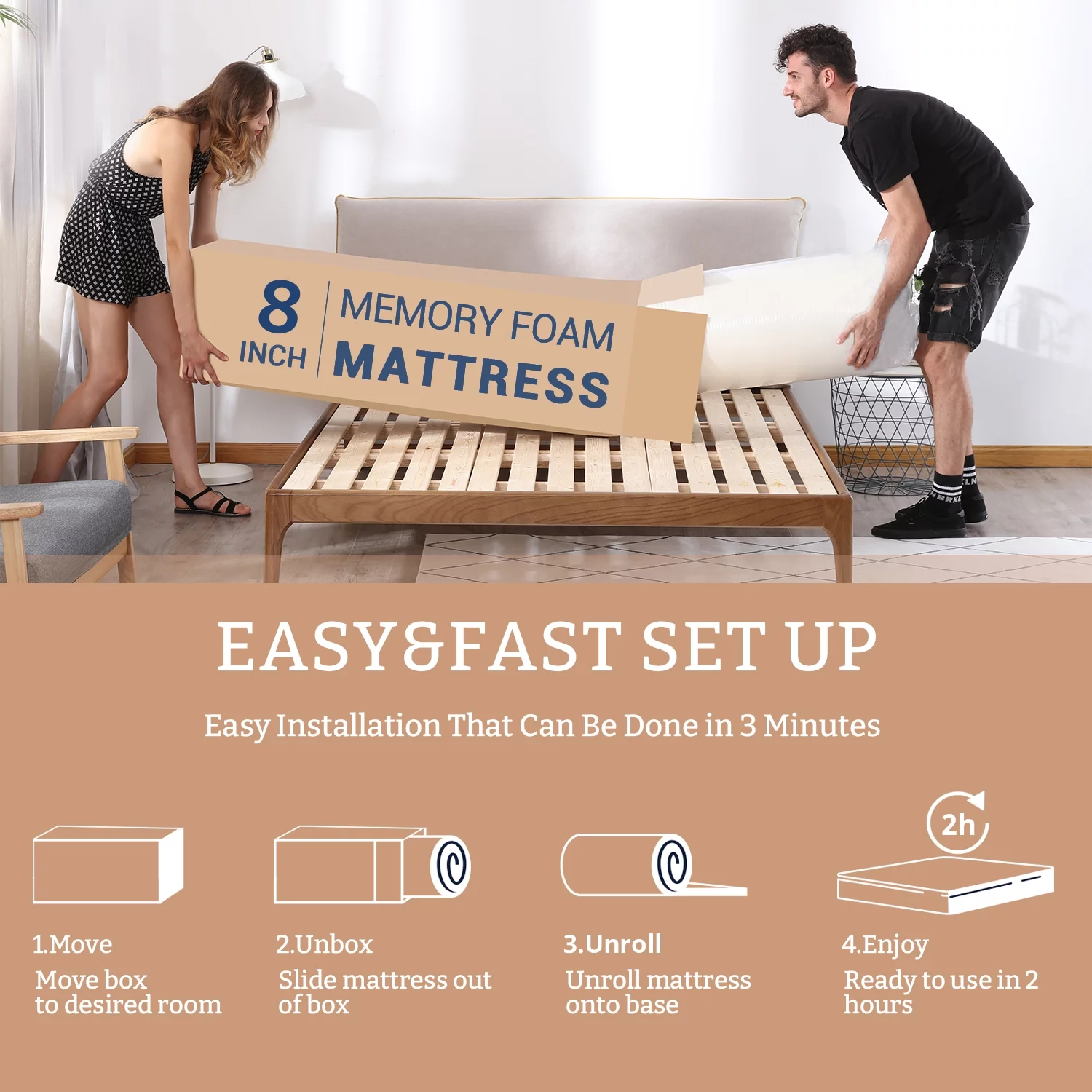 8 inch Queen Mattress in a Box,Memory Foam Mattress with Bamboo Cover,Made in USA