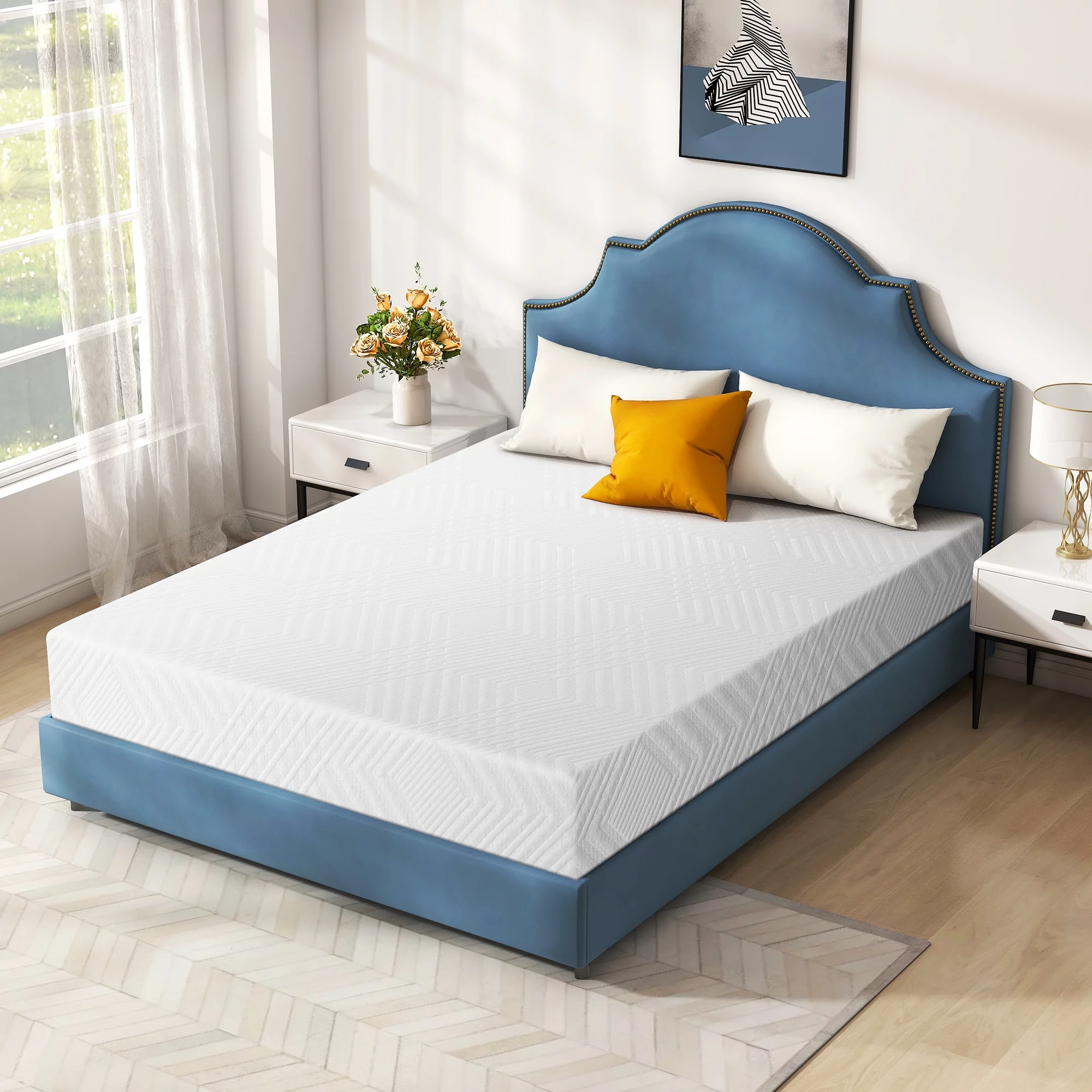 10 inch Queen Mattress in a Box,Memory Foam Mattress with Bamboo Cover,Made in USA