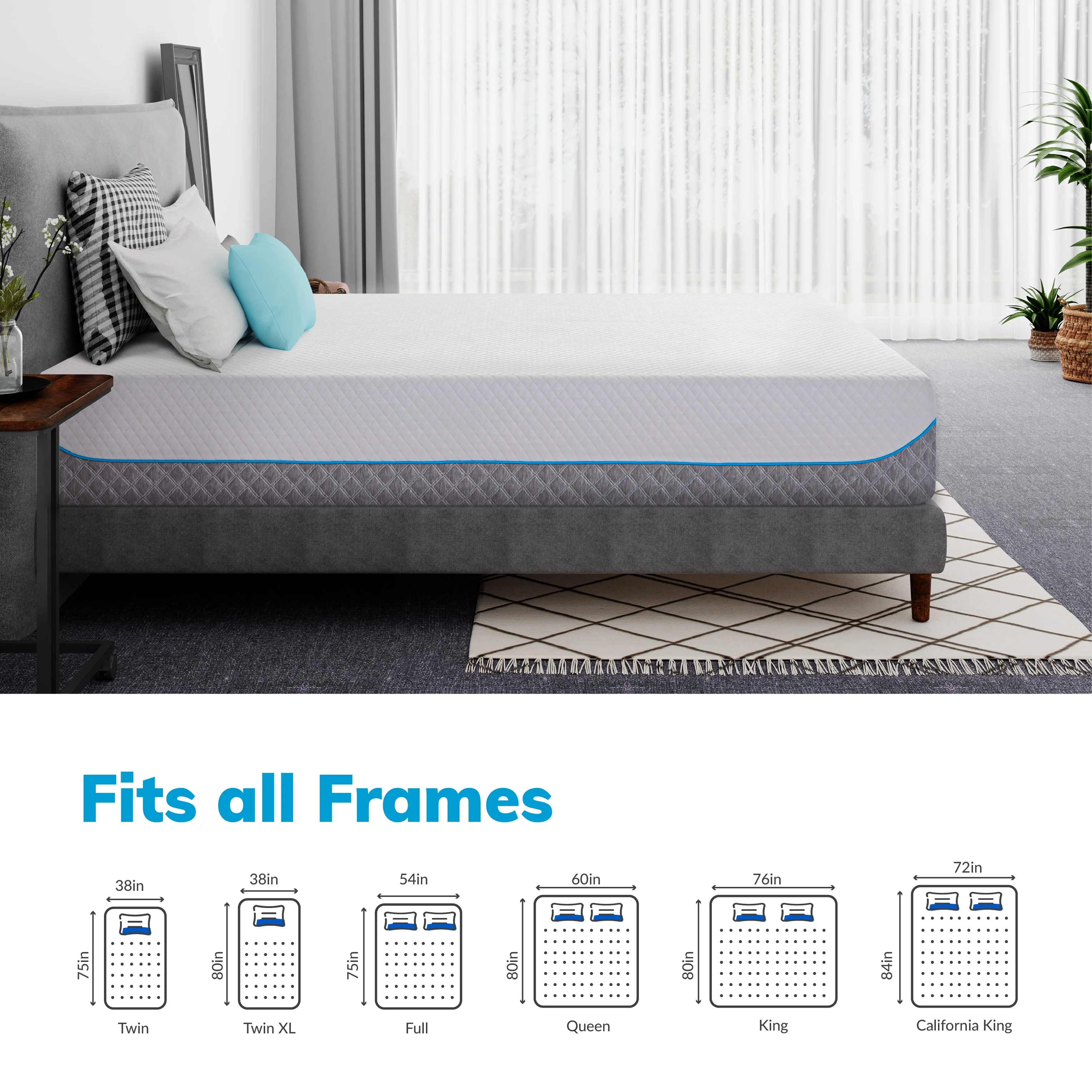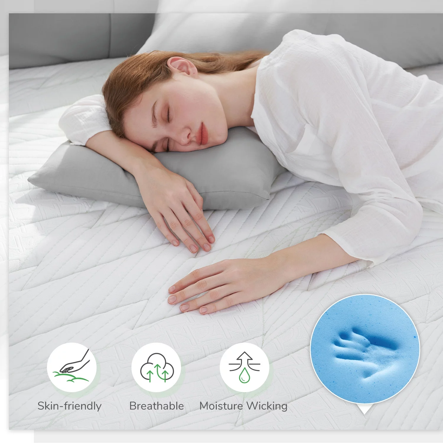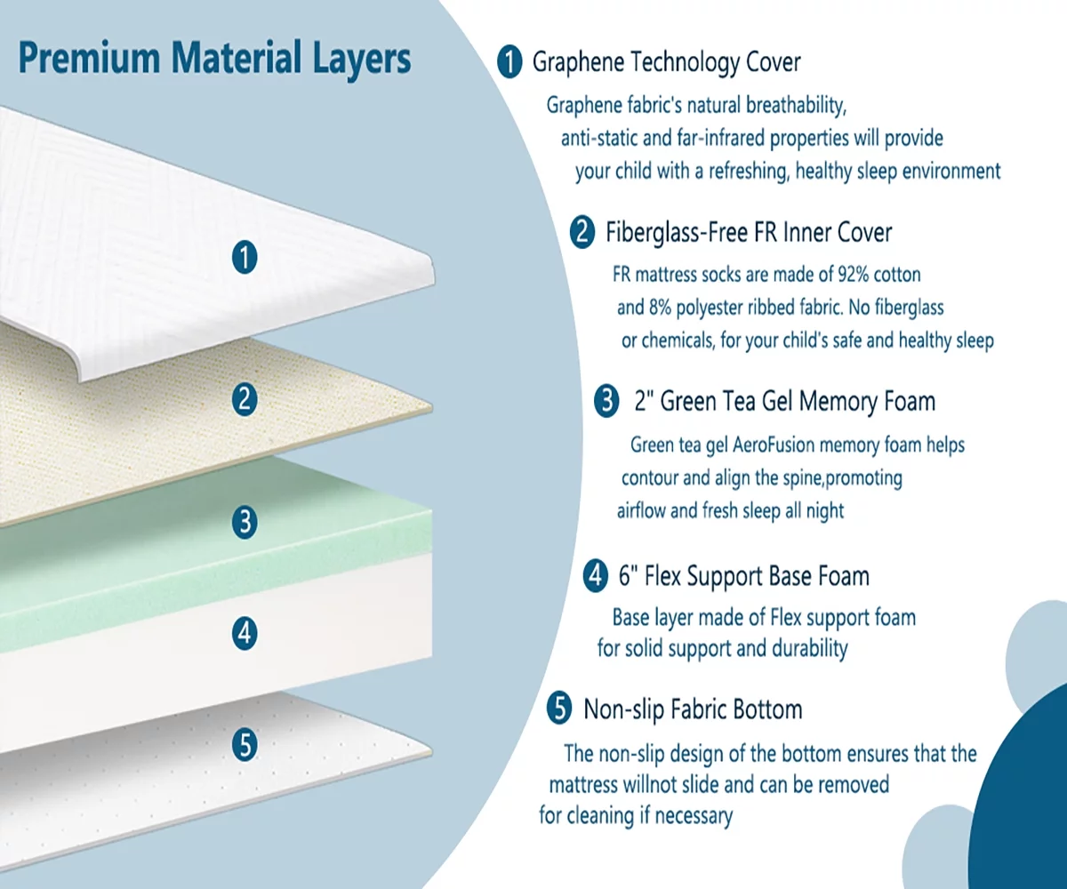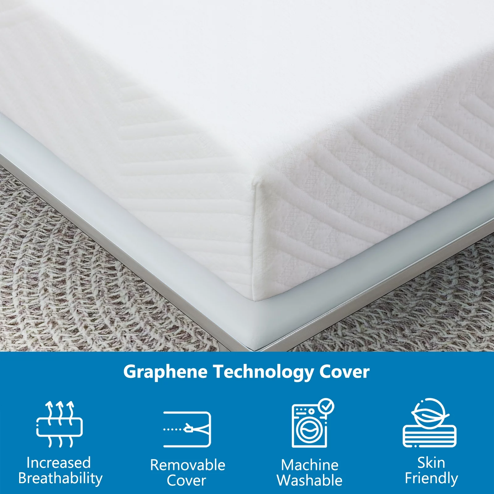 Queen 8" Memory Foam Mattress with Graphene Fabric Cover, Mattress in a Box