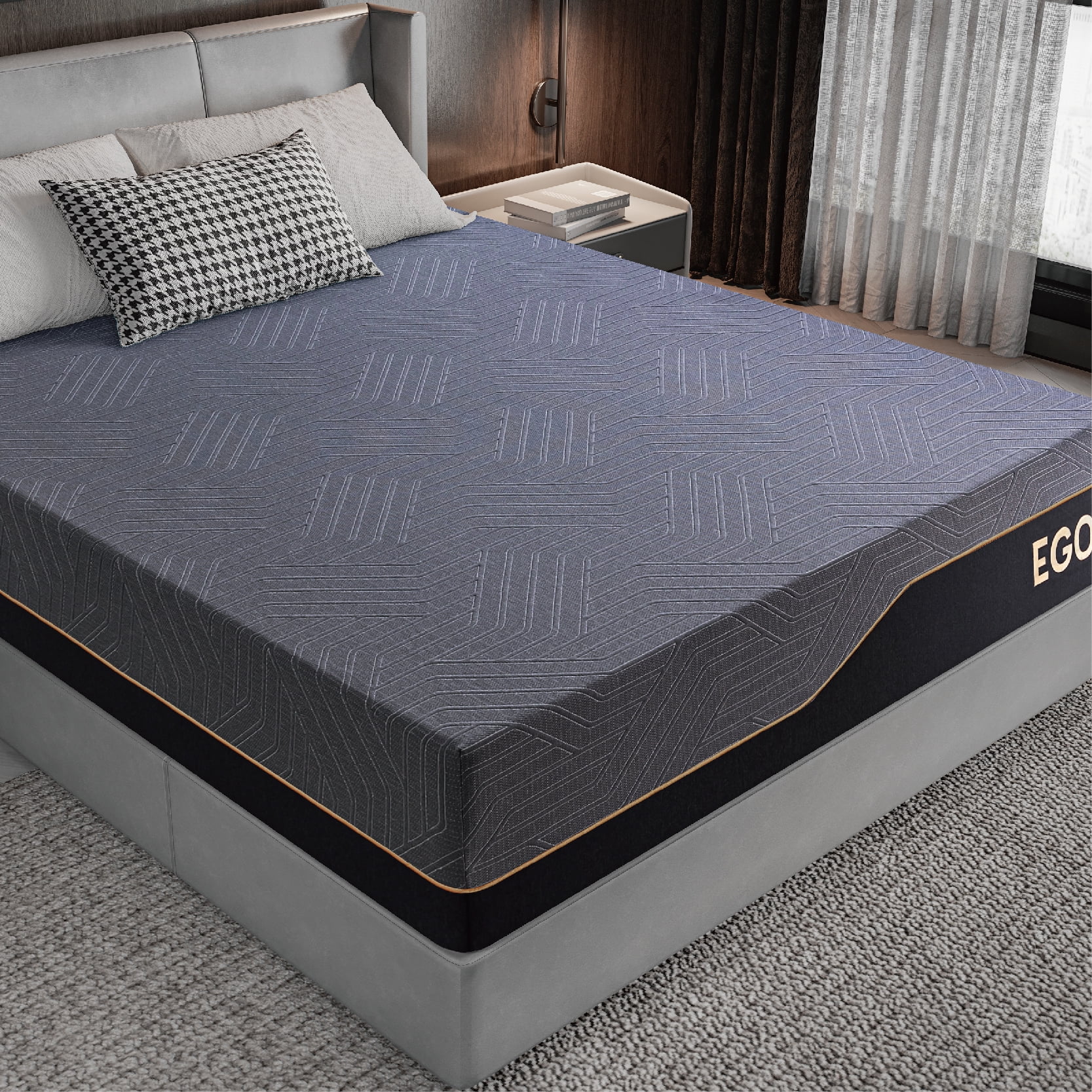 MLILY Ego Black 14 inch Queen Mattress in a Box, Gel Memory Foam Mattress, Medium
