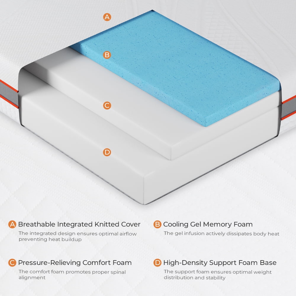 Sweetnight Radiant 10'' Adult Support Gel Memory Foam Mattress in a Box, Queen Size