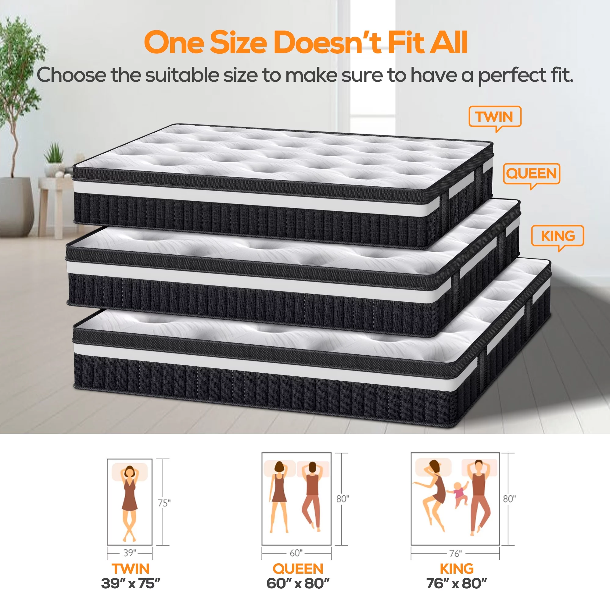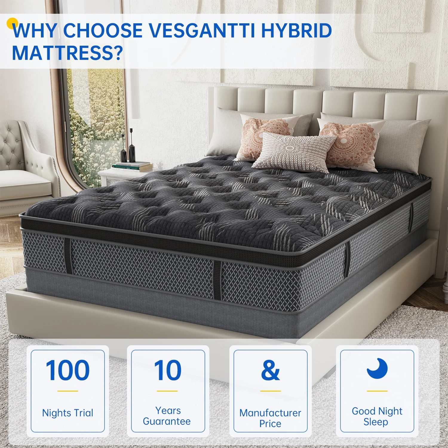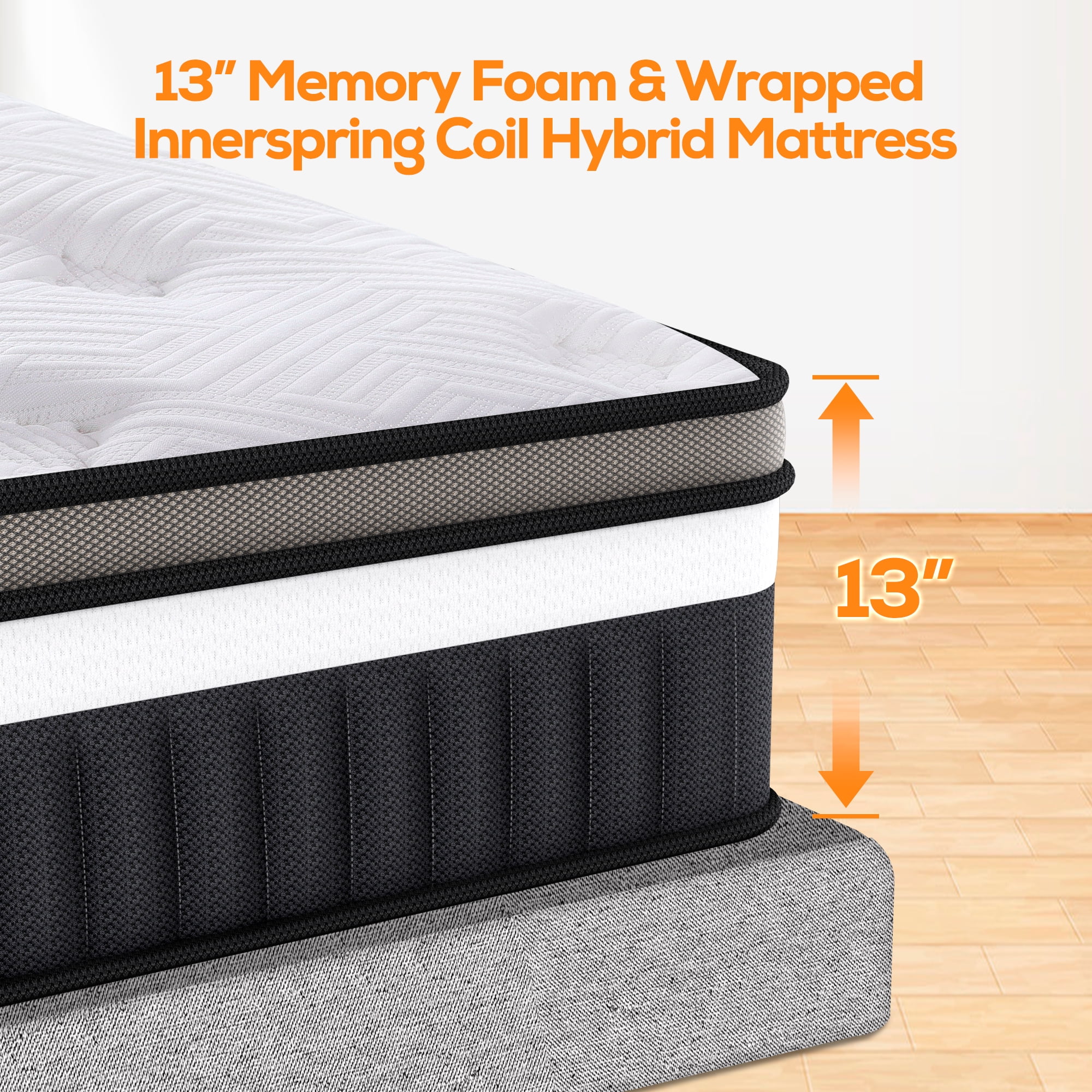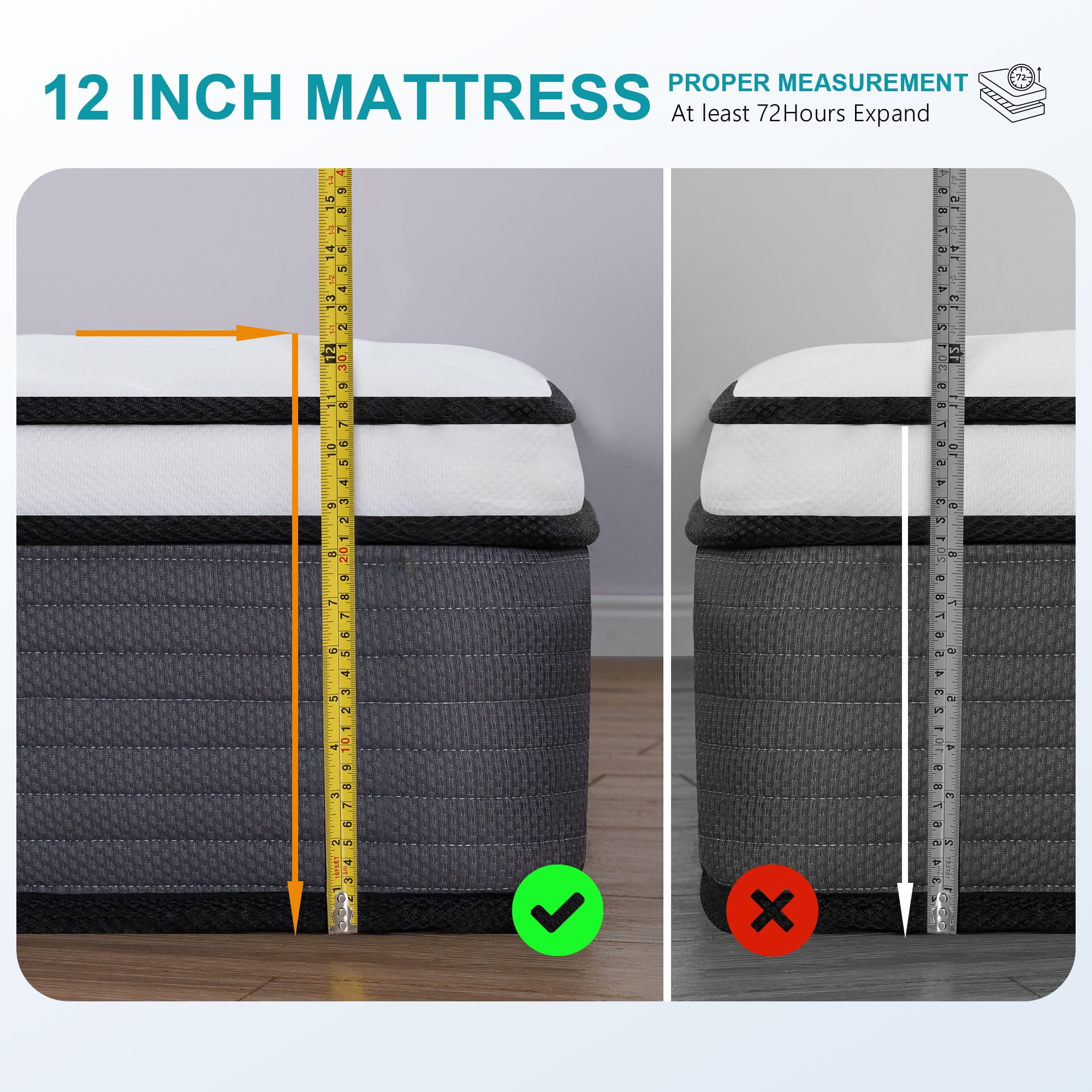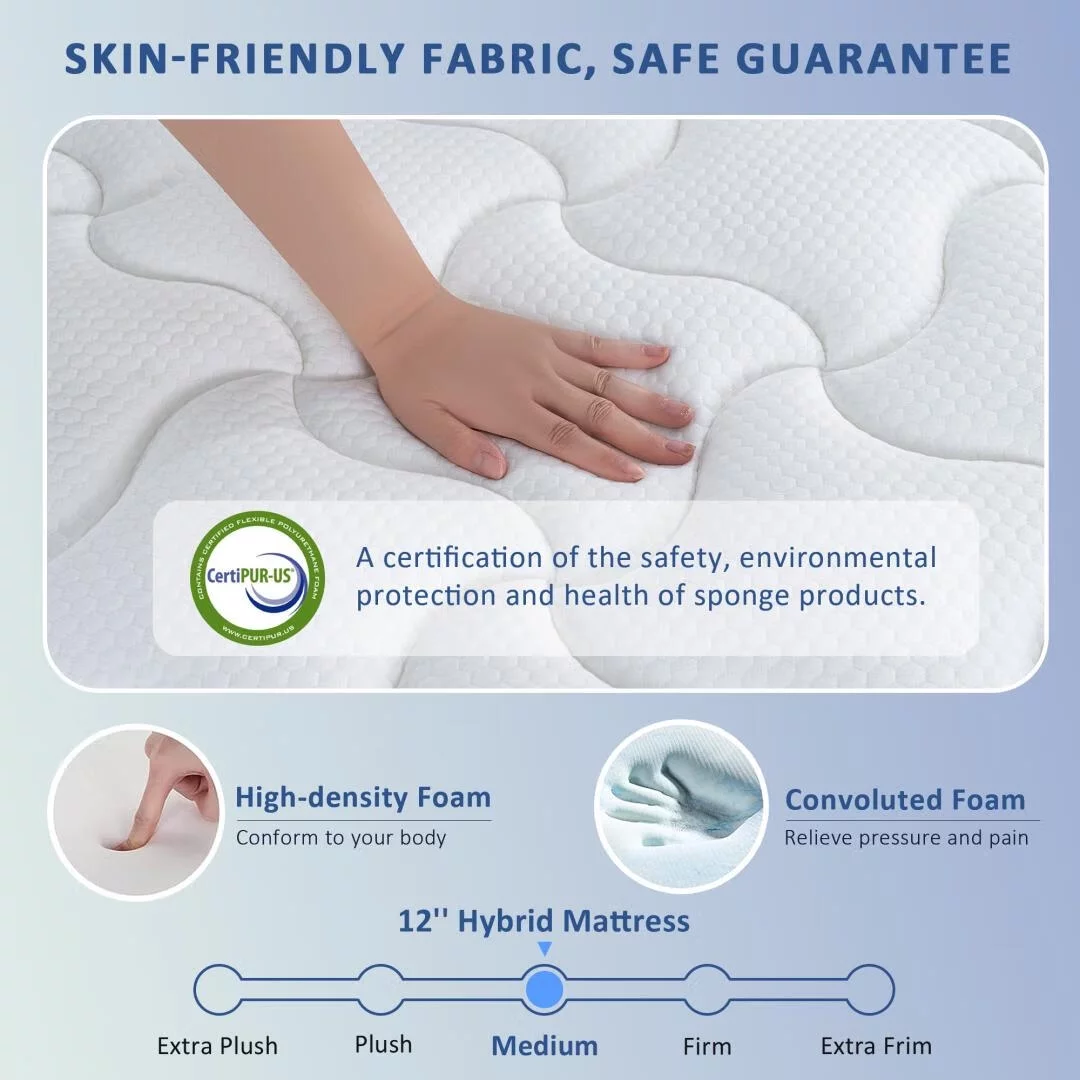 Vantto Queen Mattress, 12 Inch Hybrid Memory Foam Mattress in a Box, Pressure Relief, CertiPUR-US
