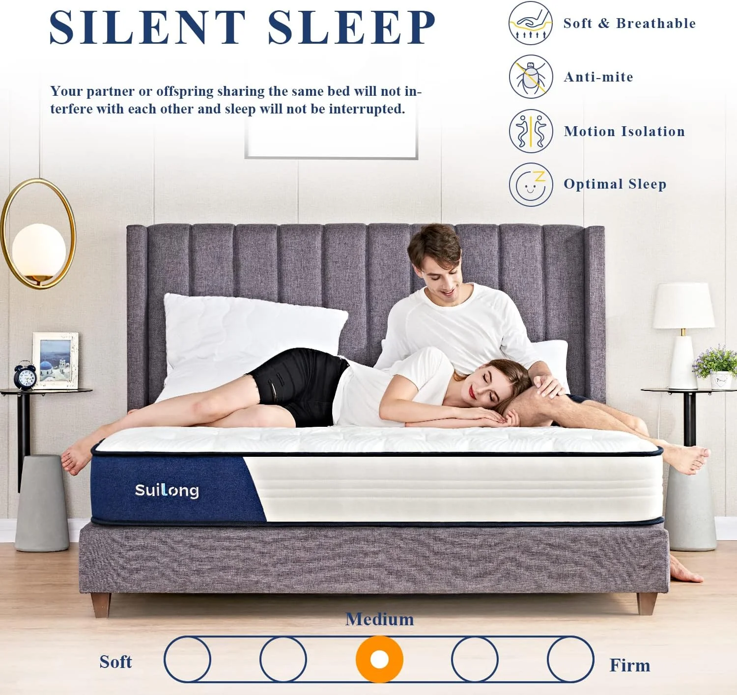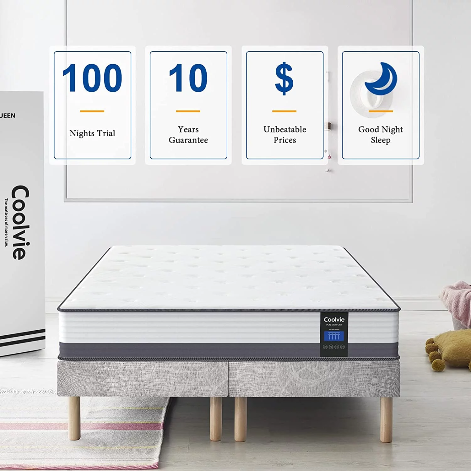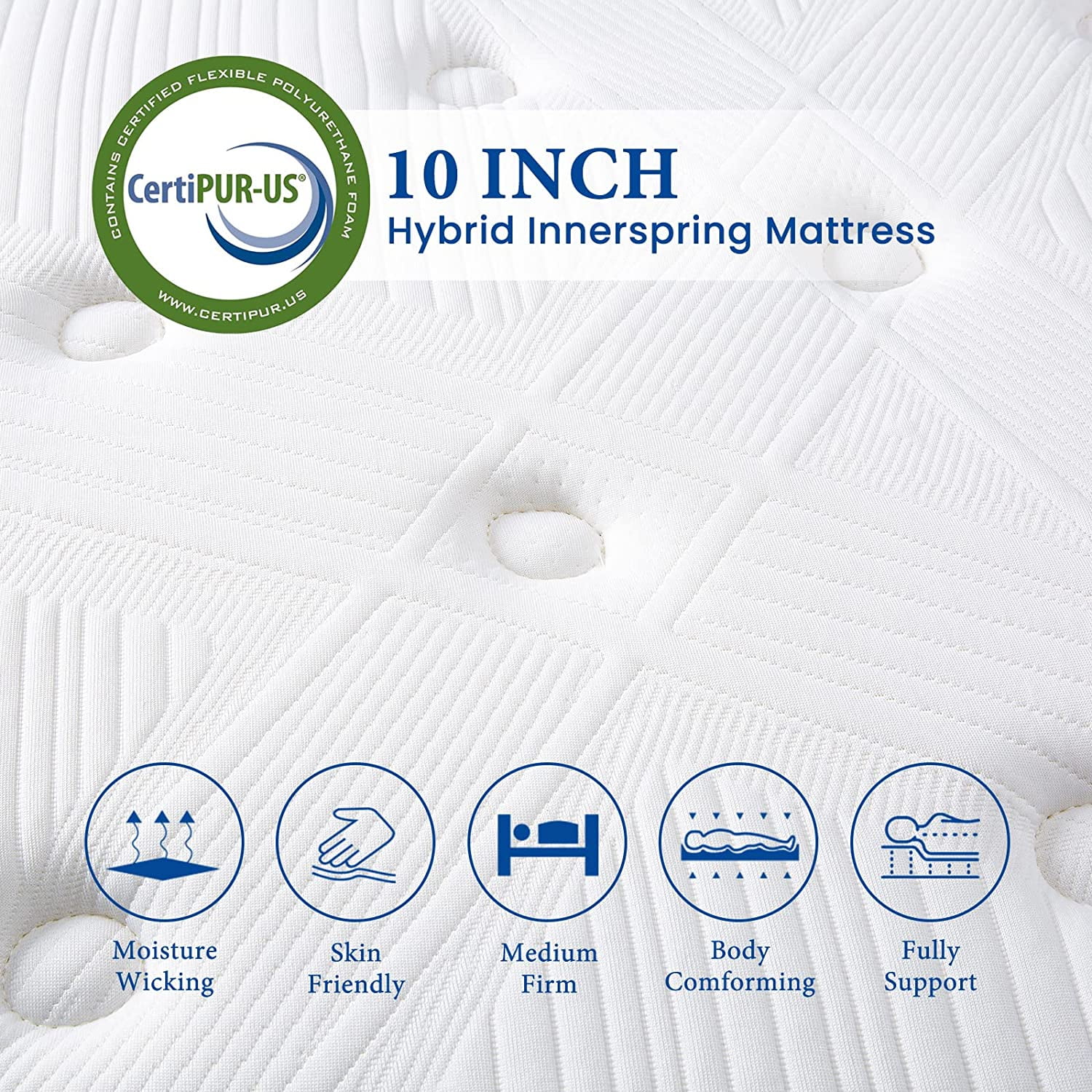Queen Mattress, SUI LONG 10 Inch Queen Size in a Box, Hybrid of Memory Foam and Innerspring Mattress, Medium Firm