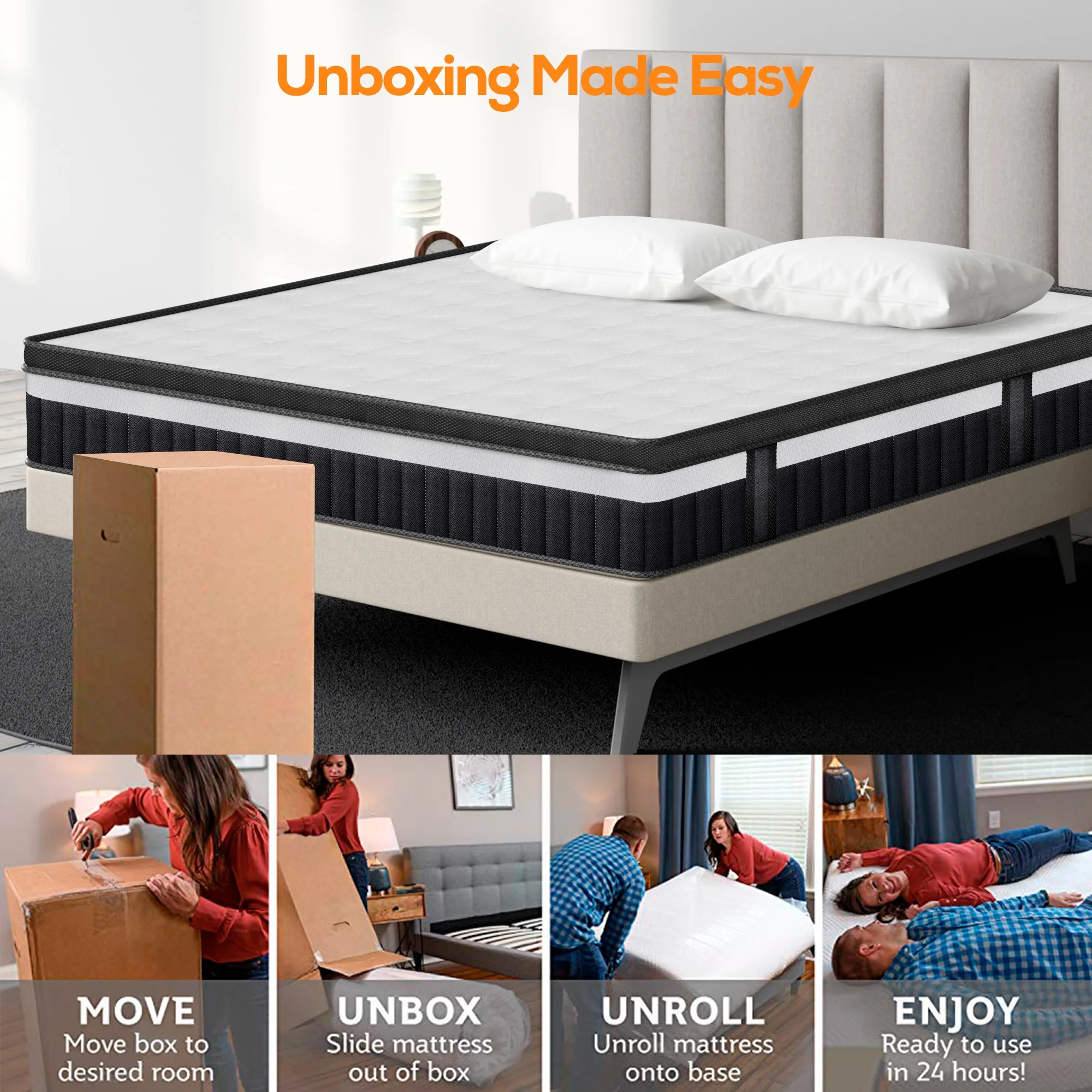 Behost Pillow Top Queen Mattress, 10inch Hybrid Innerspring Double Mattress in a Box, Pocket Spring Mattress