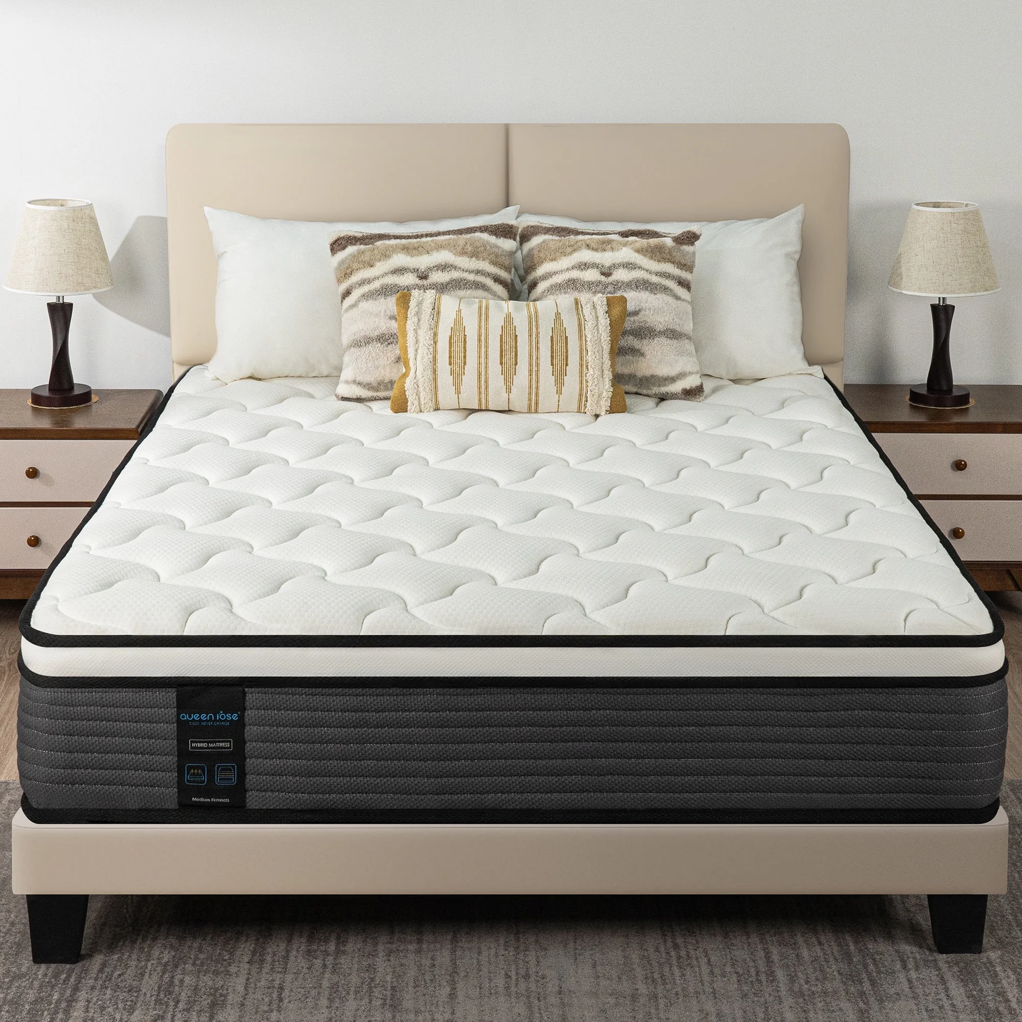 Queen Rose 14' ' Queen Medium Firm Hybrid Mattress, with Pocket Spring , Bed in-a-Box