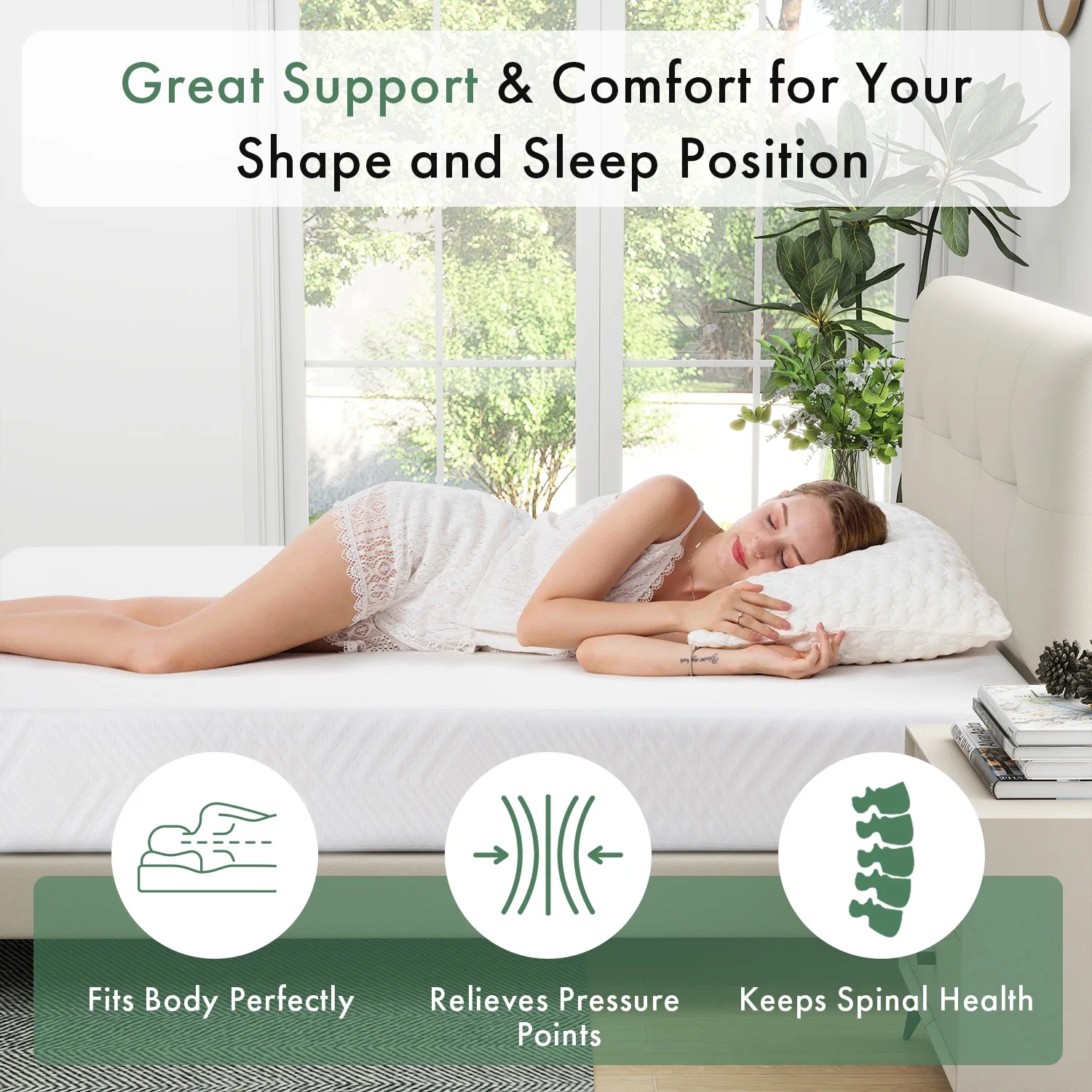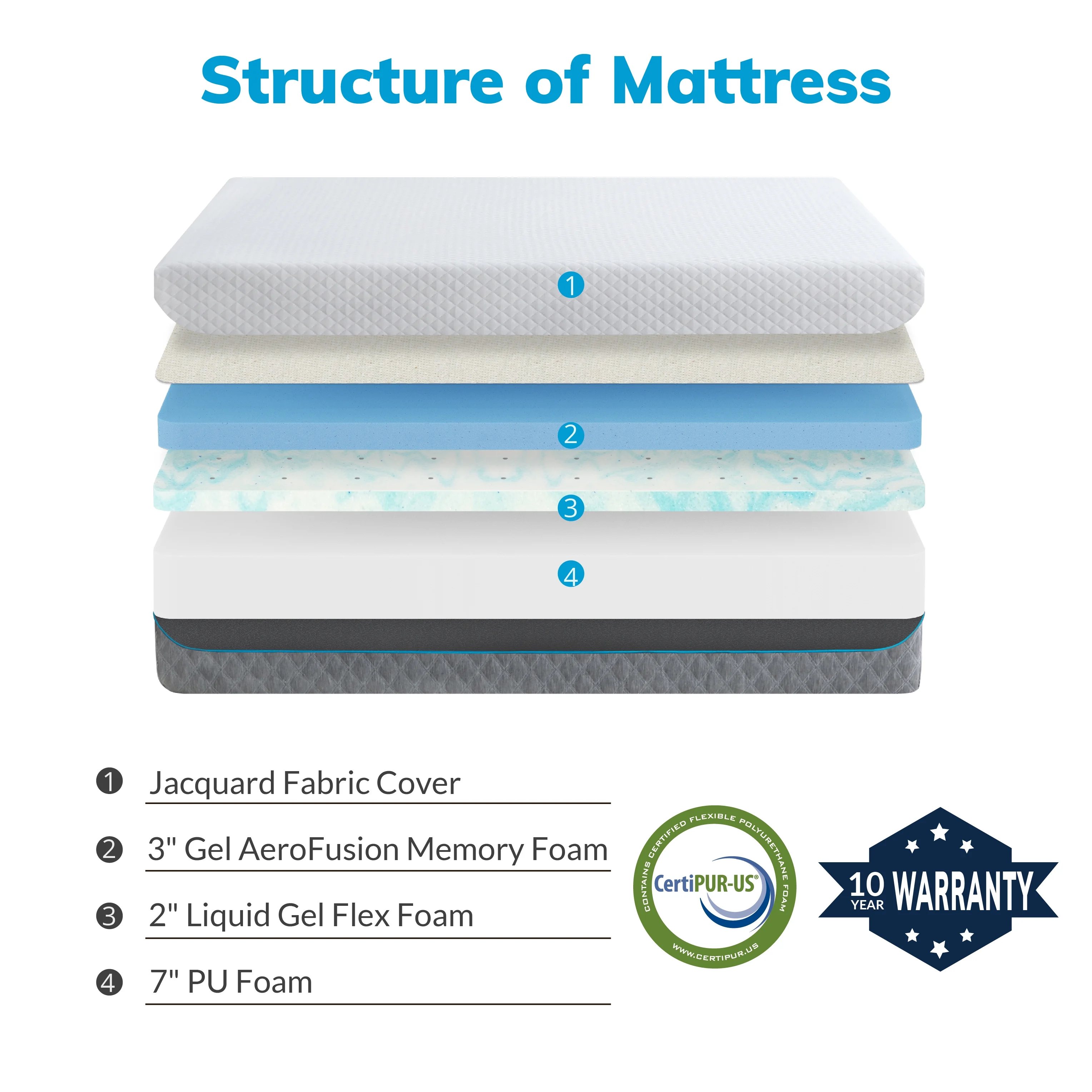Queen Mattress Bed in a Box,10" Memory Foam Mattress with Graphene Fabric Cover, Made in USA