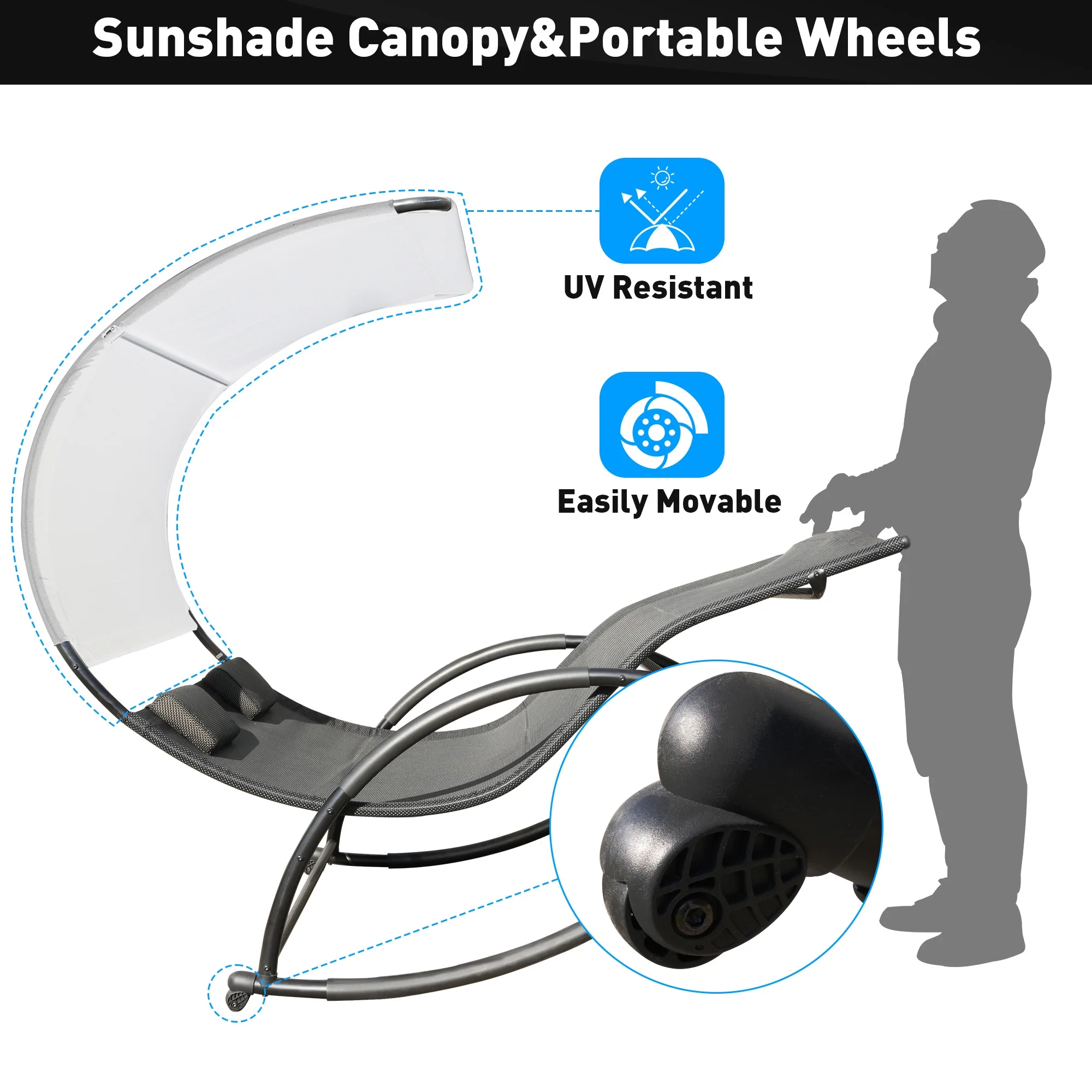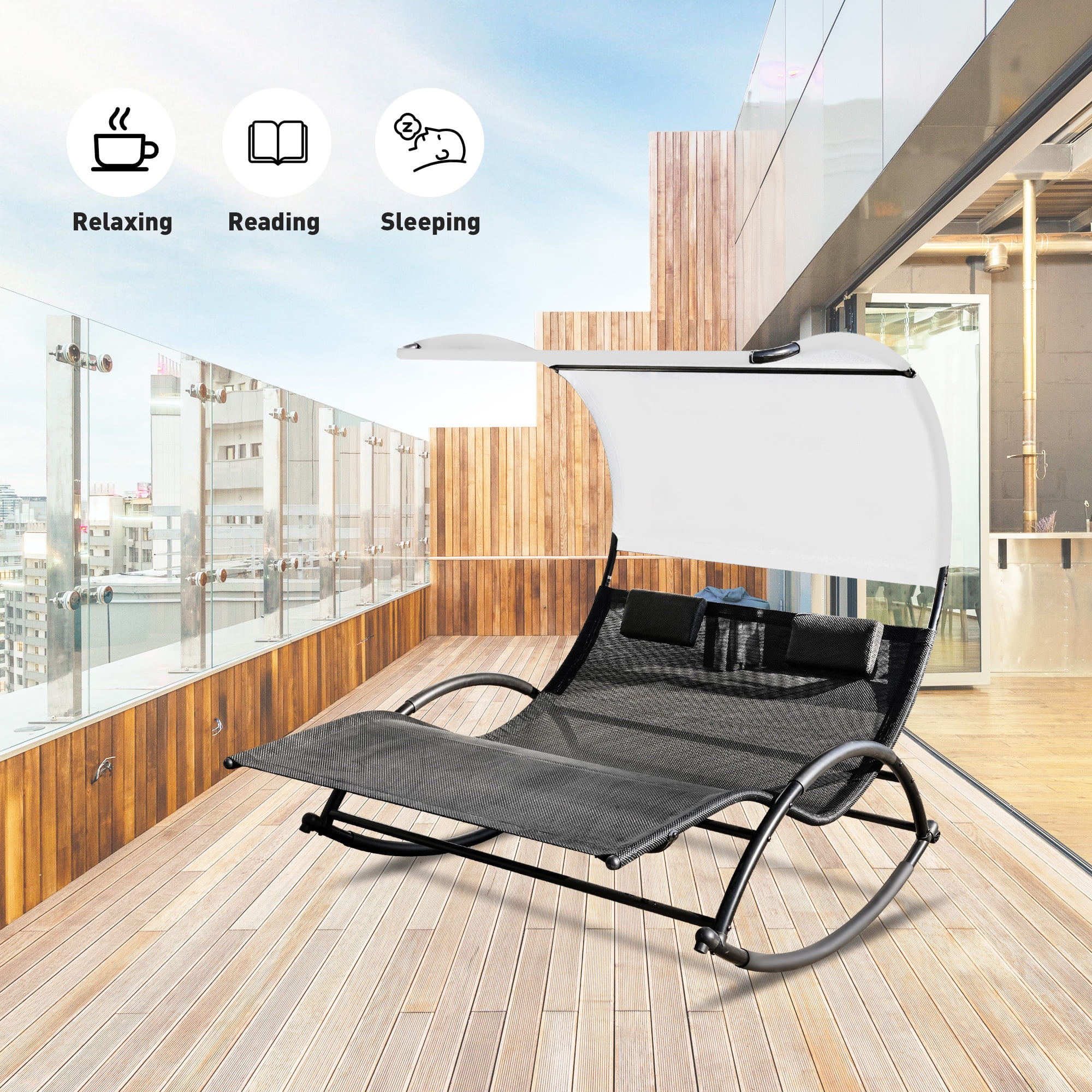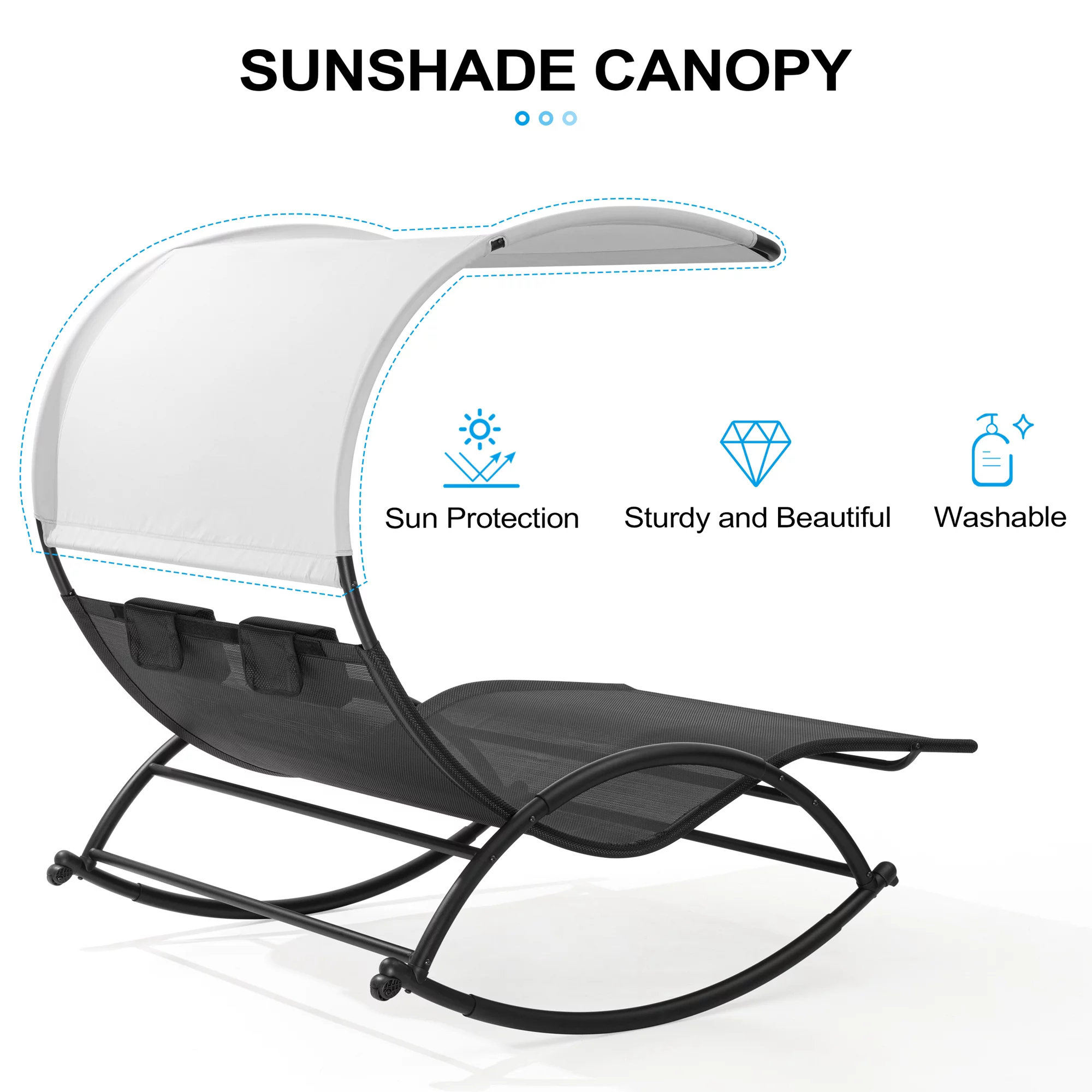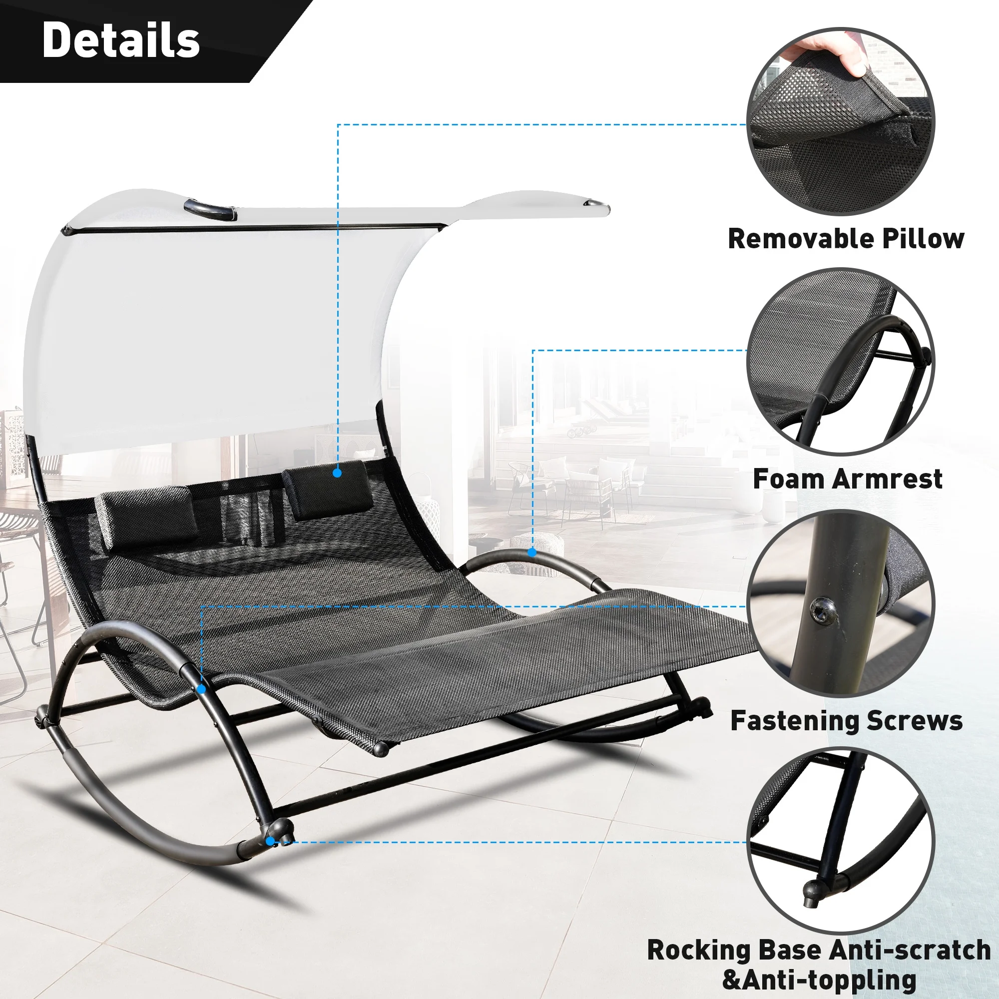 Crestlive Products Outdoor Double Chaise Lounge with Shade Patio Metal Rocking Chair, Black
