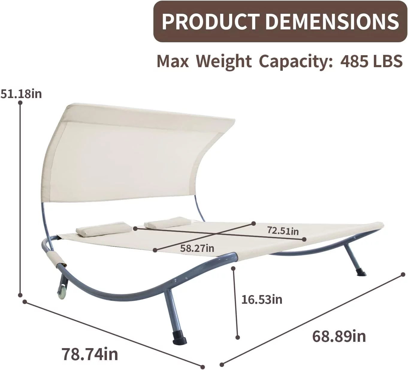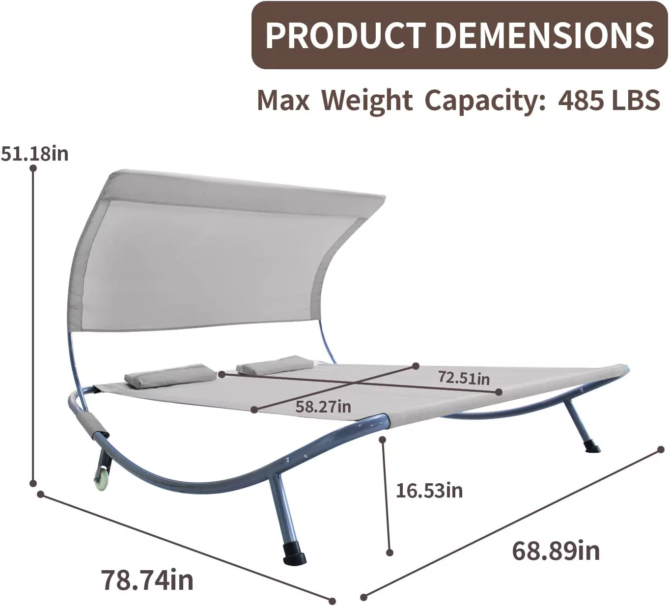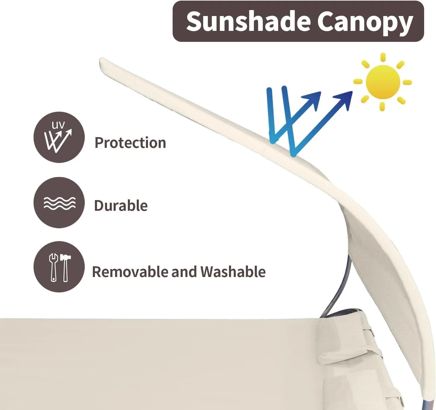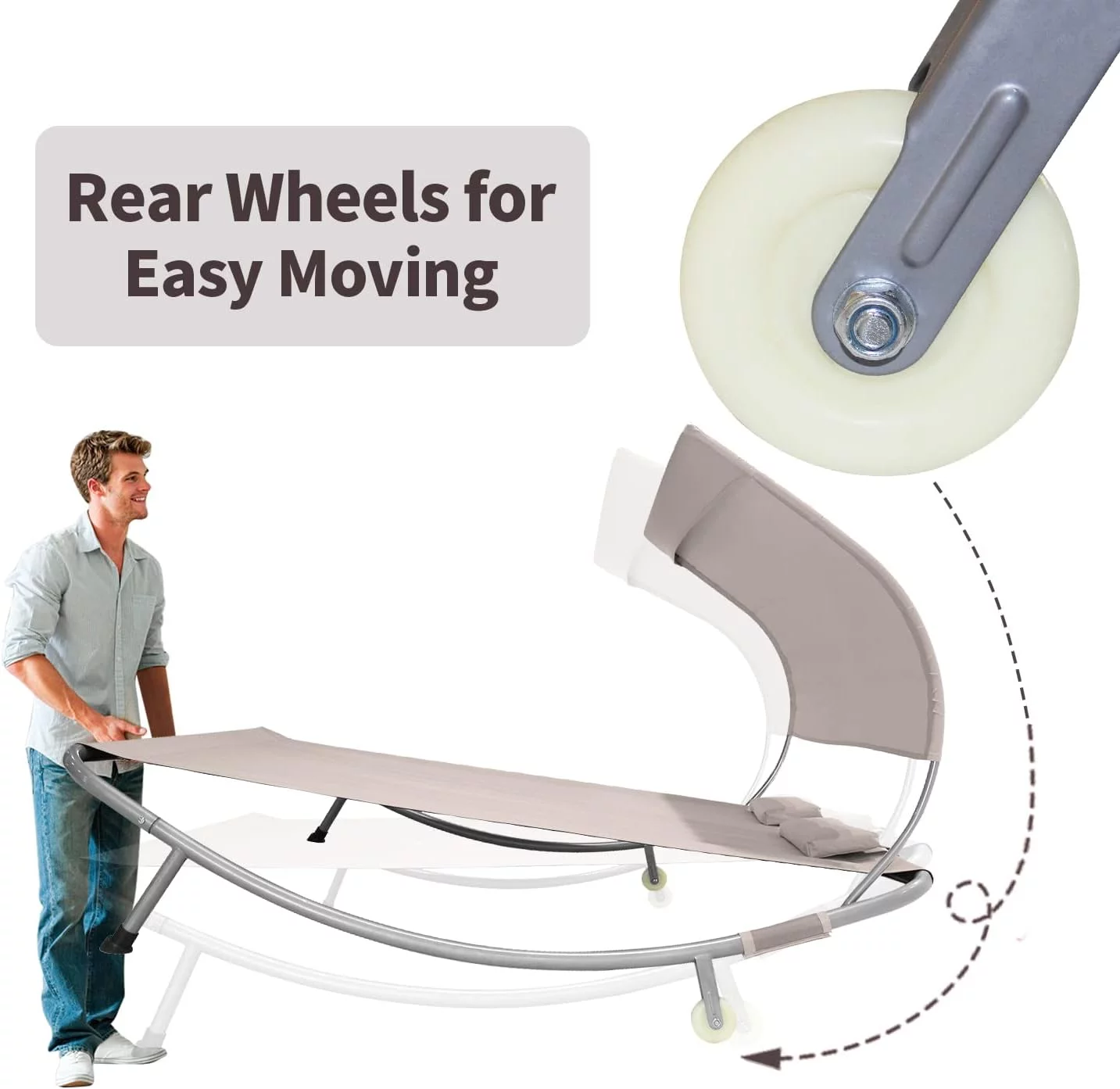 Crestlive Products Outdoor Double Chaise Lounge with Shade Patio Metal Rocking Chair, Black