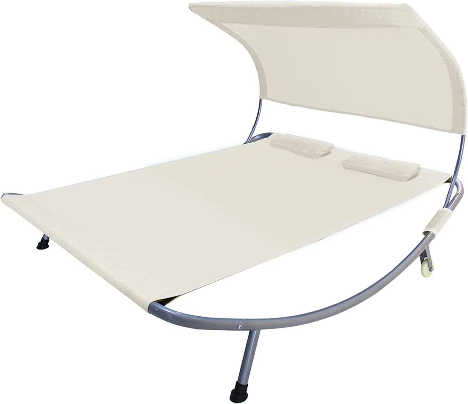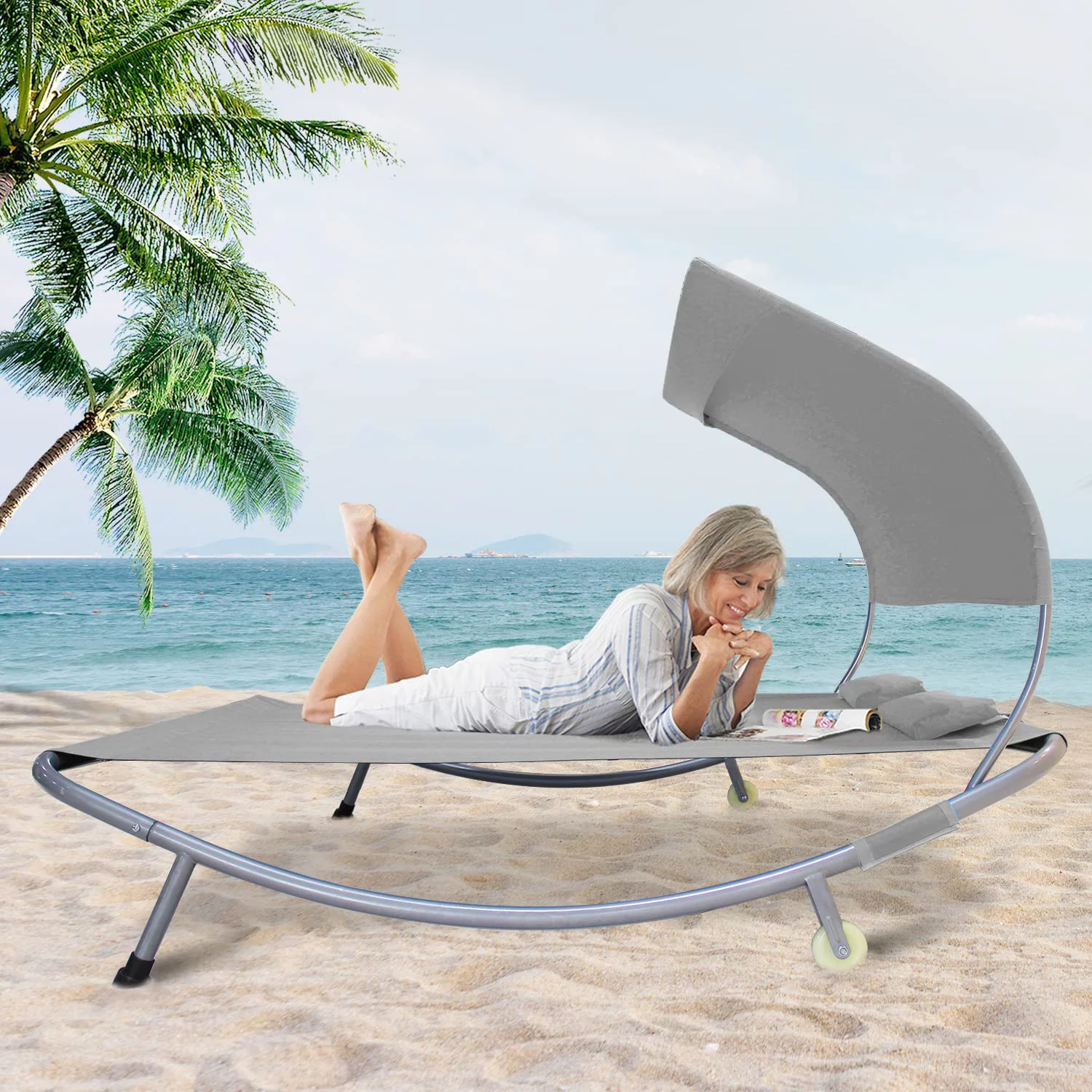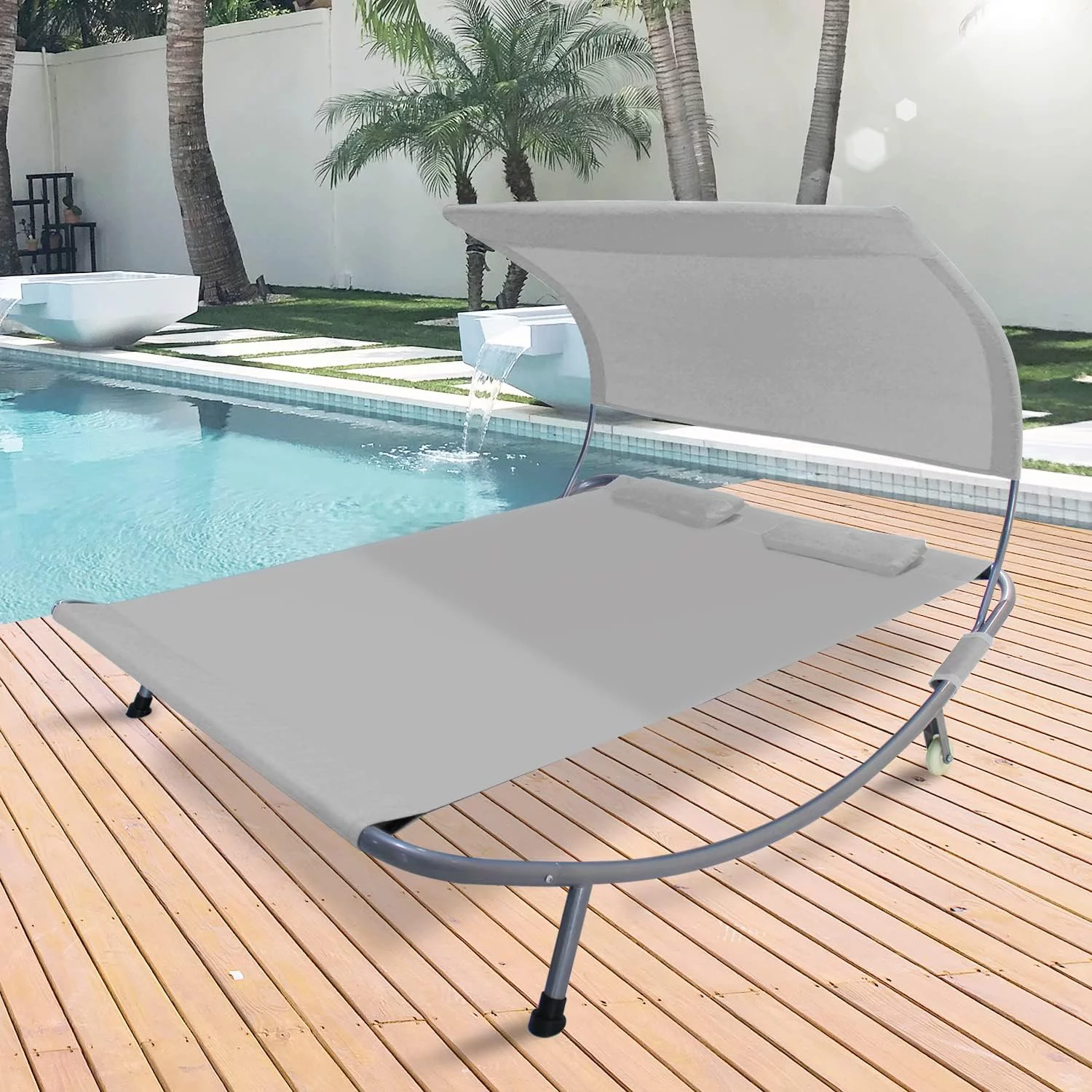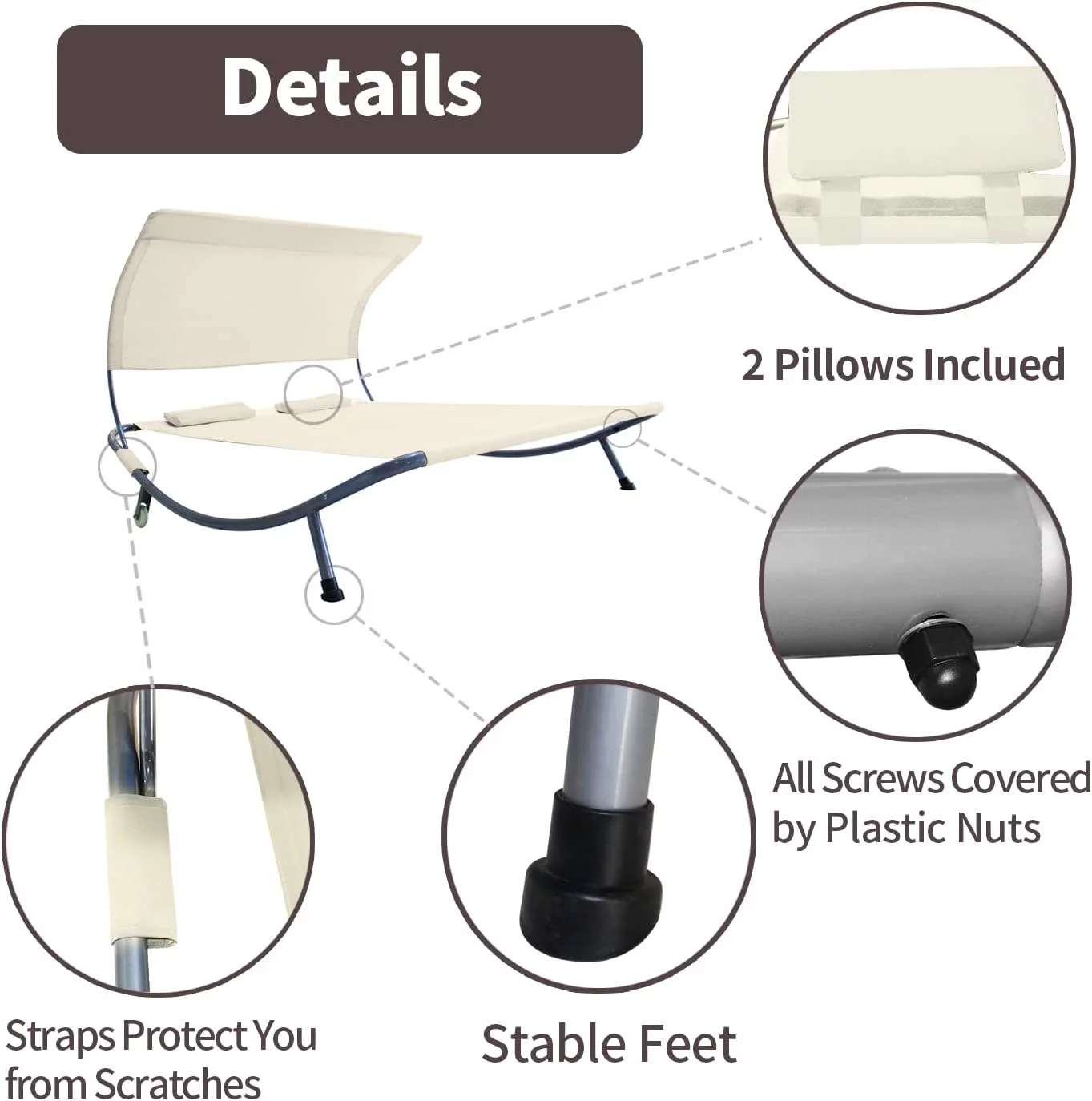 Crestlive Products Outdoor Double Chaise Lounge with Shade Patio Metal Rocking Chair, Black