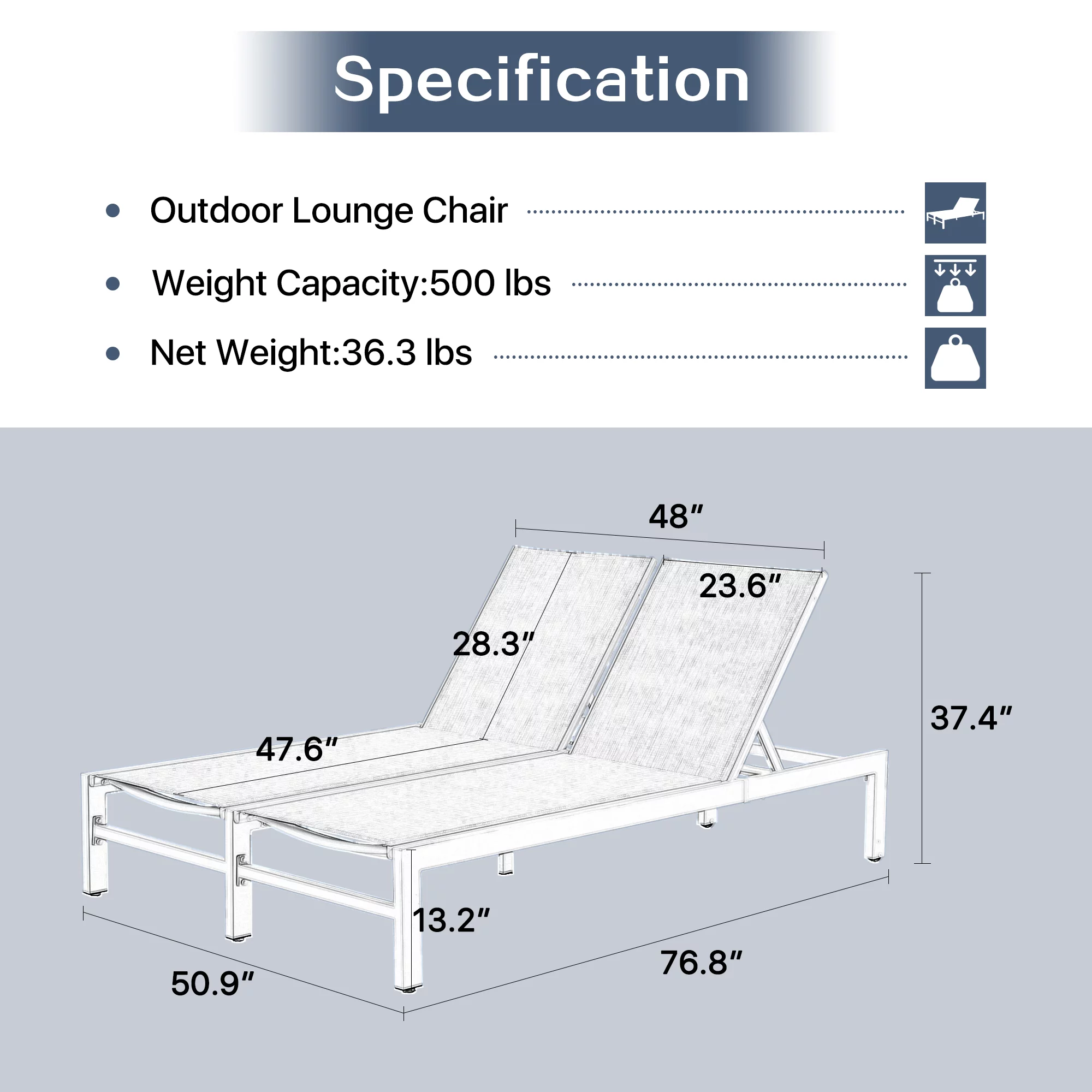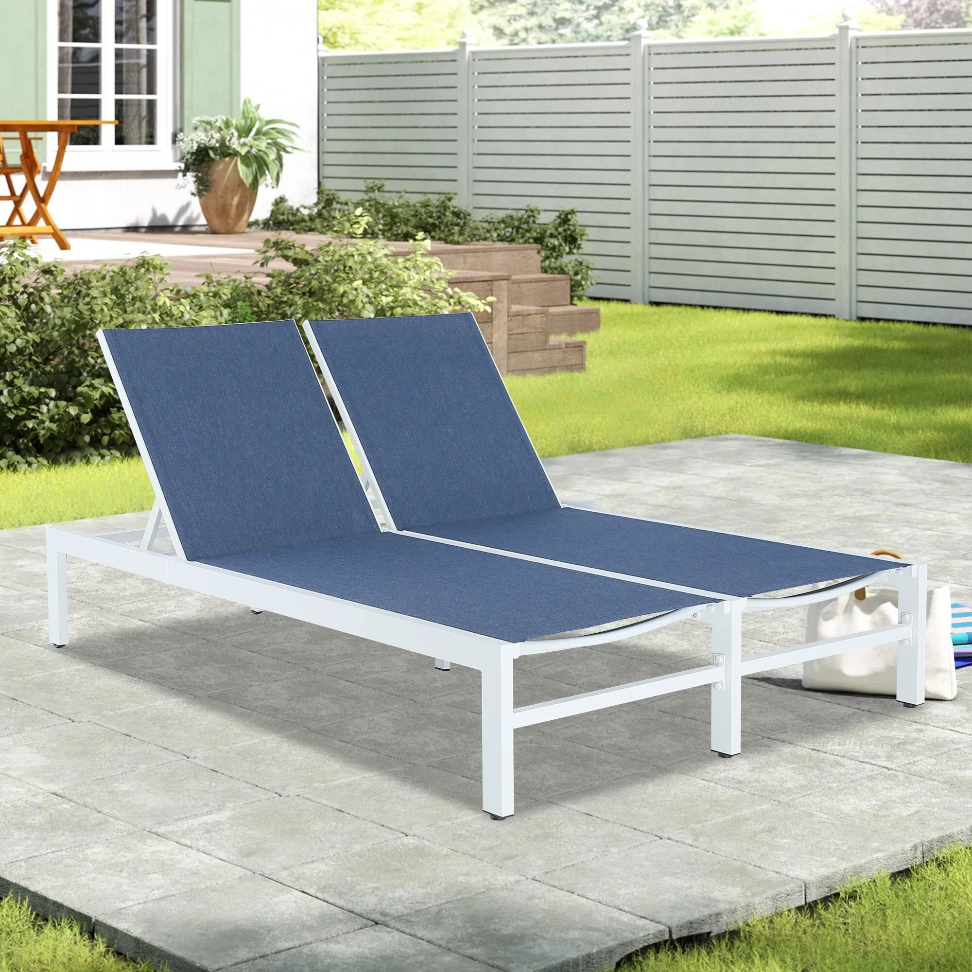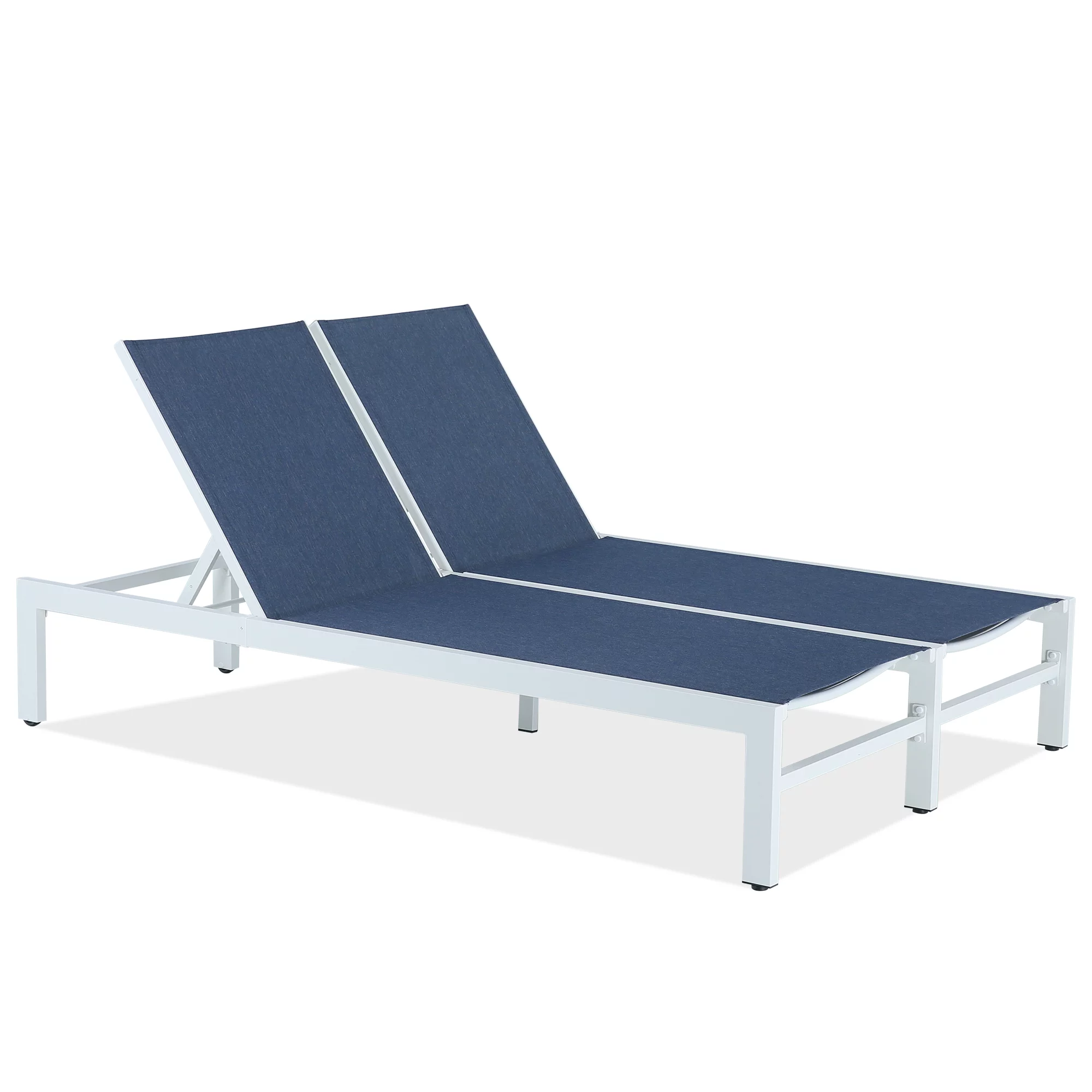 Double Chaise Lounge Outdoor Aluminum Adjustable Back Recliner Chair Navy