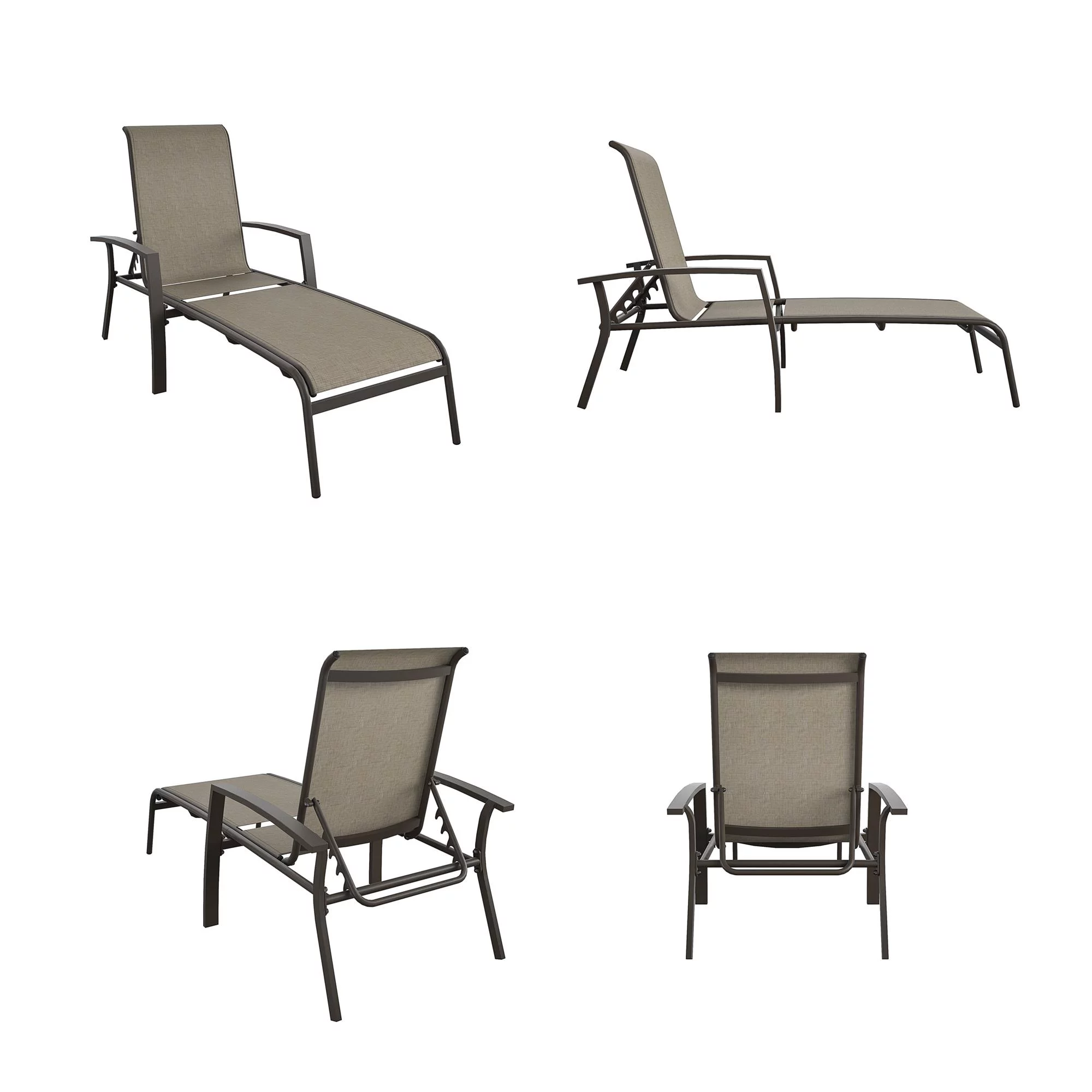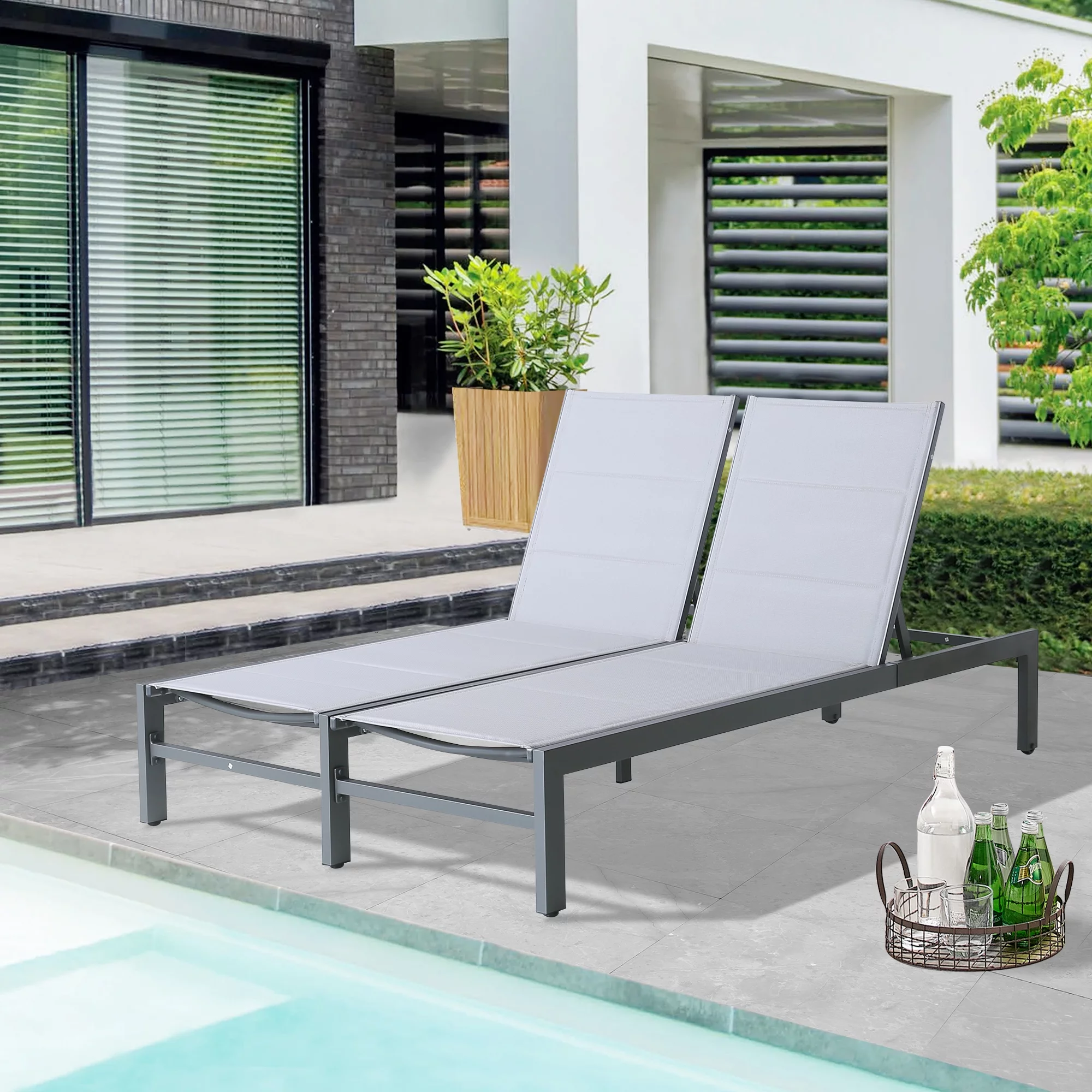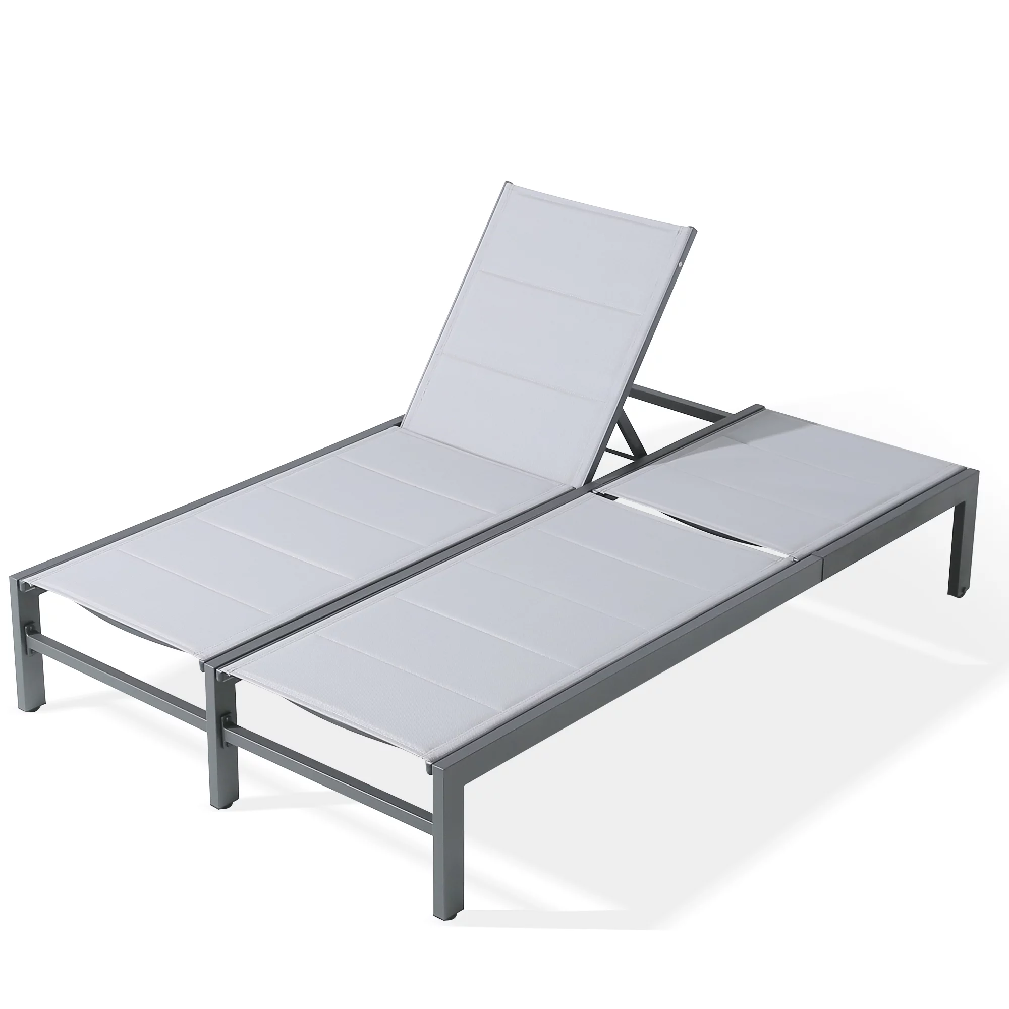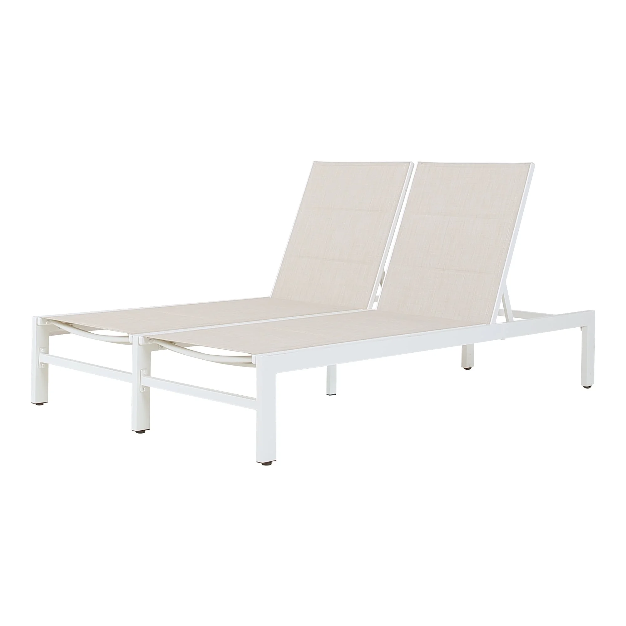 Double Chaise Lounge Outdoor Aluminum Adjustable Back Recliner Chair Navy