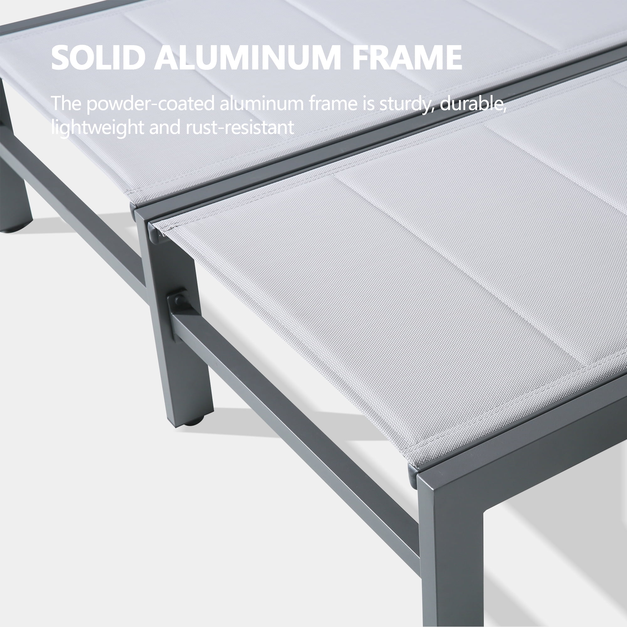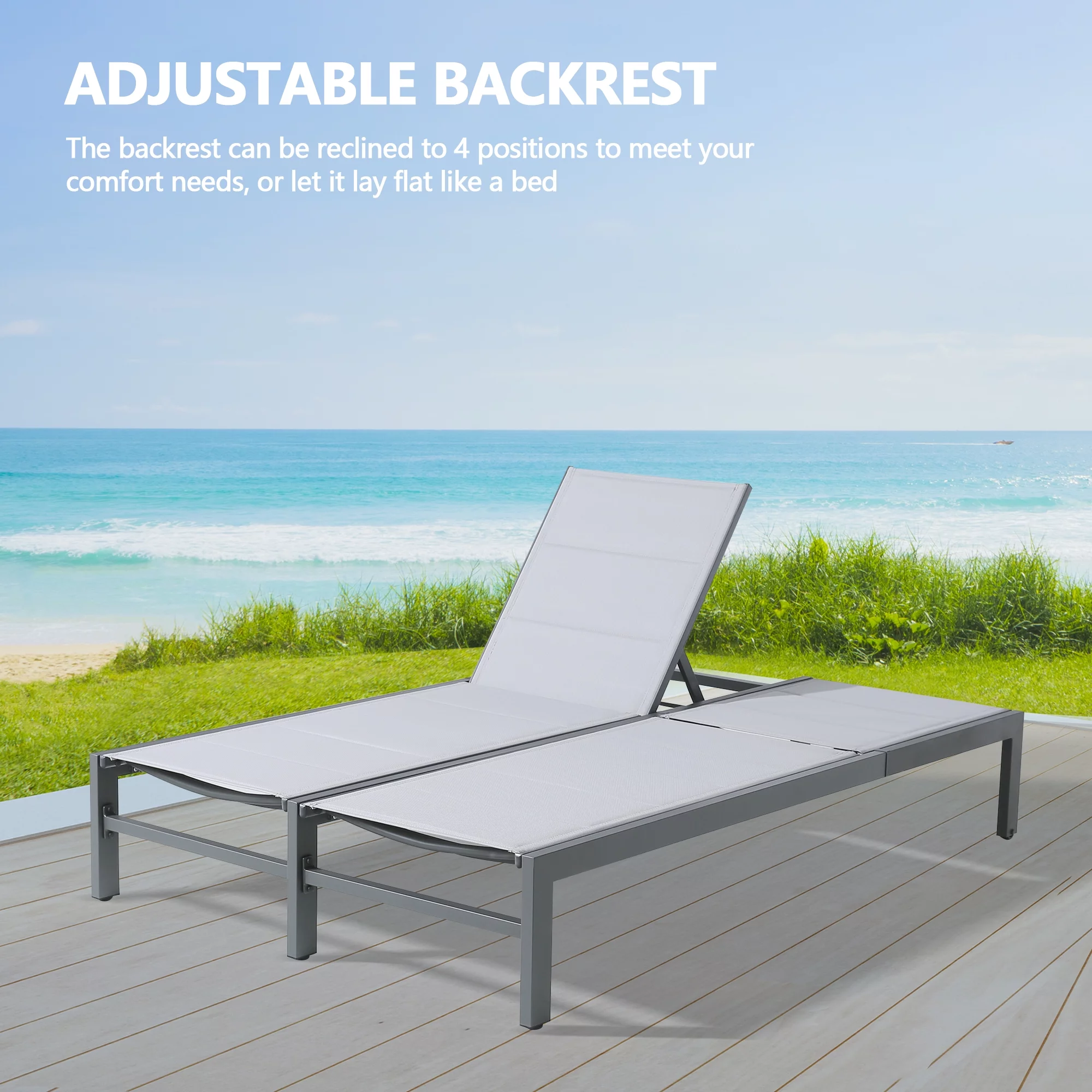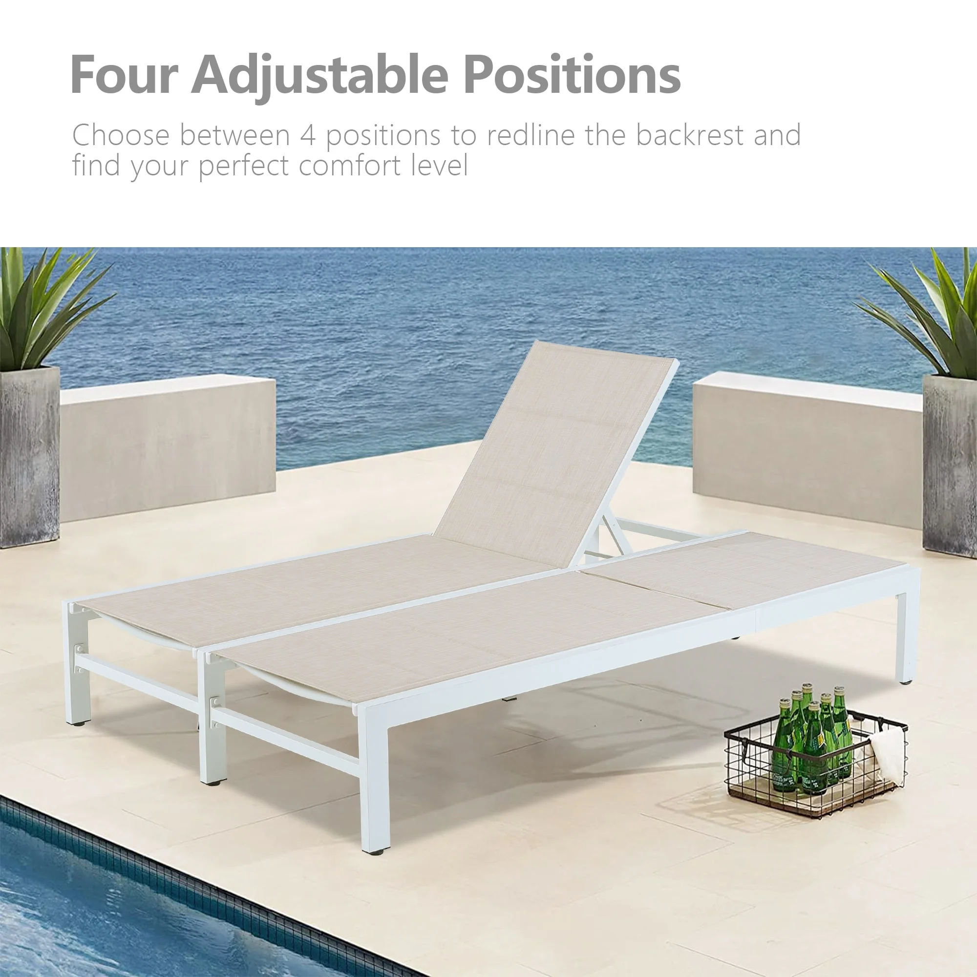 Ulax Furniture Patio Aluminum Double Textilene Chaise Lounge Outdoor Adjustable Recliner Chairs with Wheels (Navy)