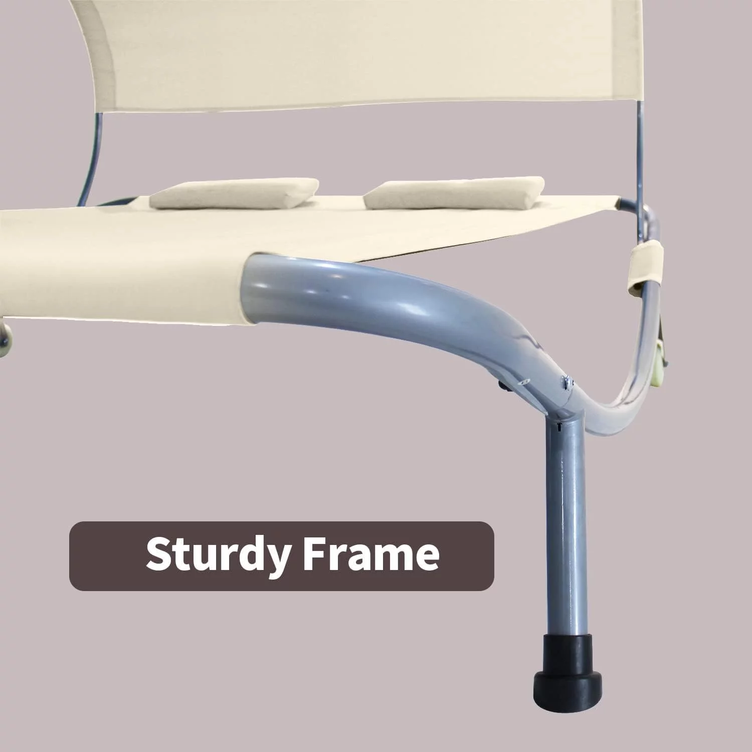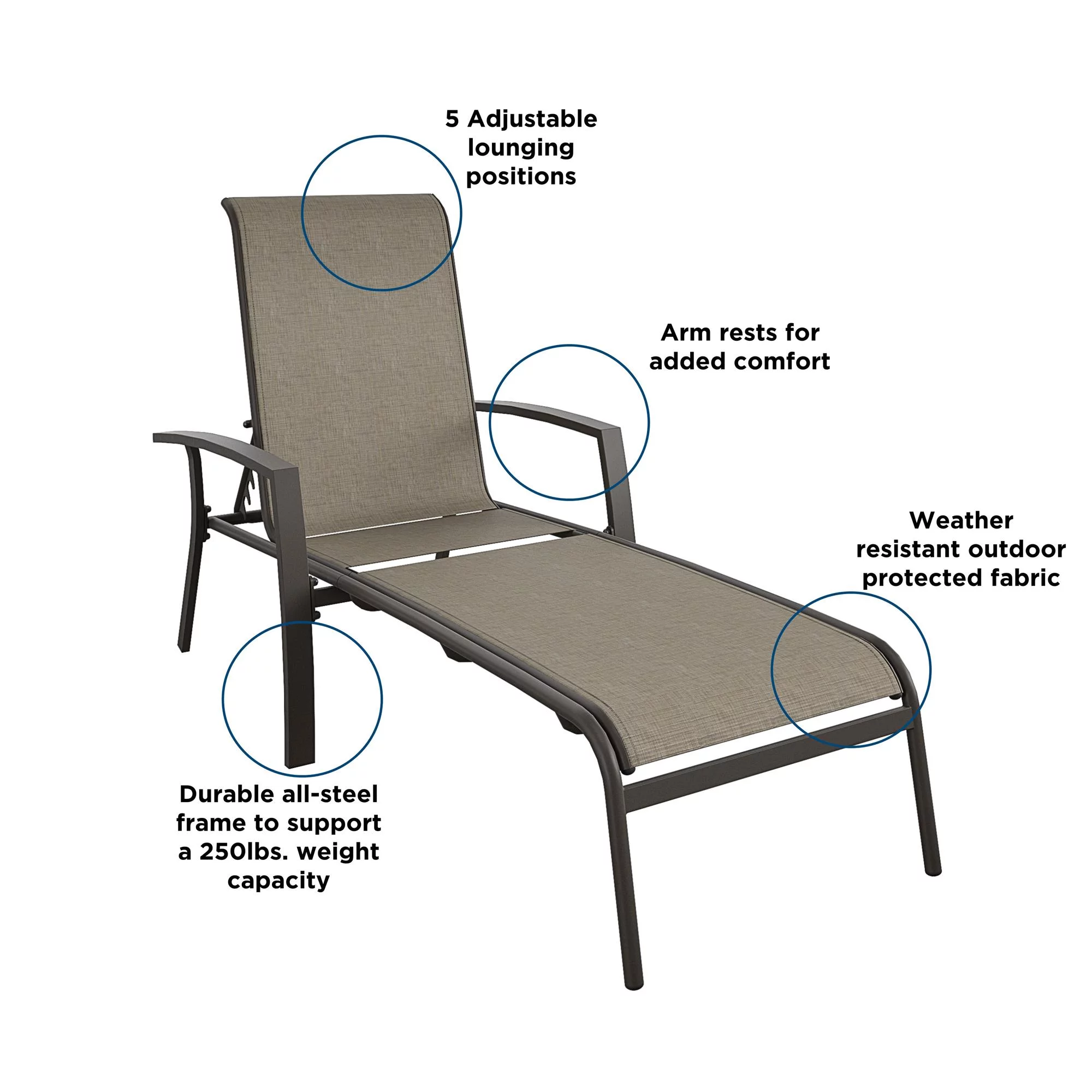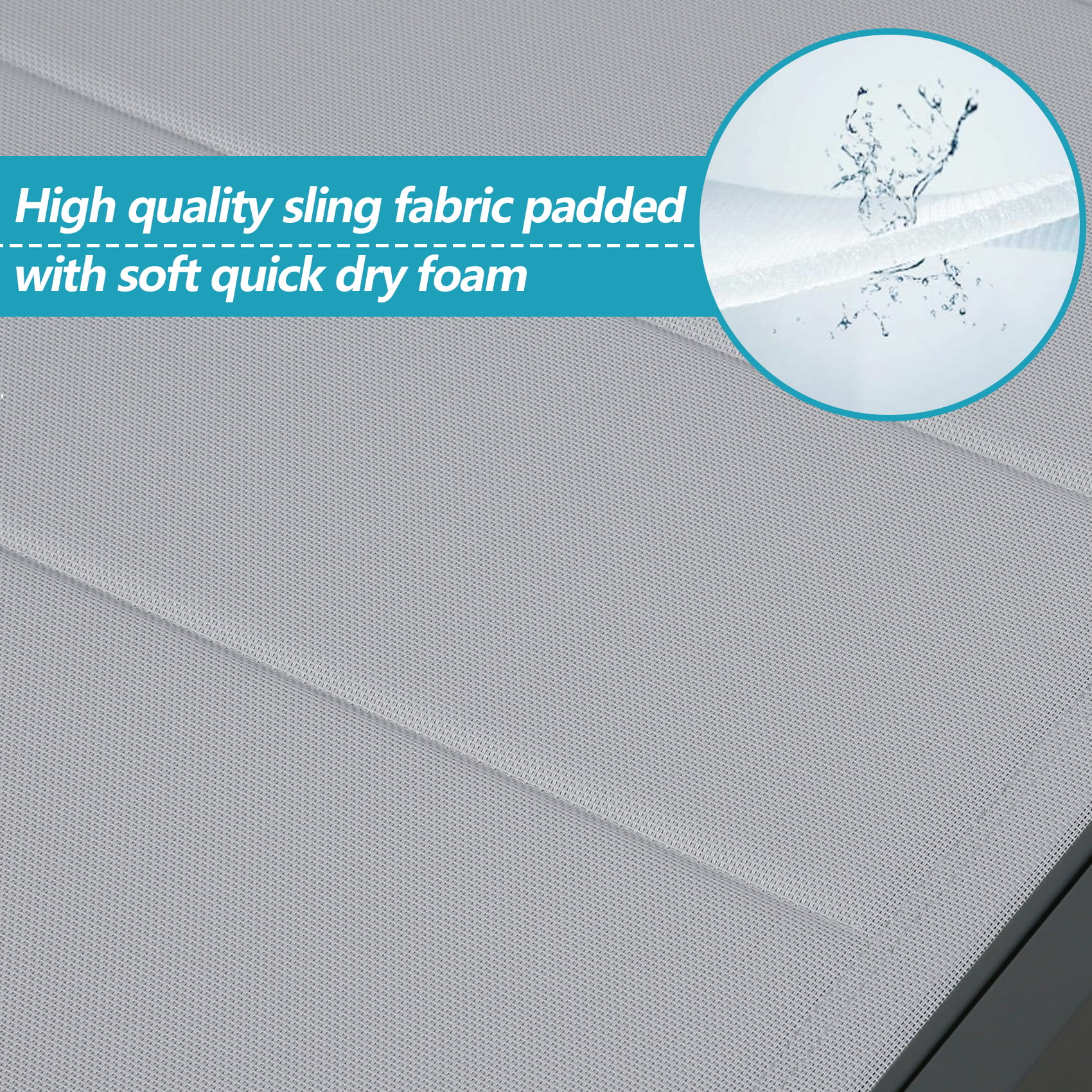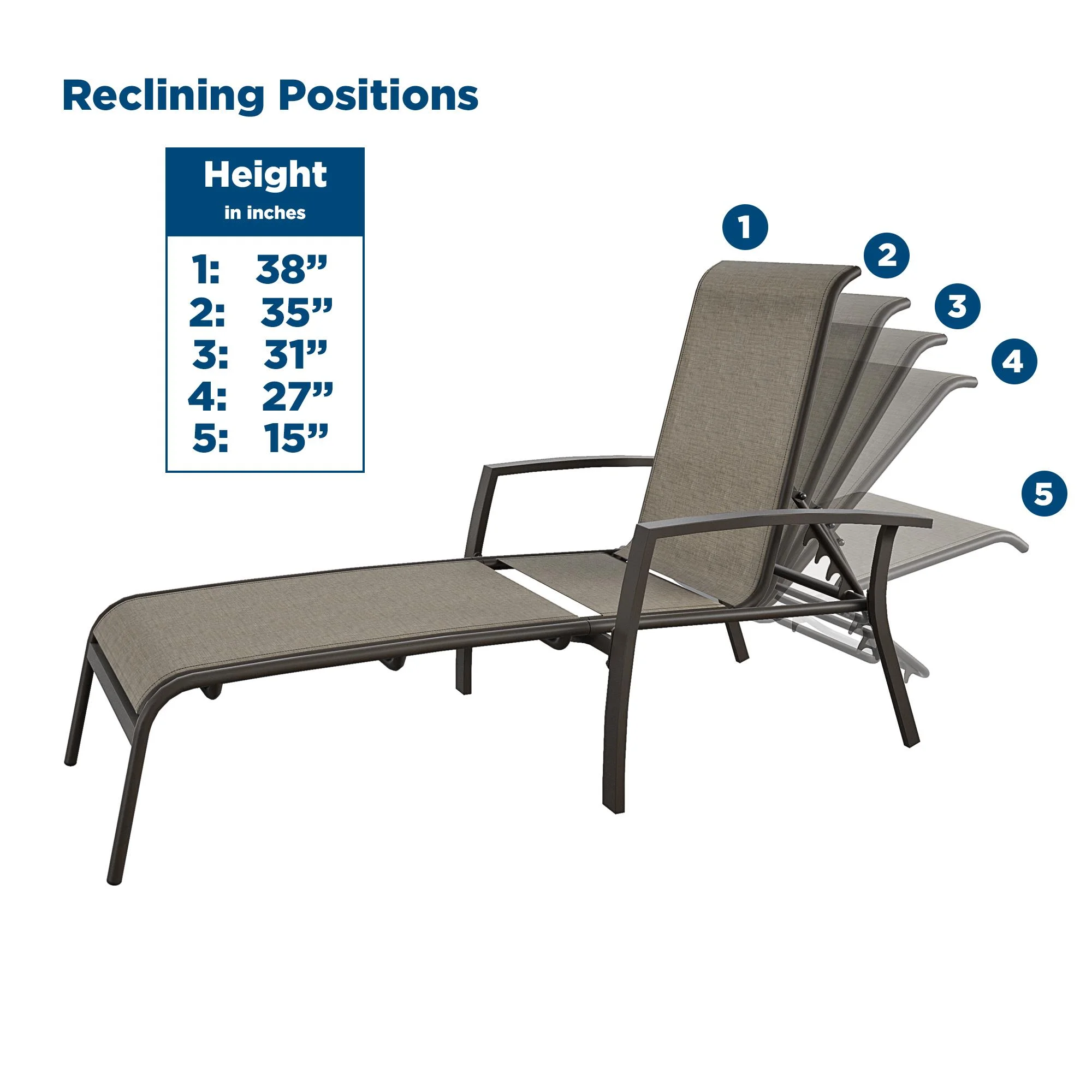Ulax Furniture Patio Aluminum Double Textilene Chaise Lounge Outdoor Adjustable Recliner Chairs with Wheels (Navy)