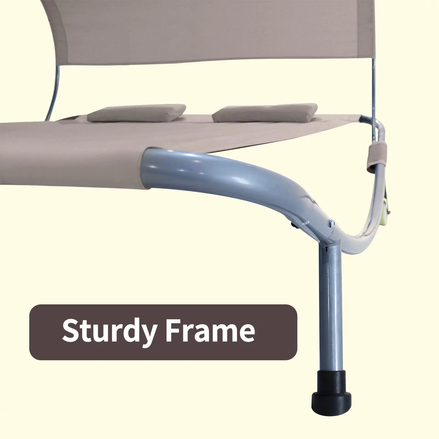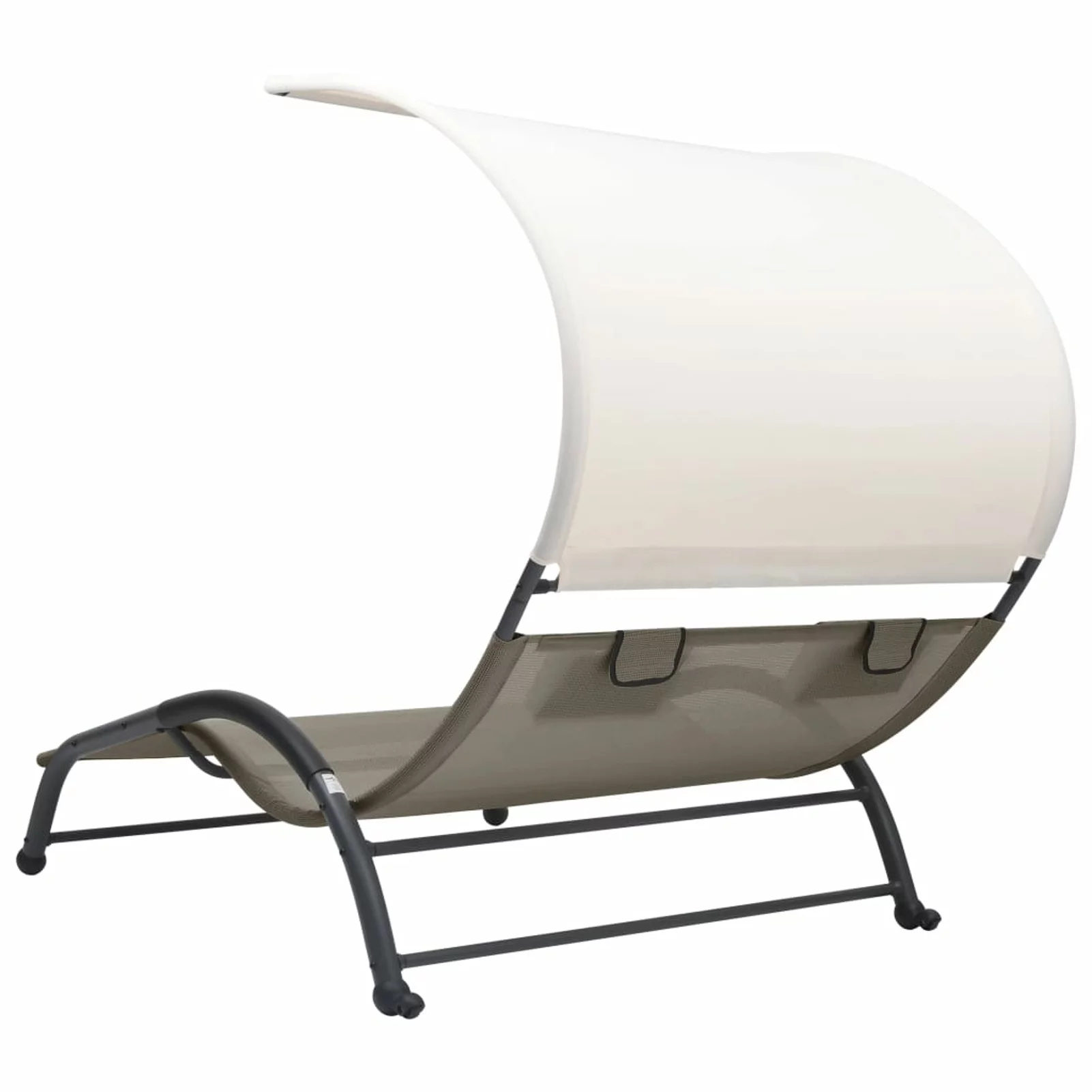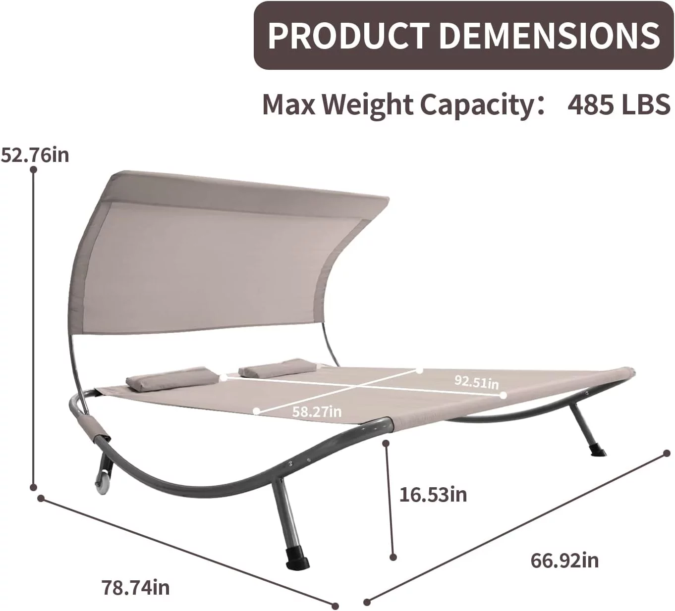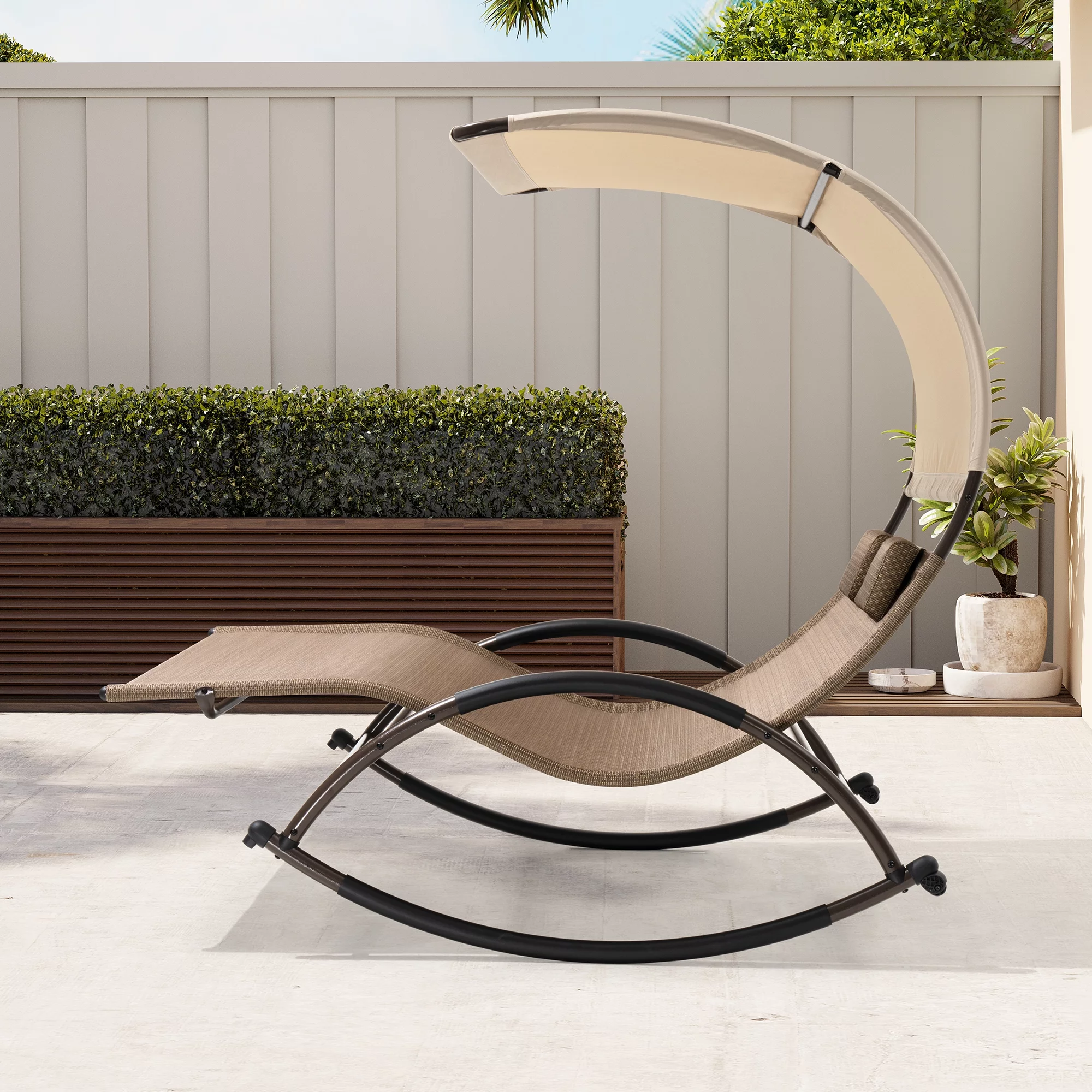 Pellebant Outdoor Double Chaise Lounge with Shade Patio Metal Rocking Chair in Brown