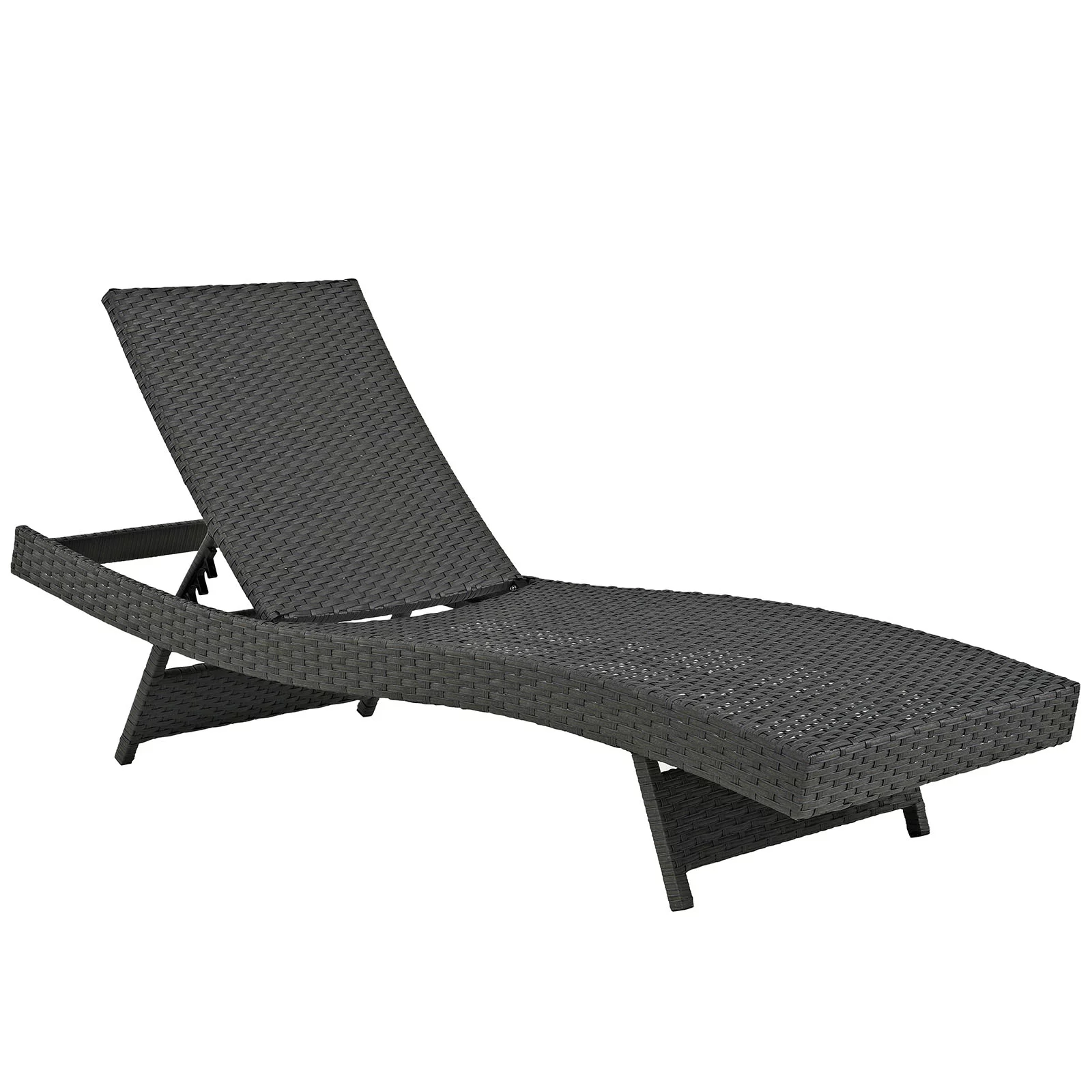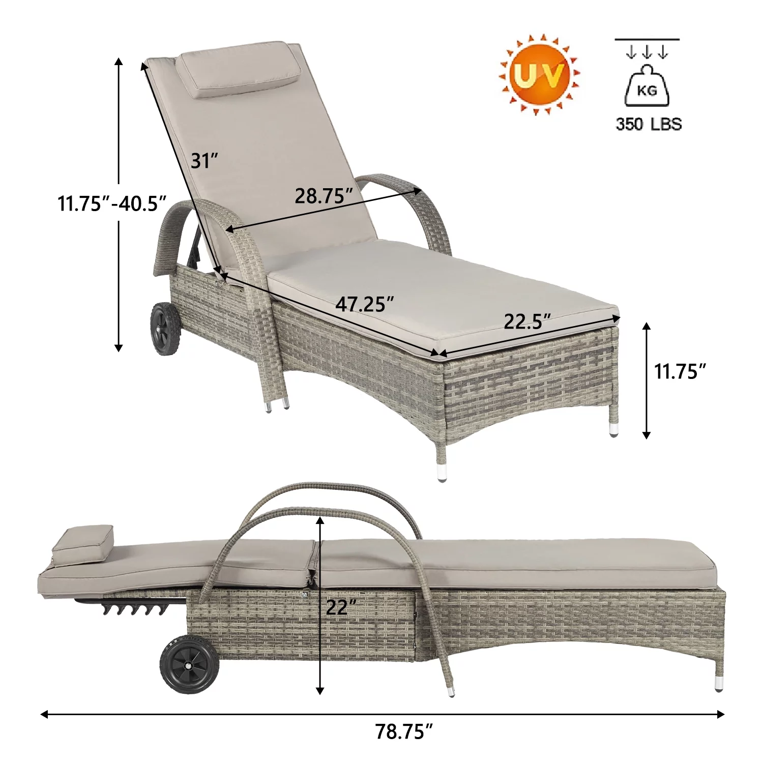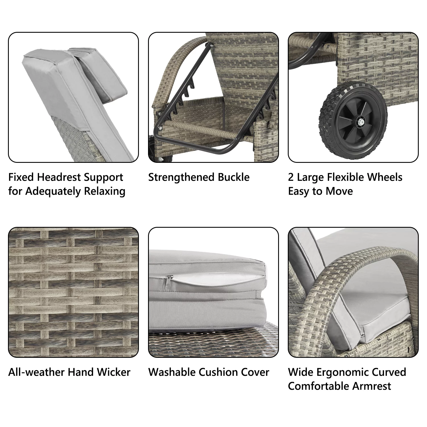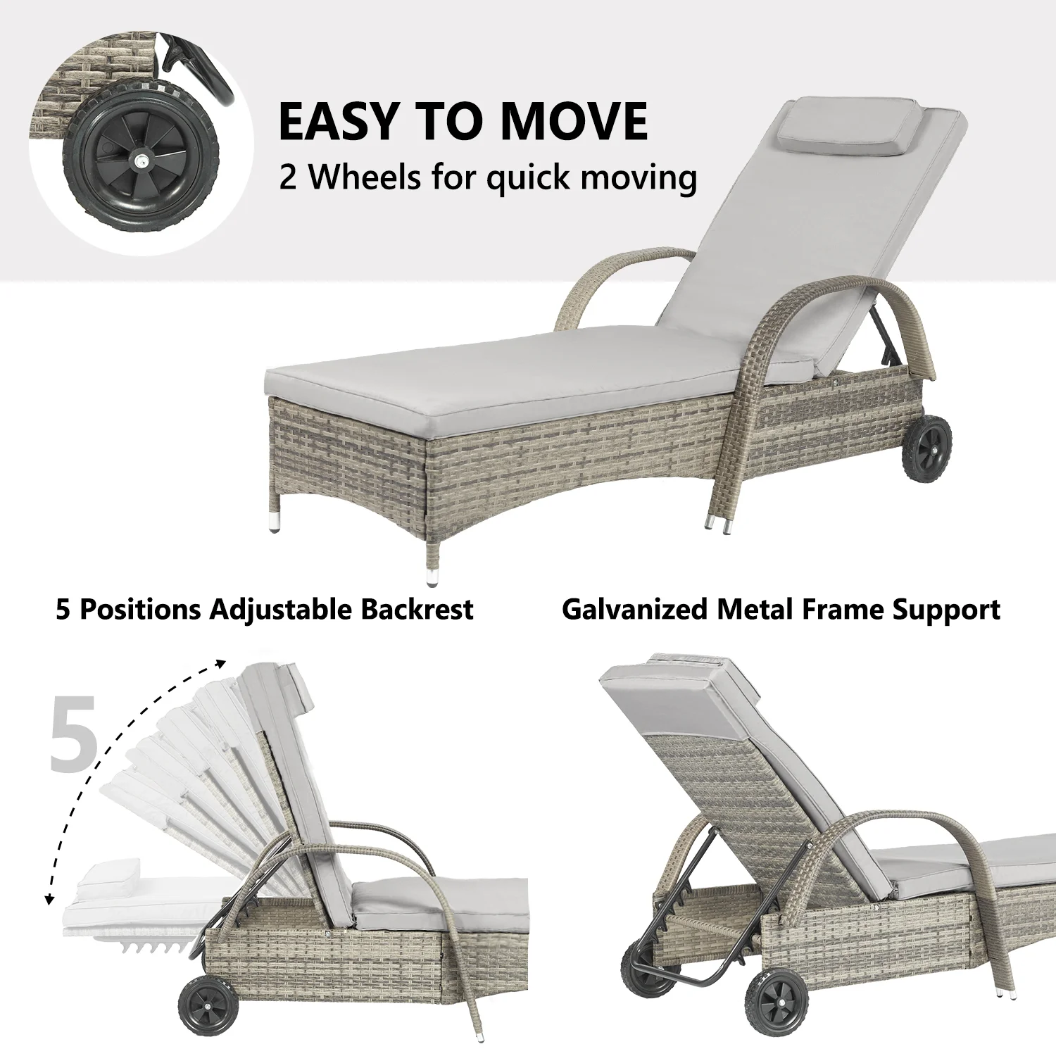 Chaise Lounge Outdoor Patio Wicker Pool Chaise Lounge Chair for Outside Recliner Grey