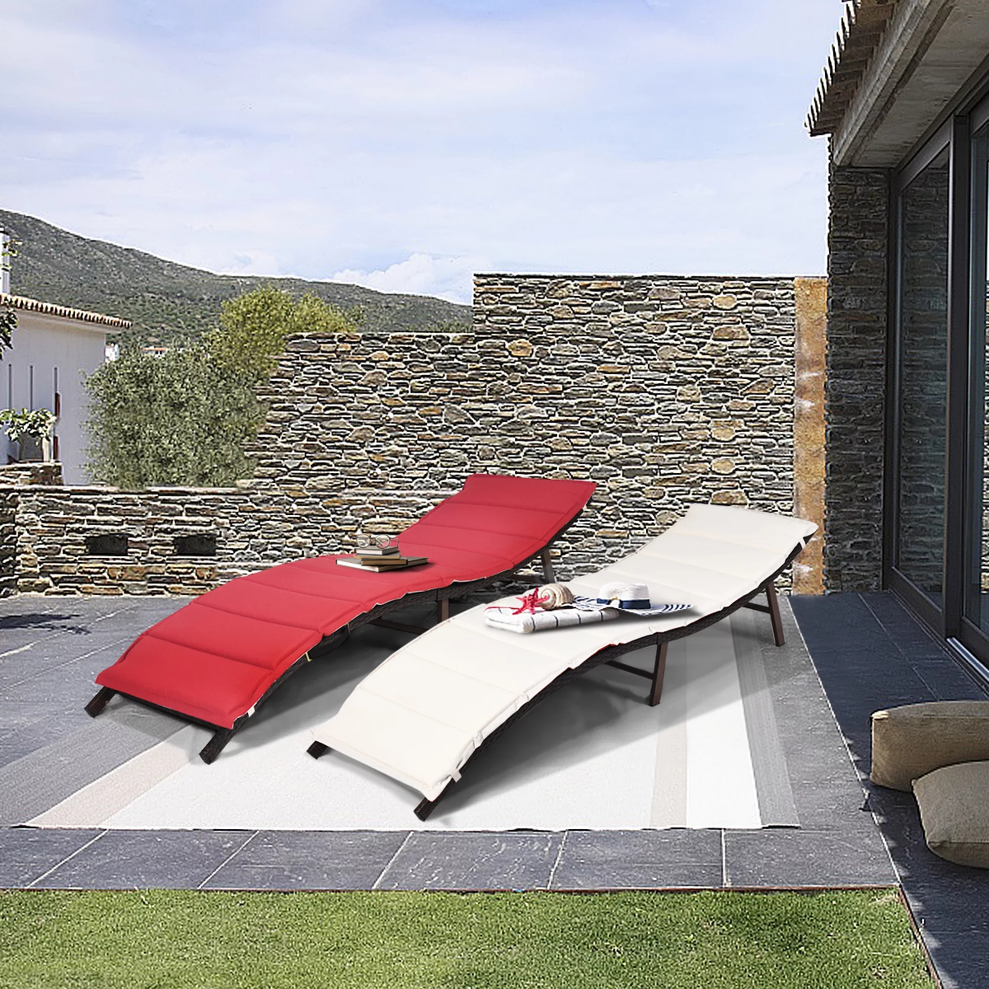 Gymax Set of 2 Folding Wicker Chaise Portable Lounge Chair w/ Double Sided Cushion
