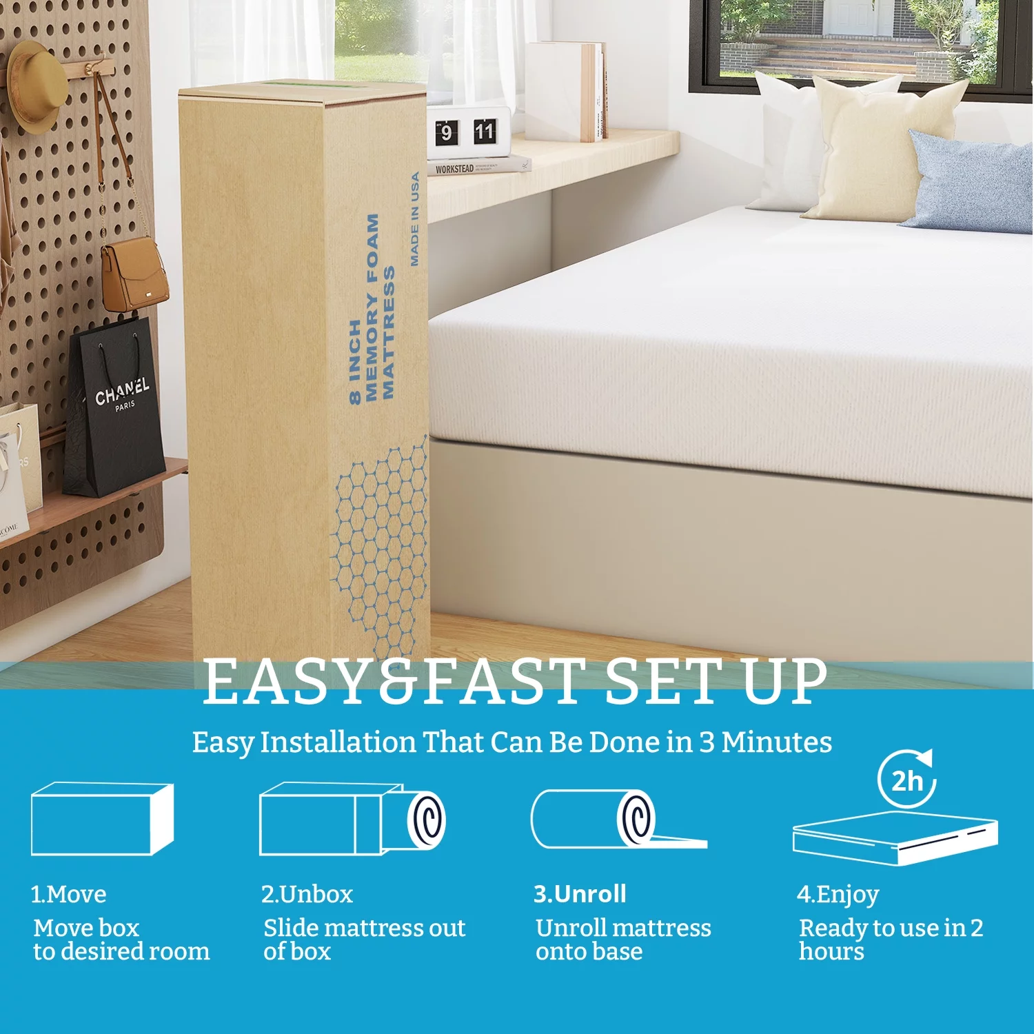 Queen Mattress,8 inch Memory Foam Mattress for Motion Isolation, Mattress in a Box
