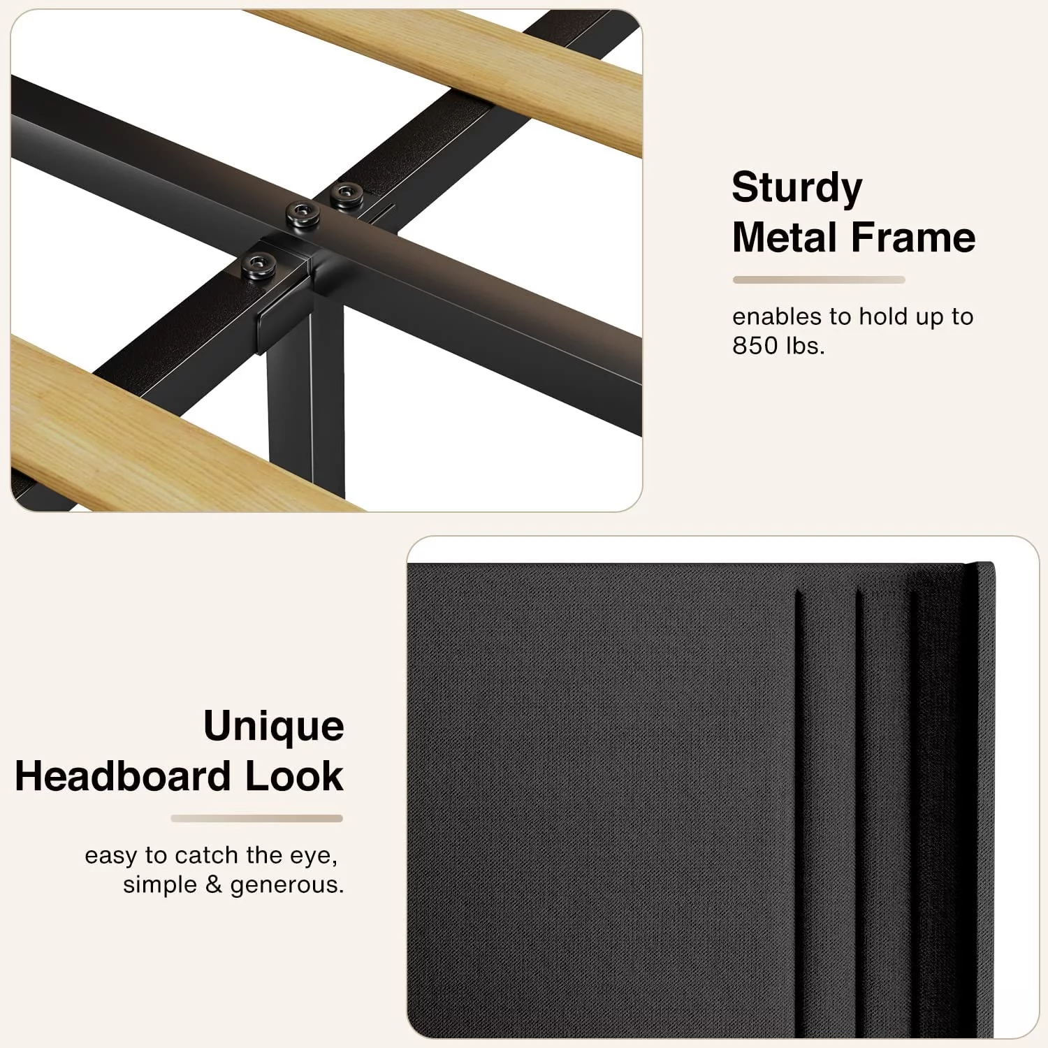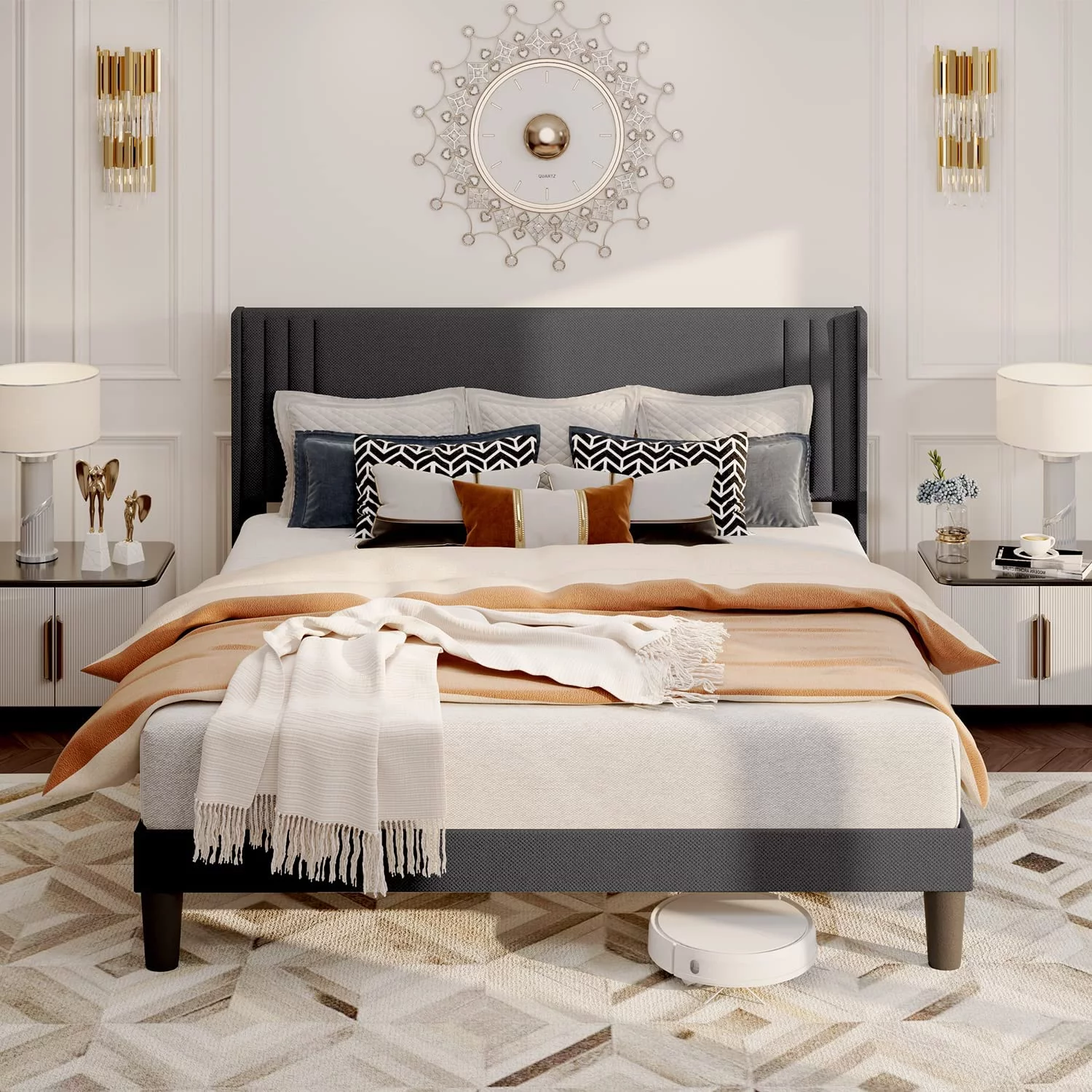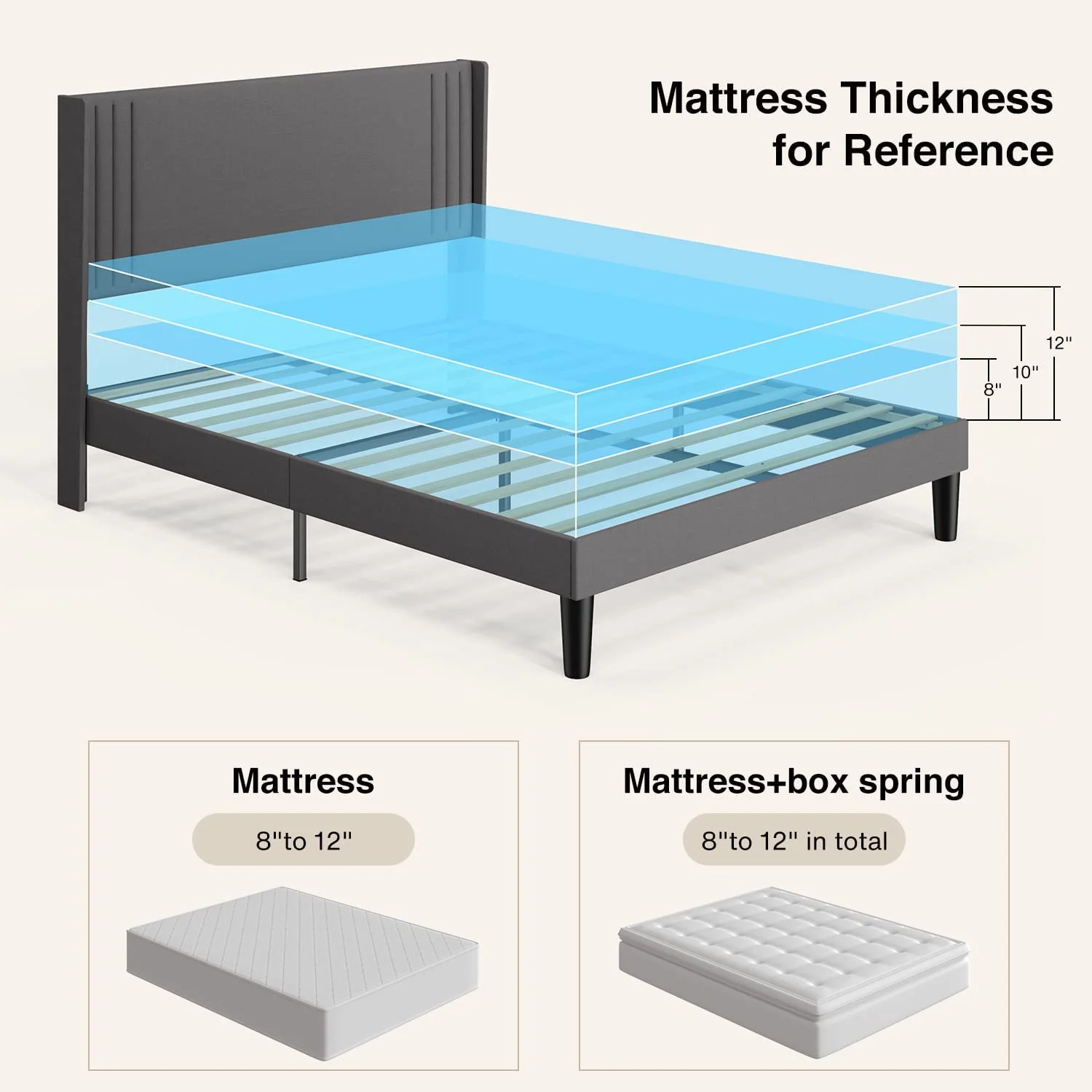 Lofka Full Size Bed Frame with Upholstered Wing Back Headboard, Noise Isolation, Dark Grey Finish