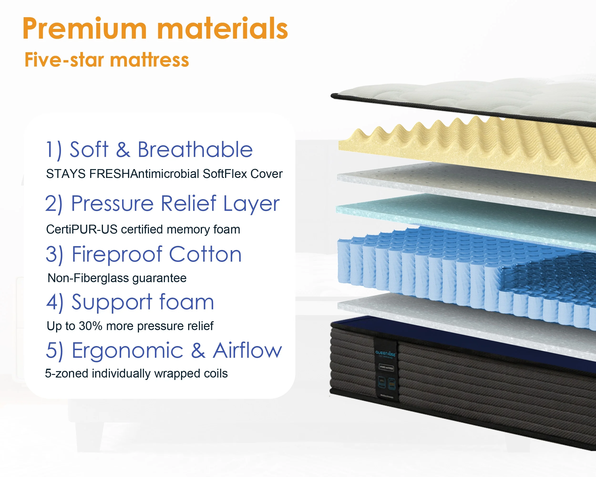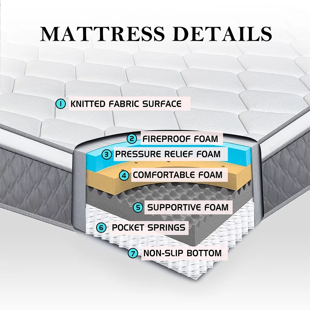 14" Queen Mattress Gel Memory Foam Pocket Spring Hybrid Mattress in a Box