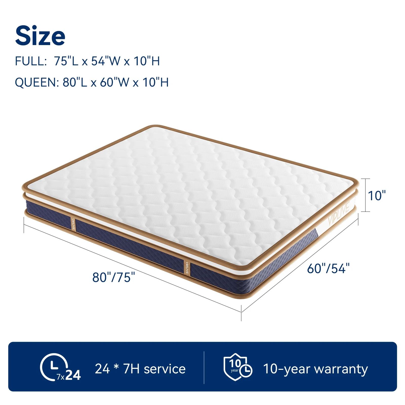 Queen Mattress, Potctz 10" Medium Hybrid Innerspring Mattress and Gel Memory Foam, Queen Size Mattress