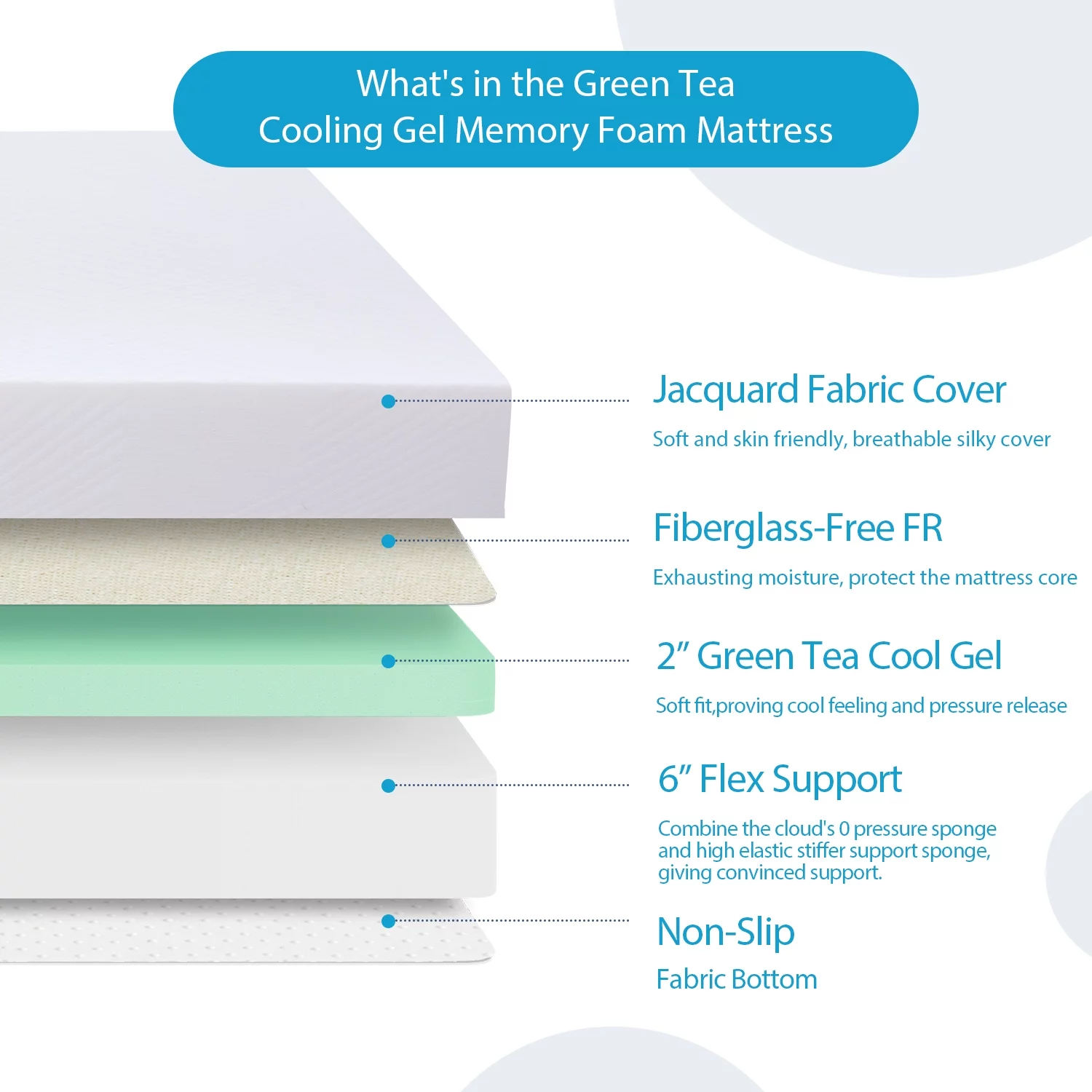 6'' Twin Size Memory Foam Mattress with Cover Breathable Bed Mattress in a Box, CertiPUR-US, Made in USA