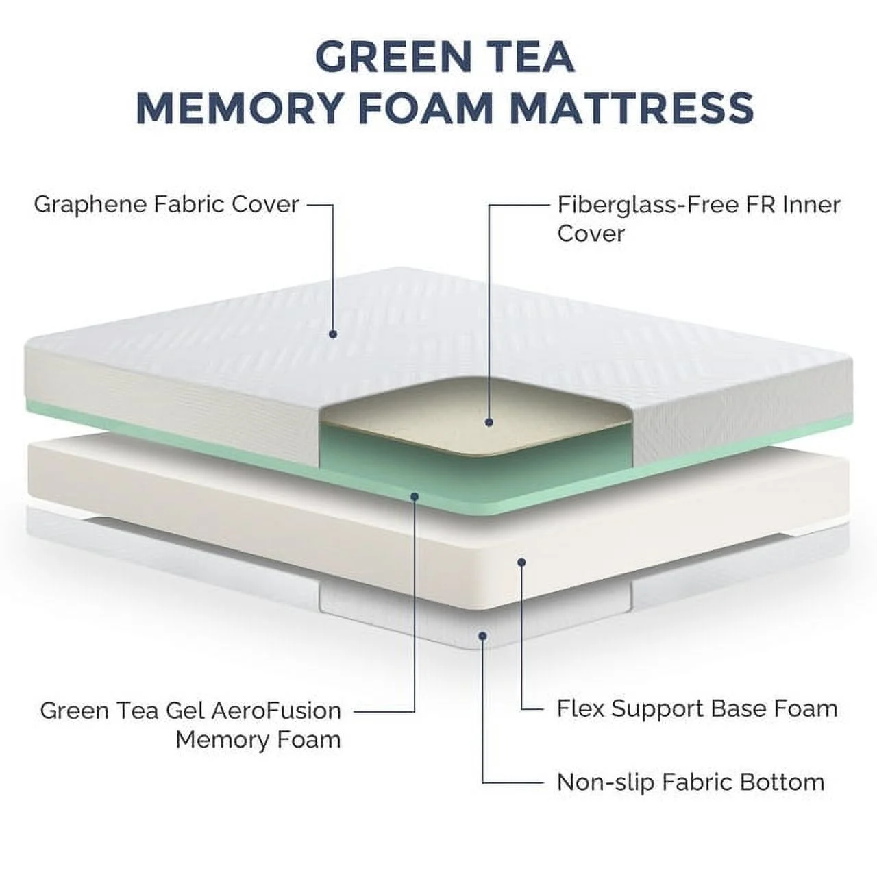 Queen Mattress, 8 inch Memory Foam Mattress with Graphene Fabric Cover, Bed in a Box