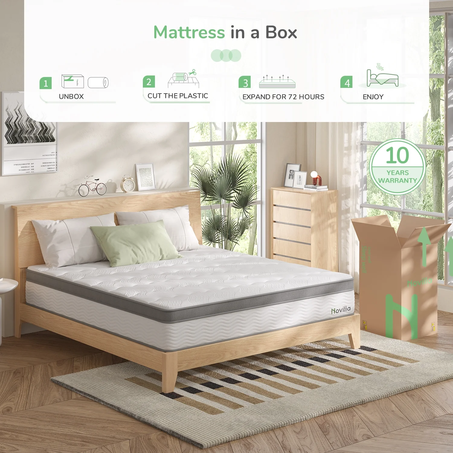 Novilla Soothe 12" Adult Gel Memory Foam and Pocket Spring Hybrid Mattress, Queen Size