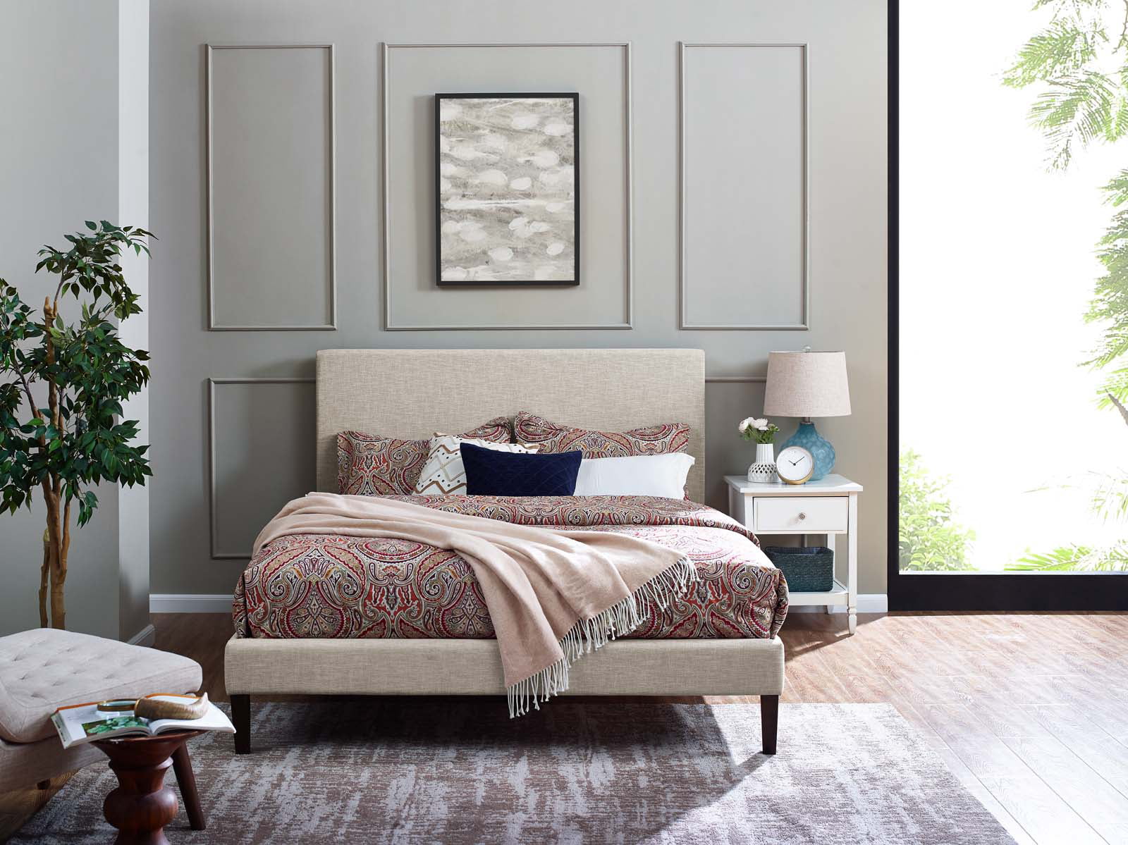 Baxton Studio Edith Modern and Contemporary Greyish Beige Fabric Queen Size Headboard