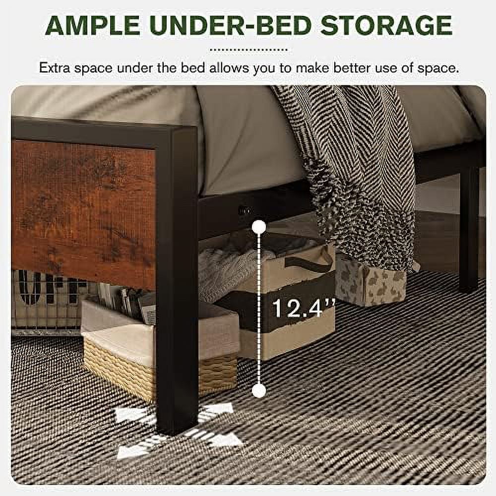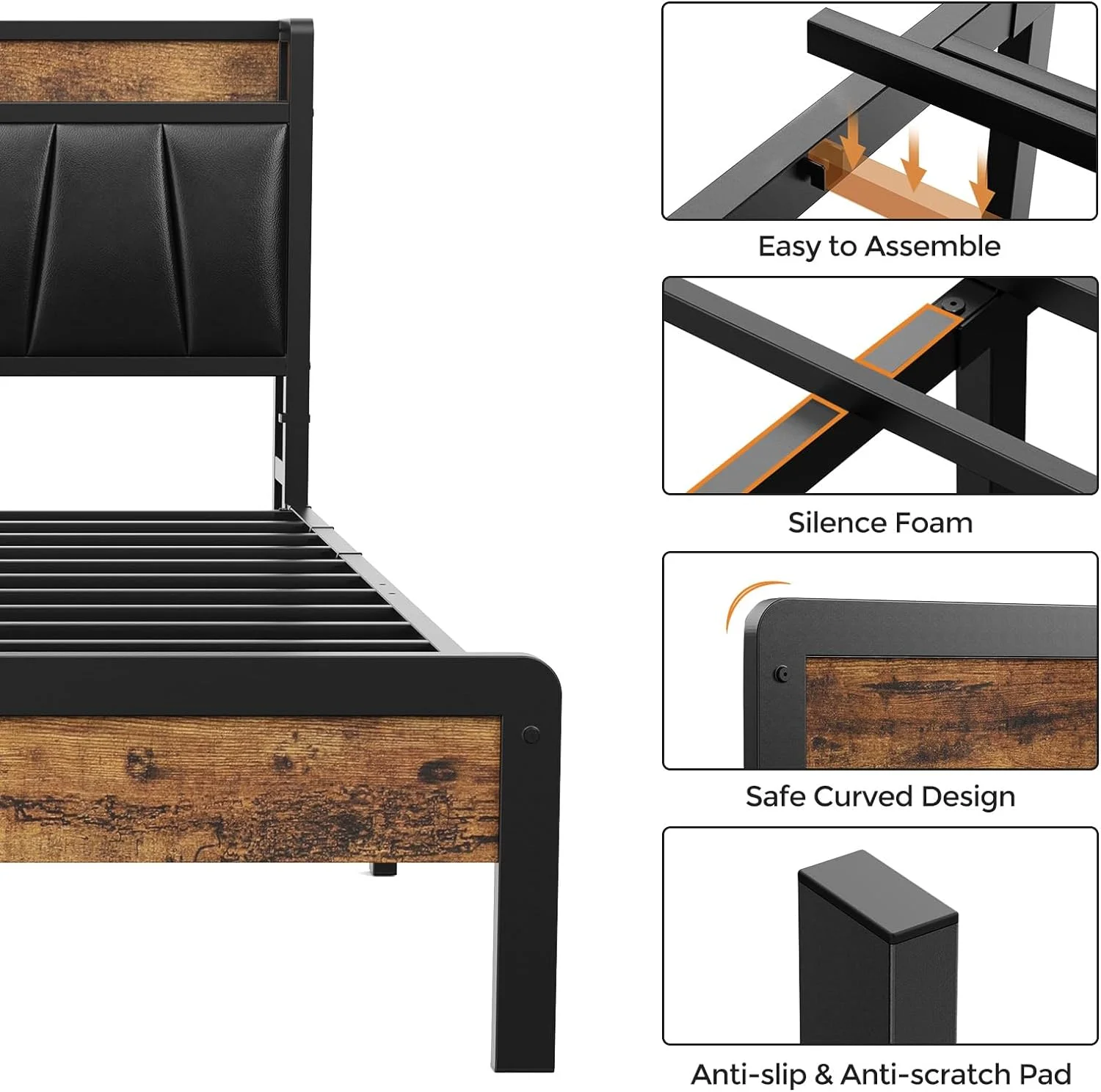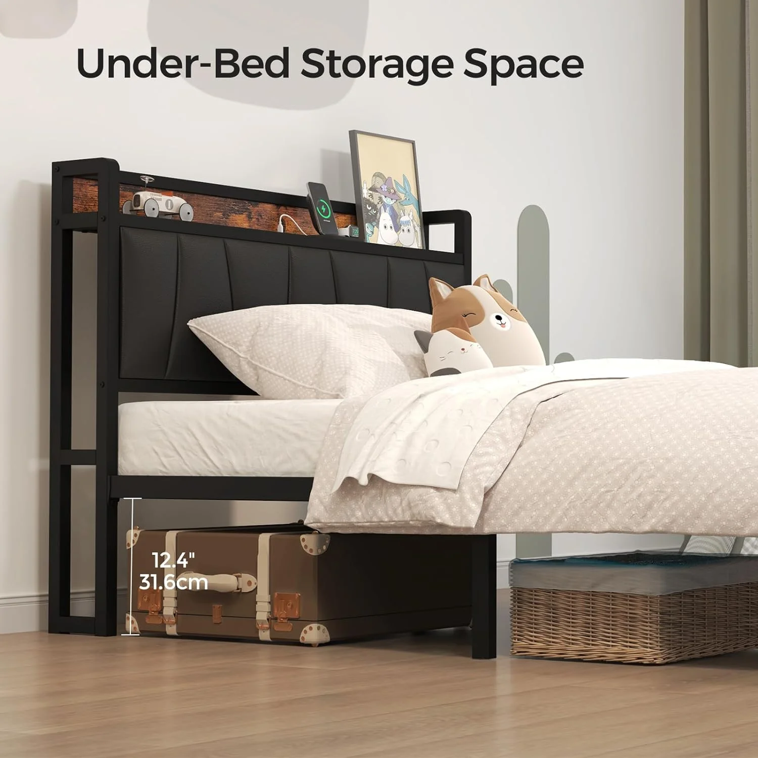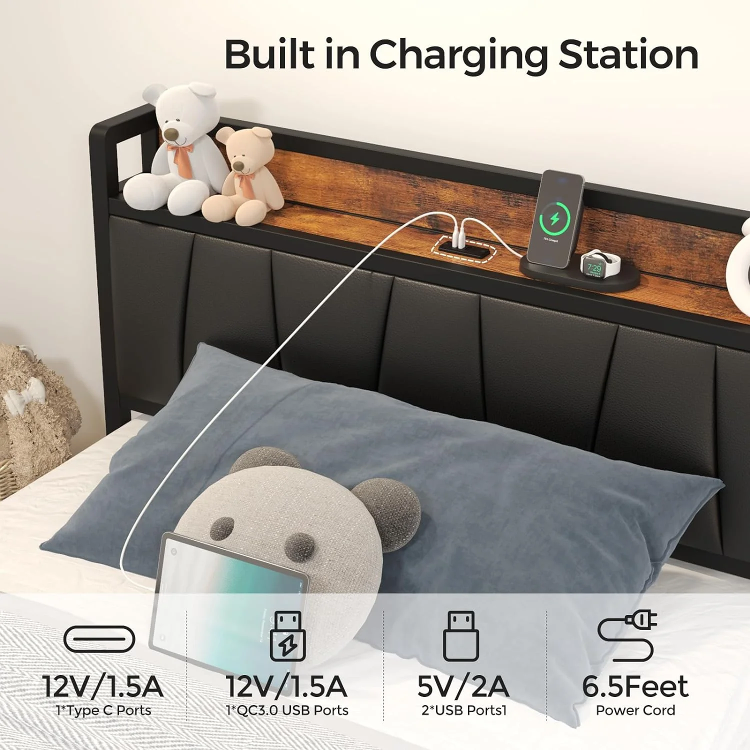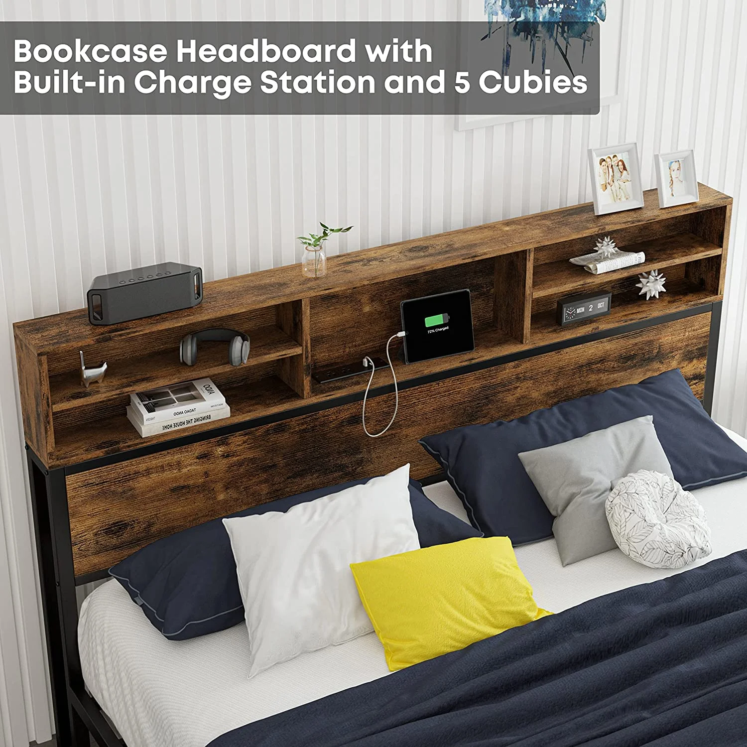 LIKIMIO Full Bed Frame with Tall Bookcase Headboard and Charging Station, NO Box Spring Need