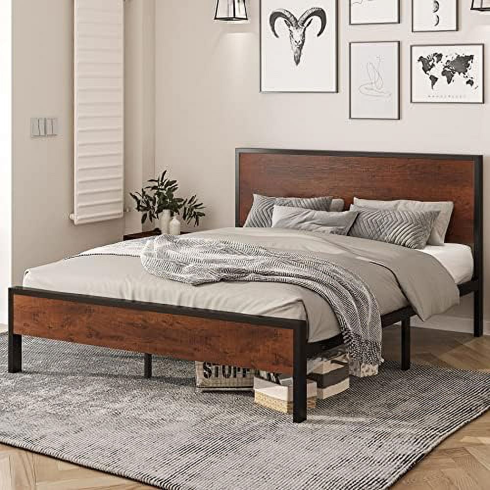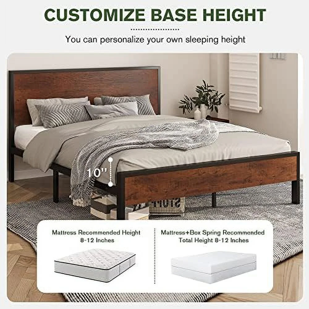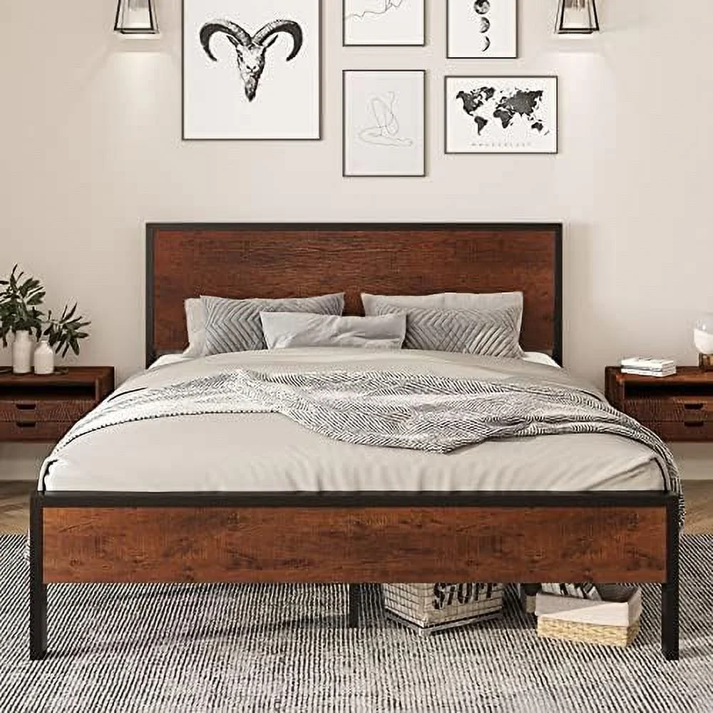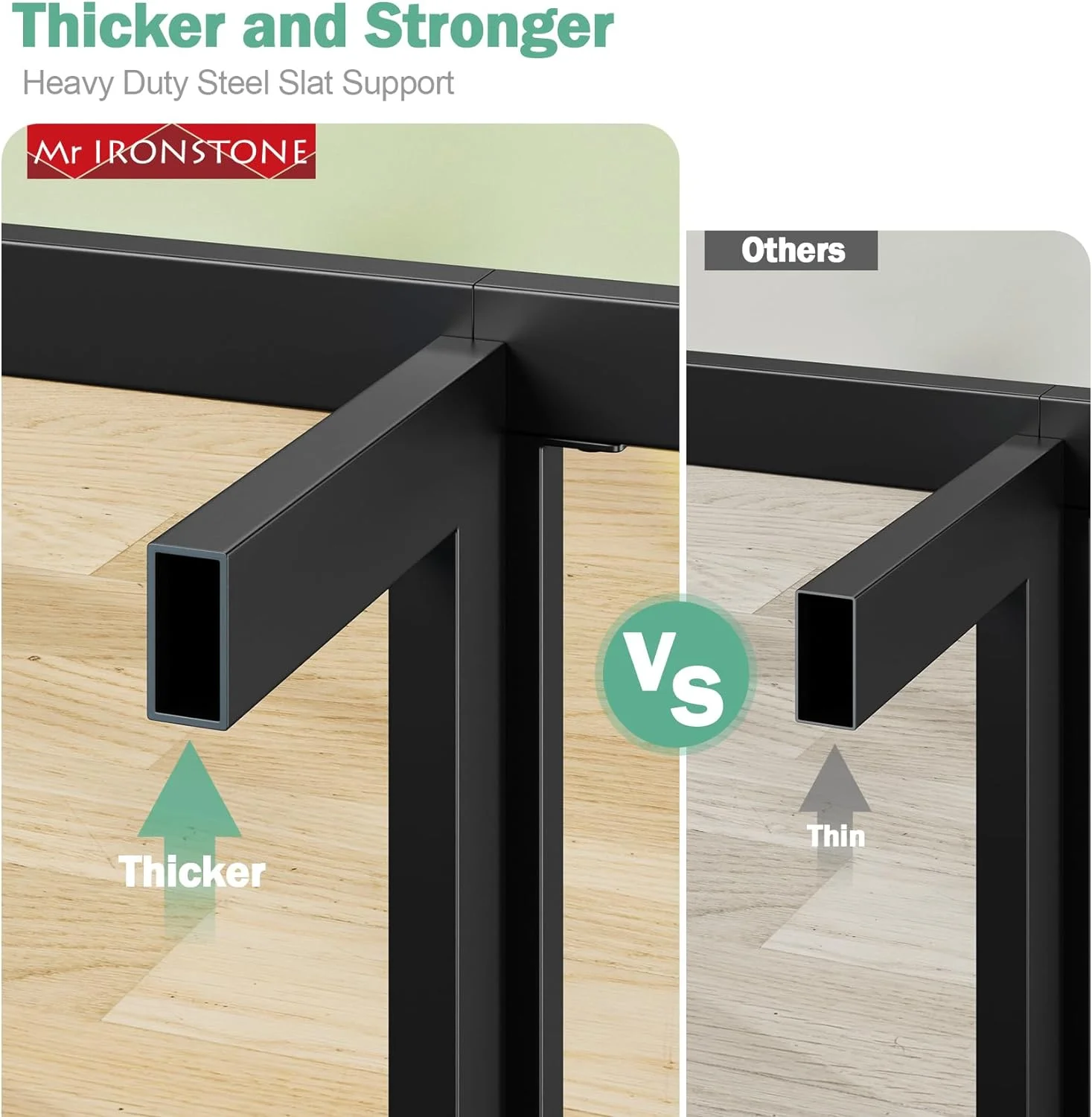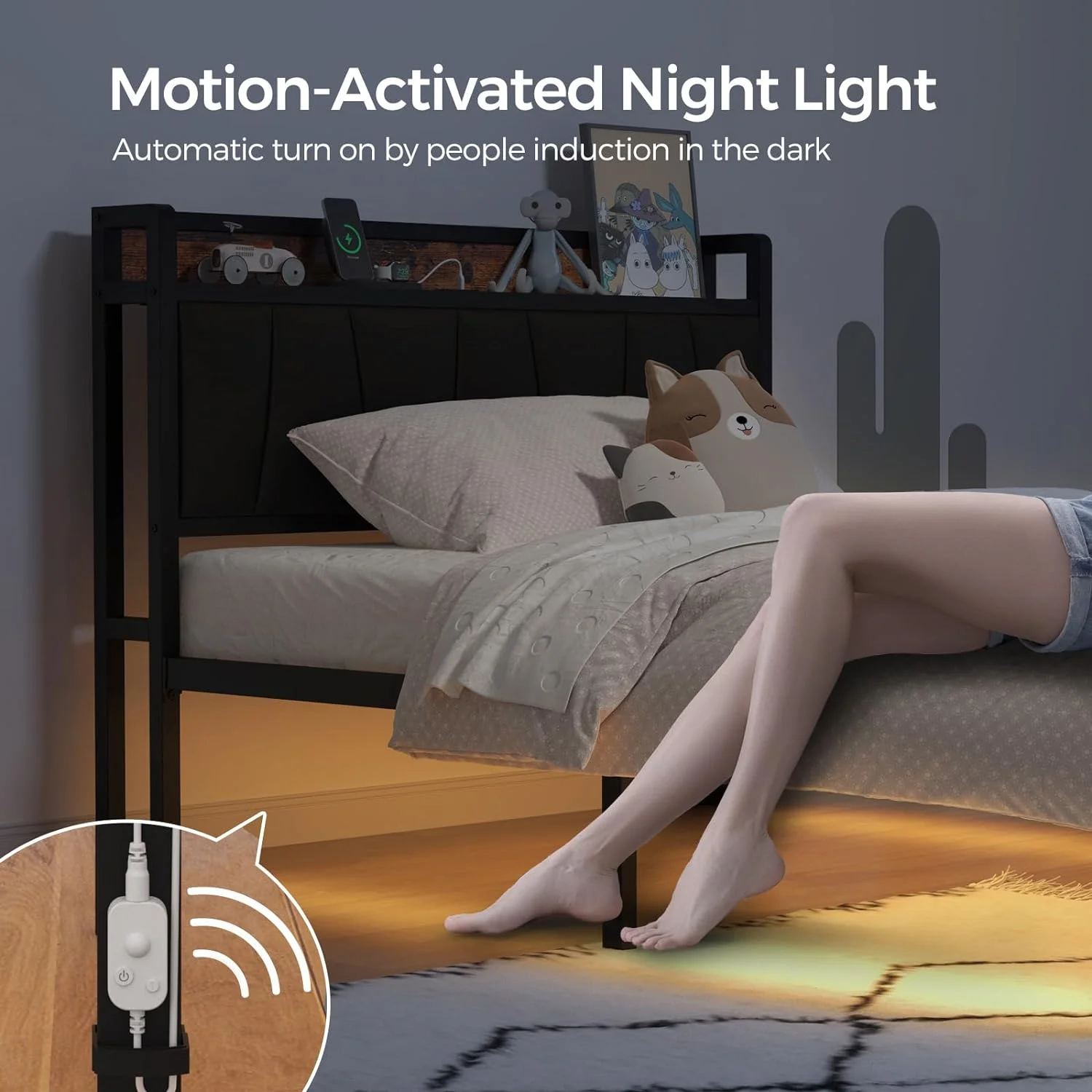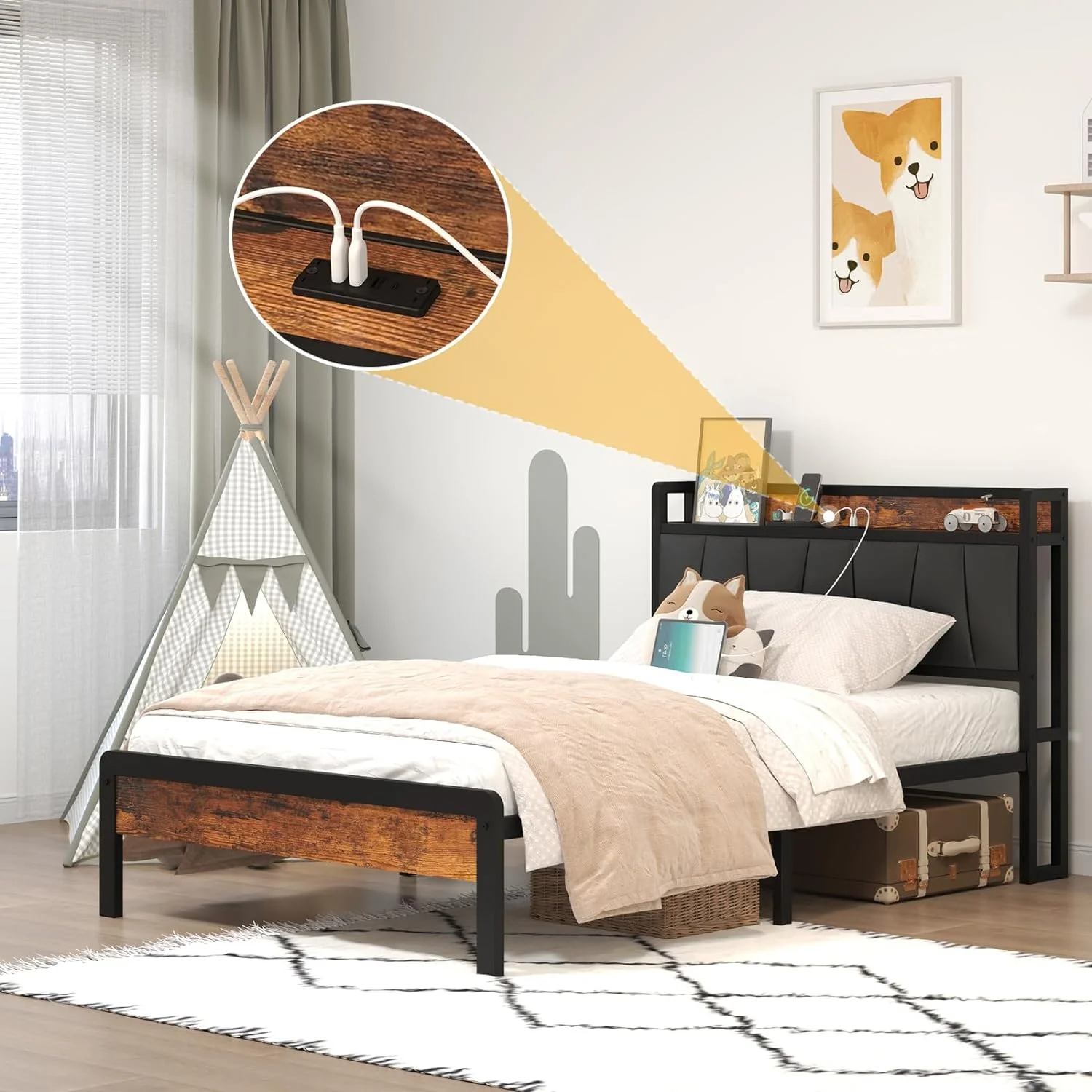 LIKIMIO Full Bed Frame with Tall Bookcase Headboard and Charging Station, NO Box Spring Need