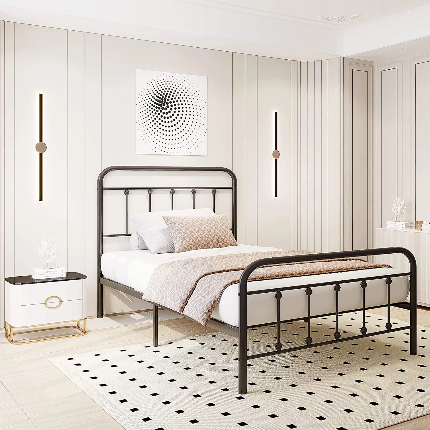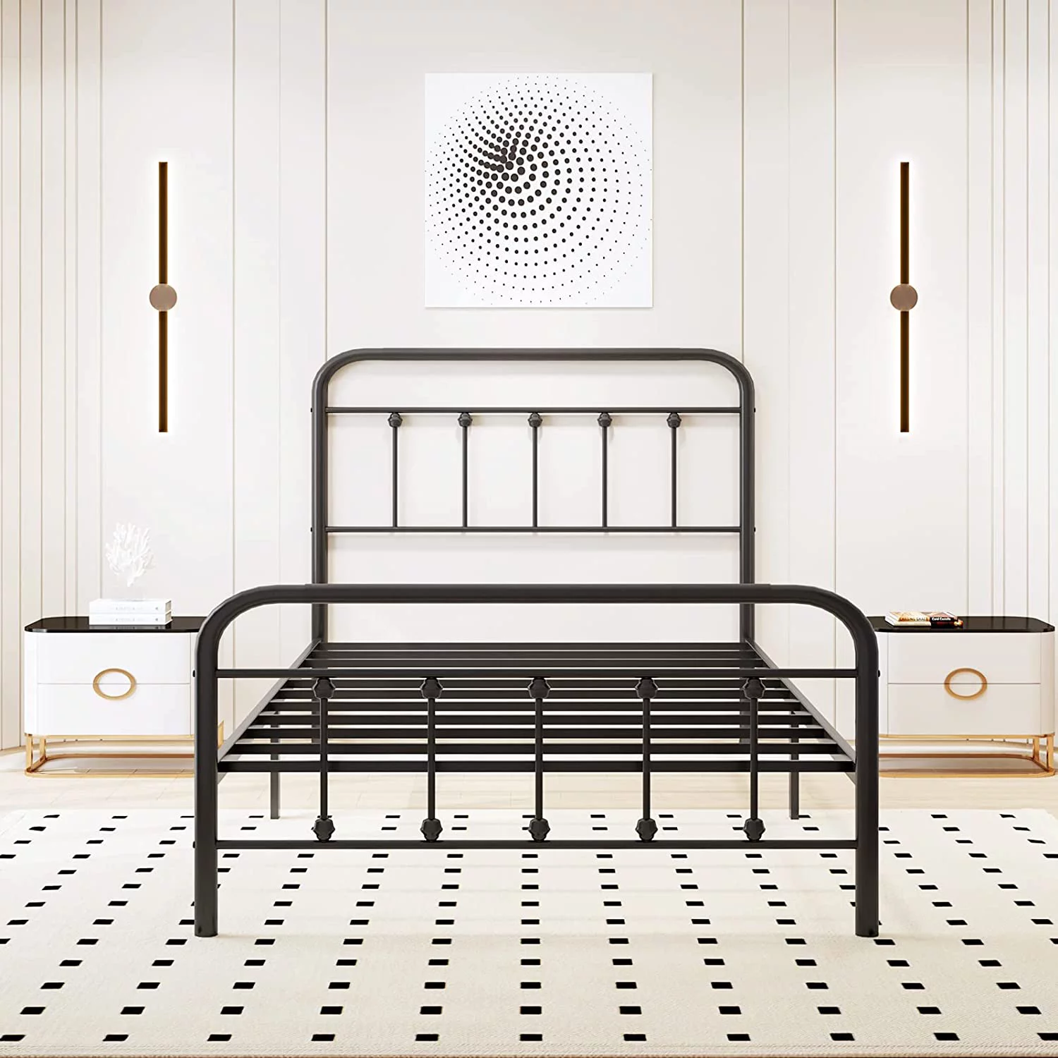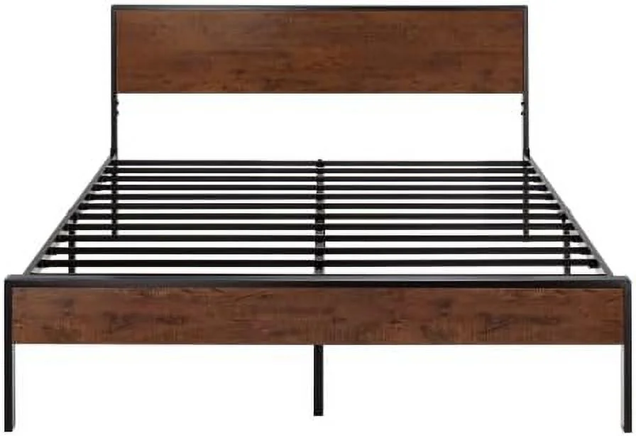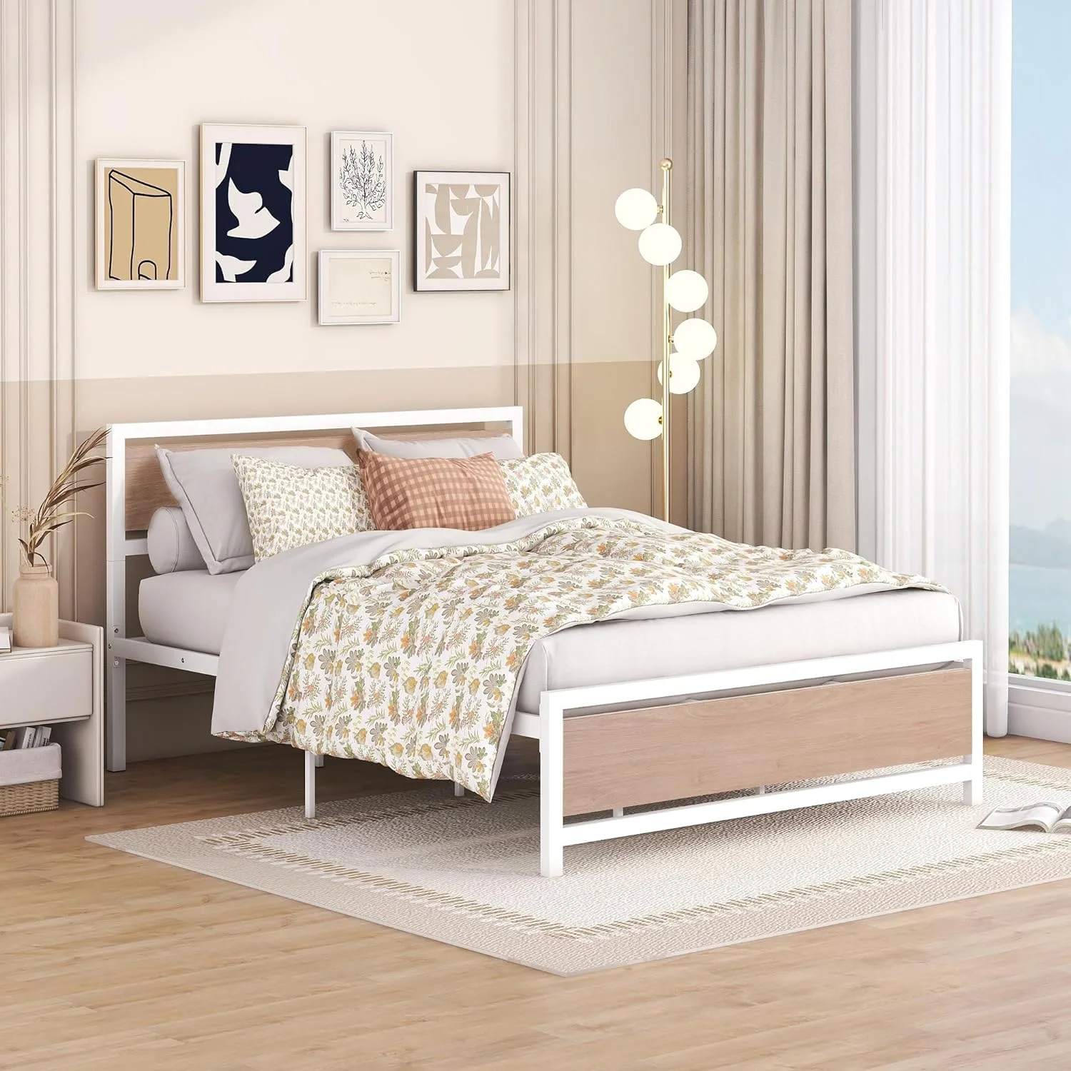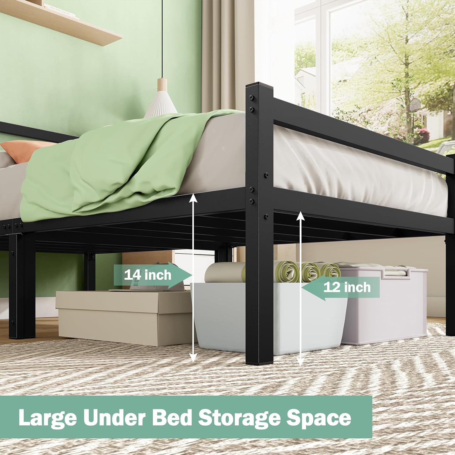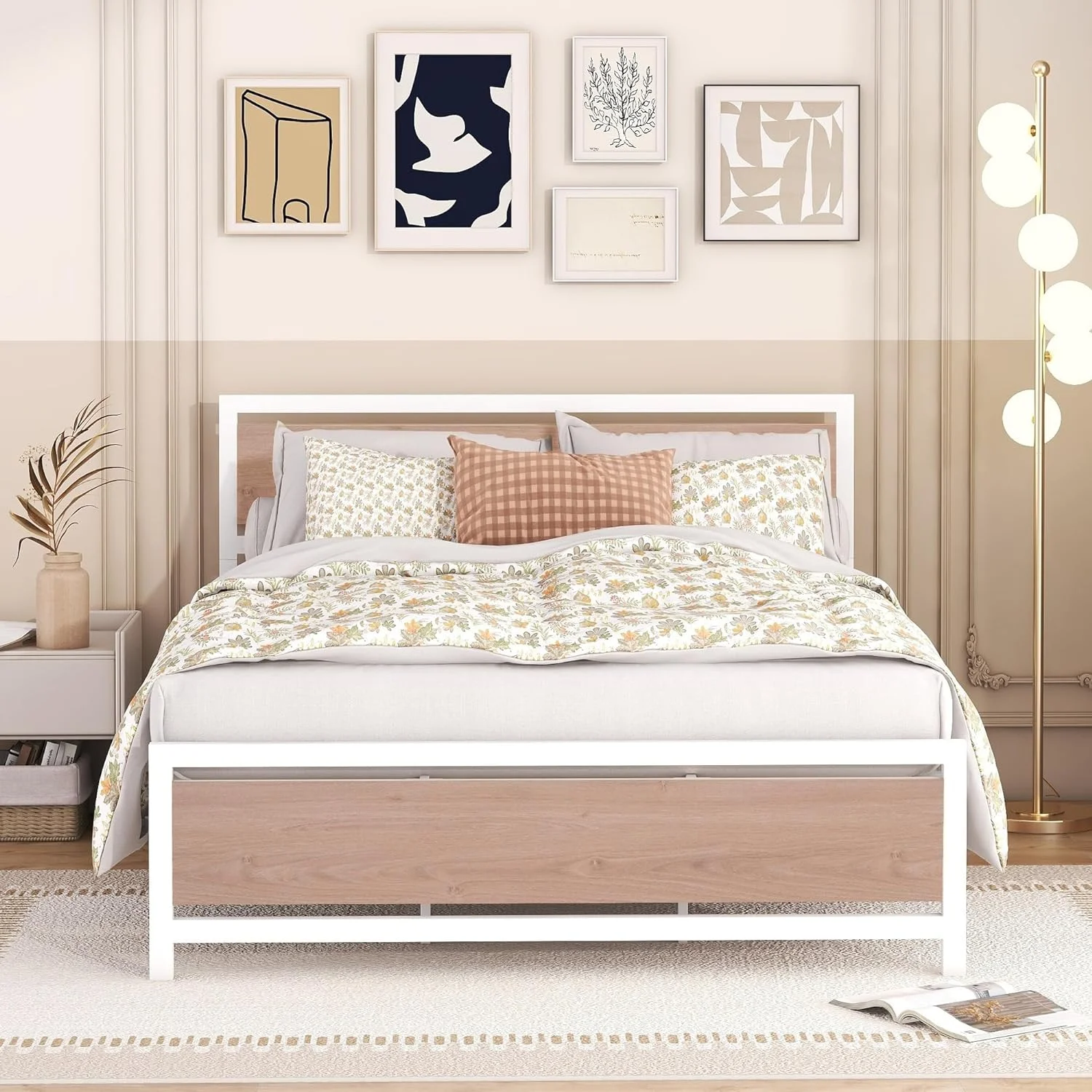 LIKIMIO Full Bed Frame with Tall Bookcase Headboard and Charging Station, NO Box Spring Need