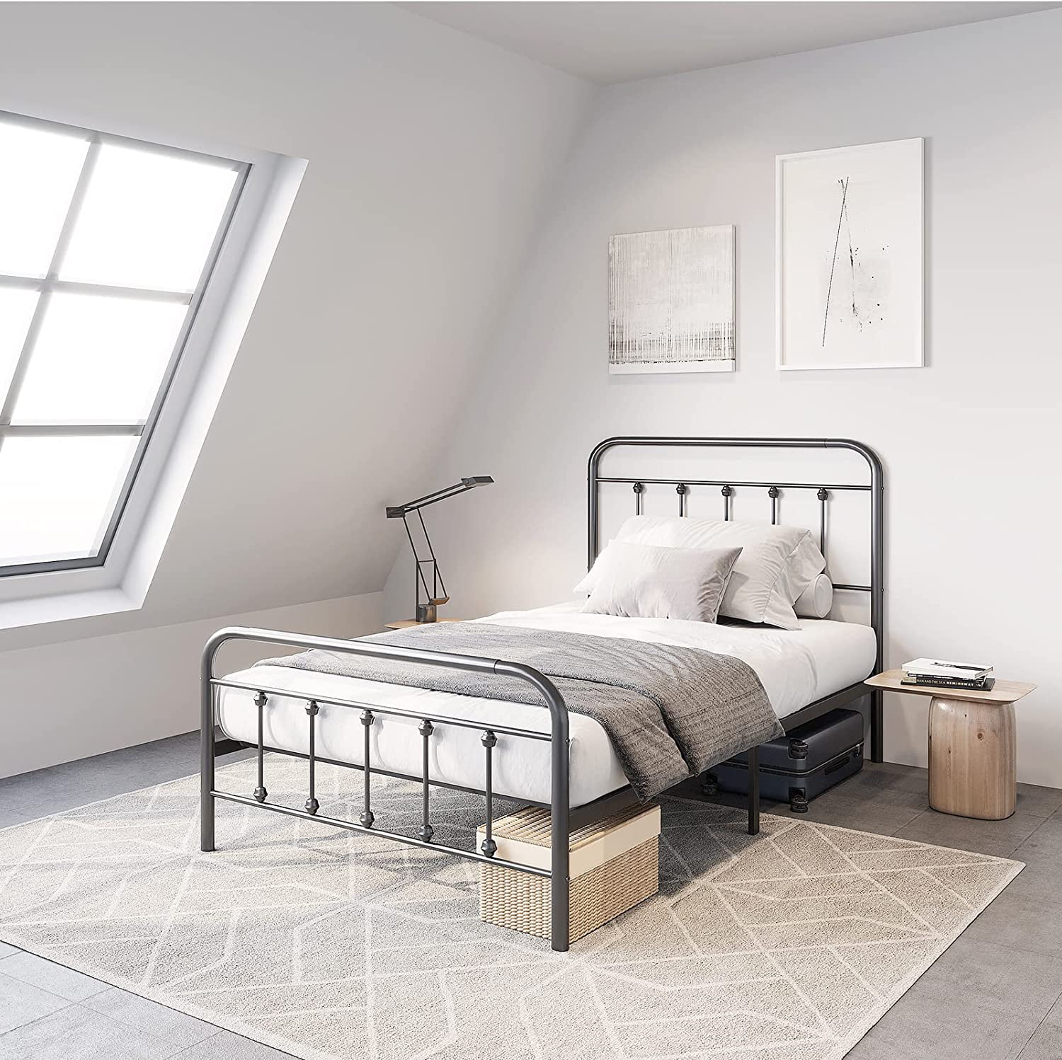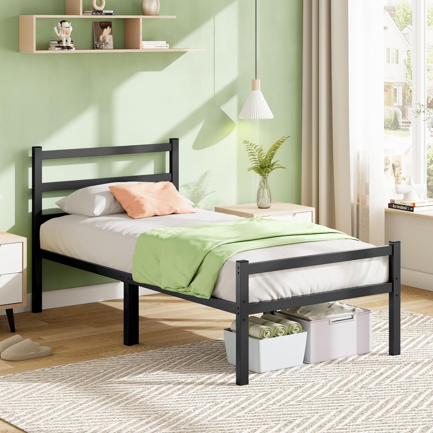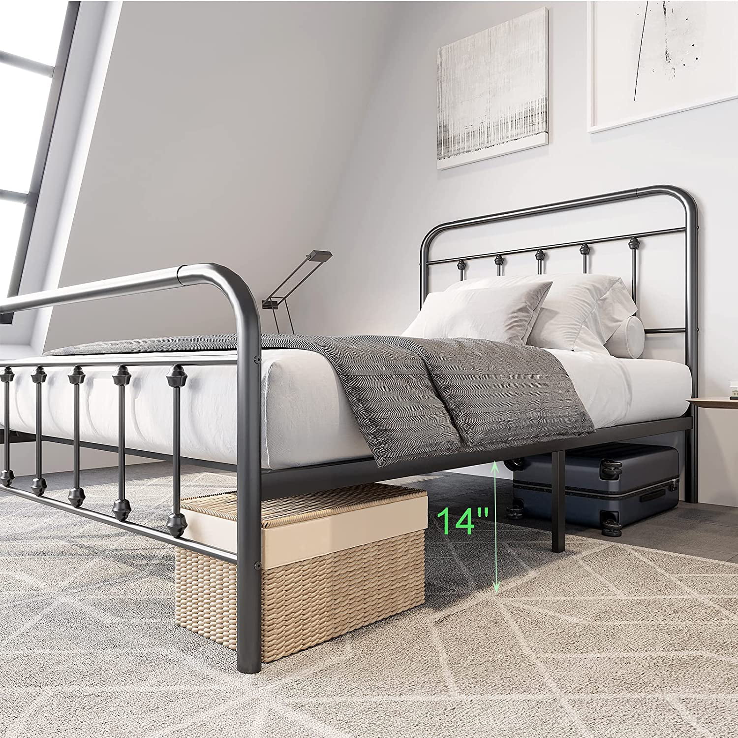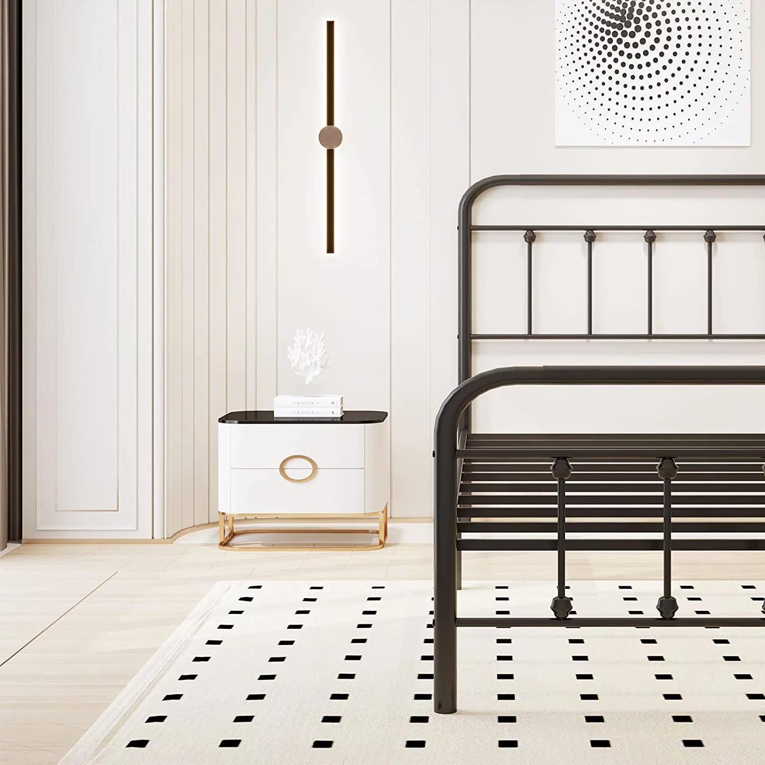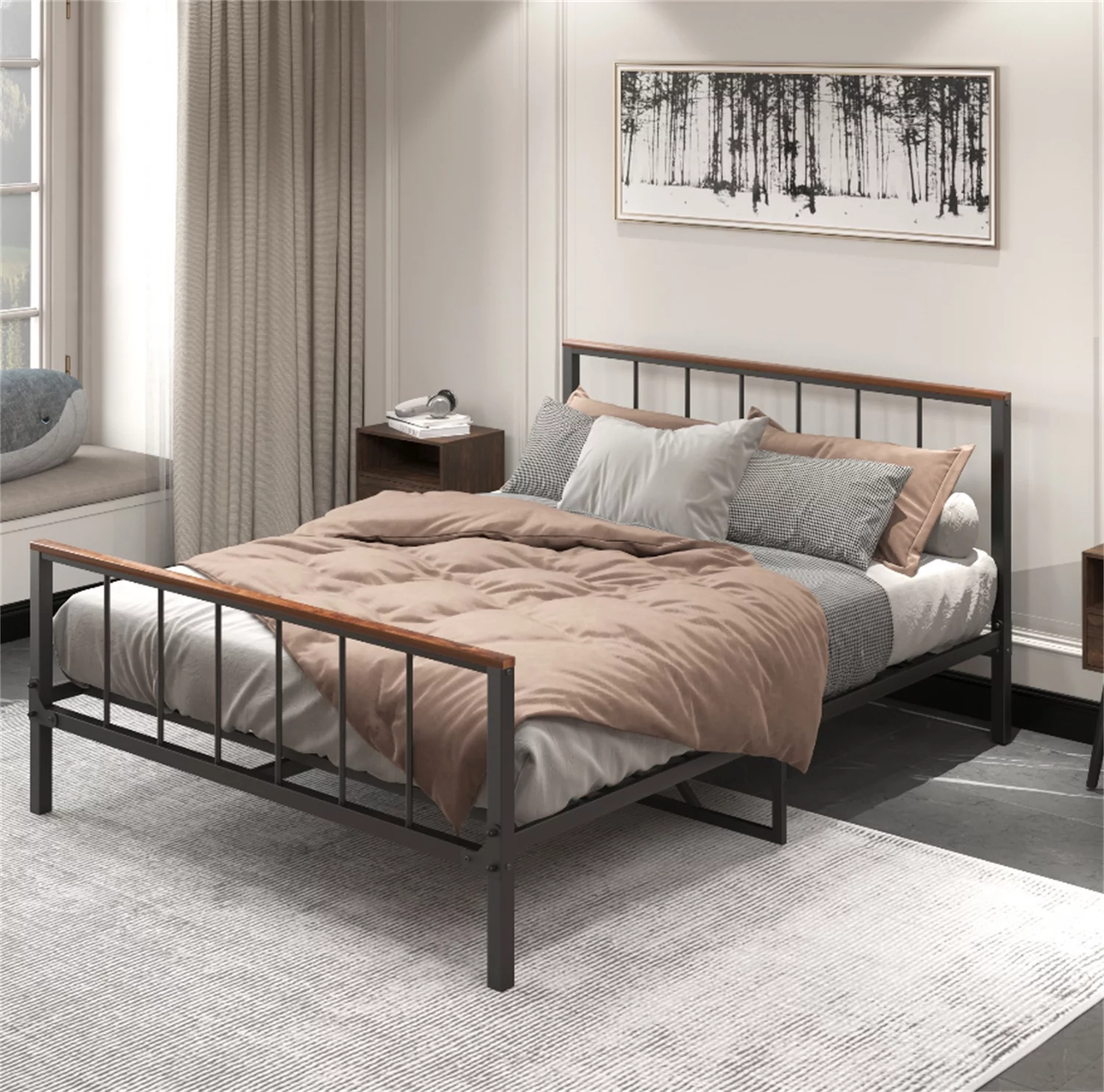 LIKIMIO Full Bed Frame with Tall Bookcase Headboard and Charging Station, NO Box Spring Need