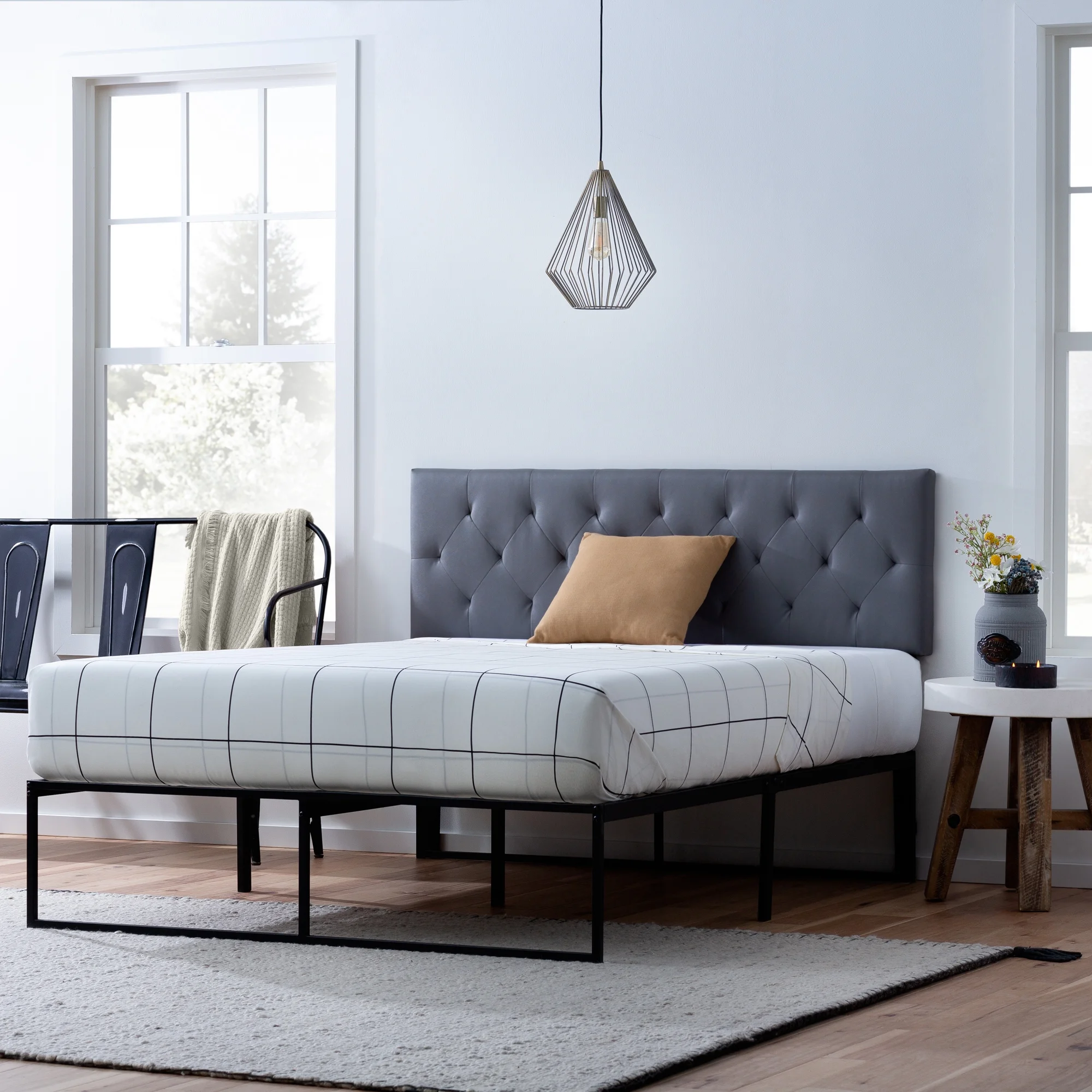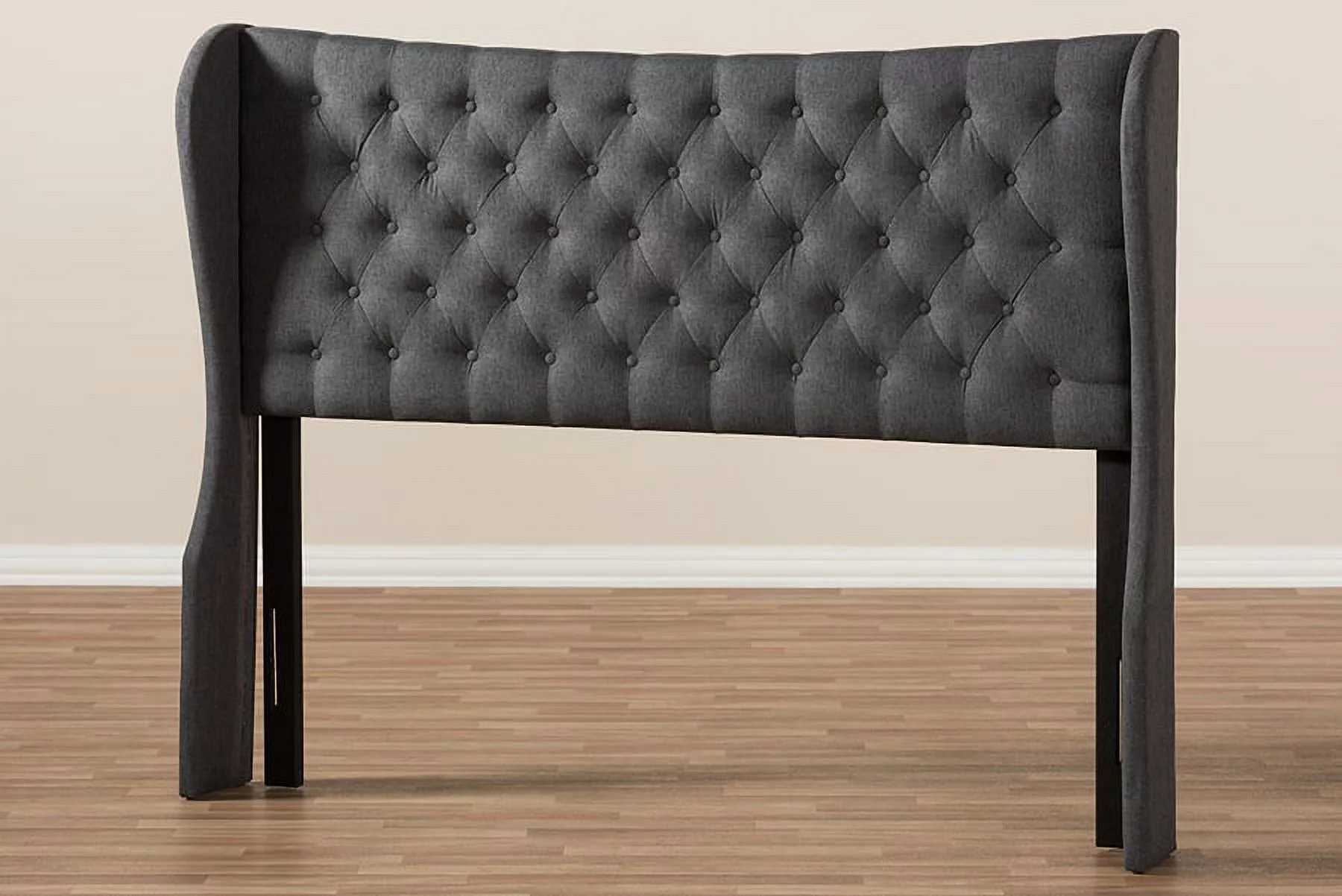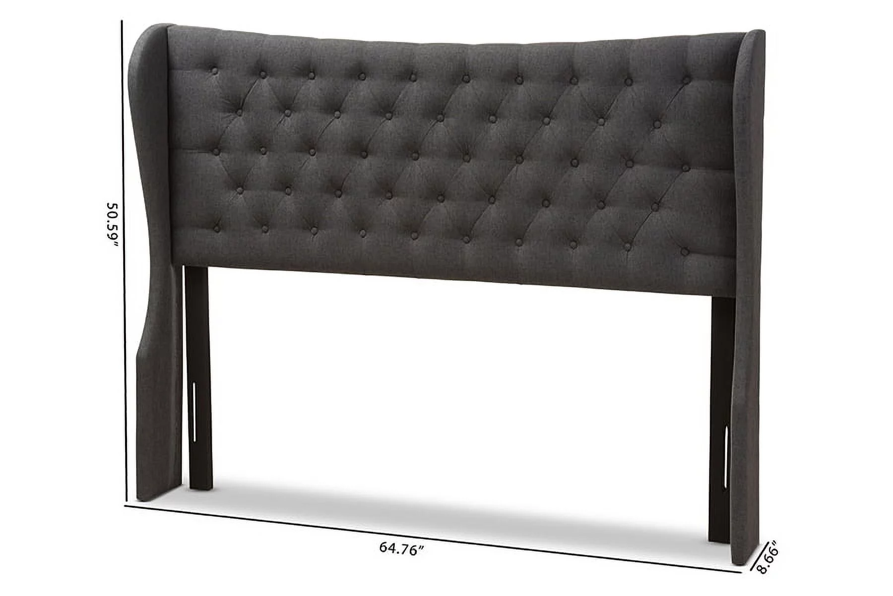 Baxton Studio Cadence Modern and Contemporary Dark Grey Fabric Button-Tufted Queen Size Winged Headboard