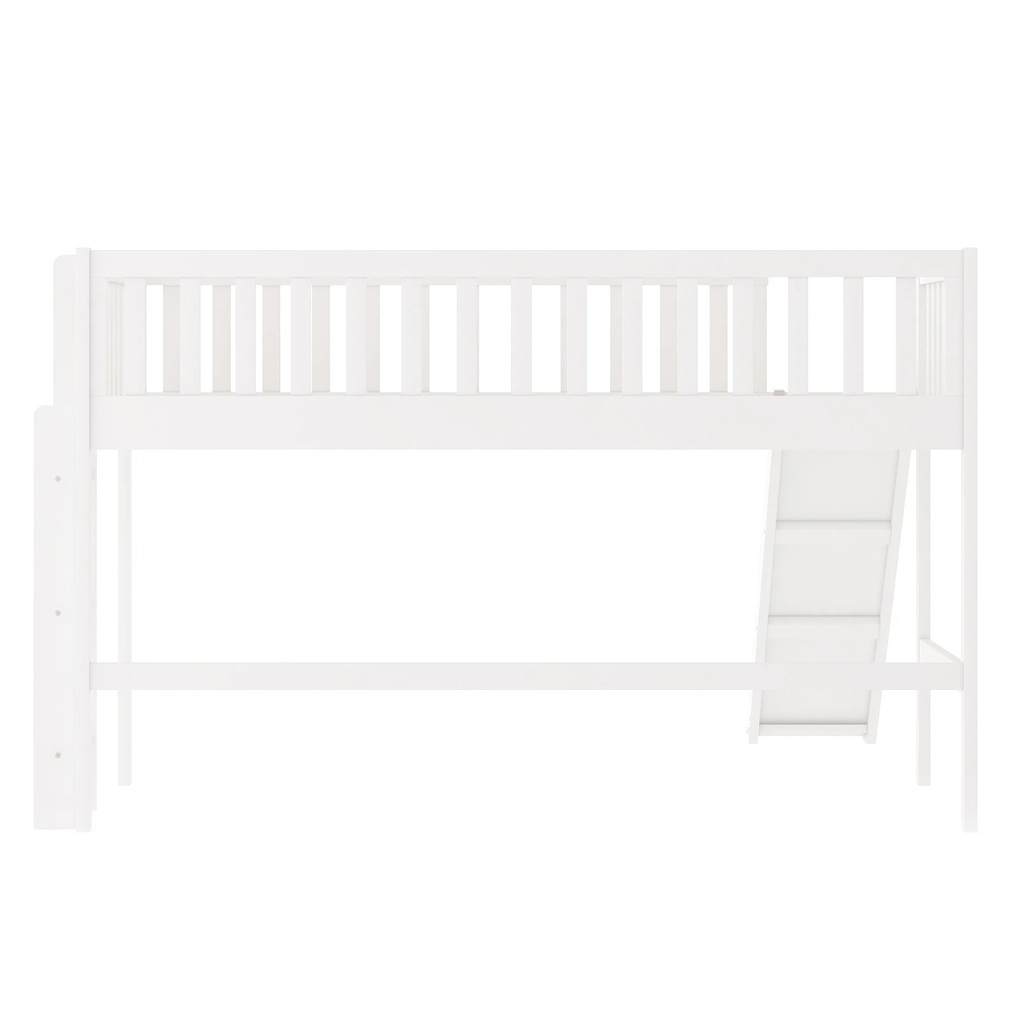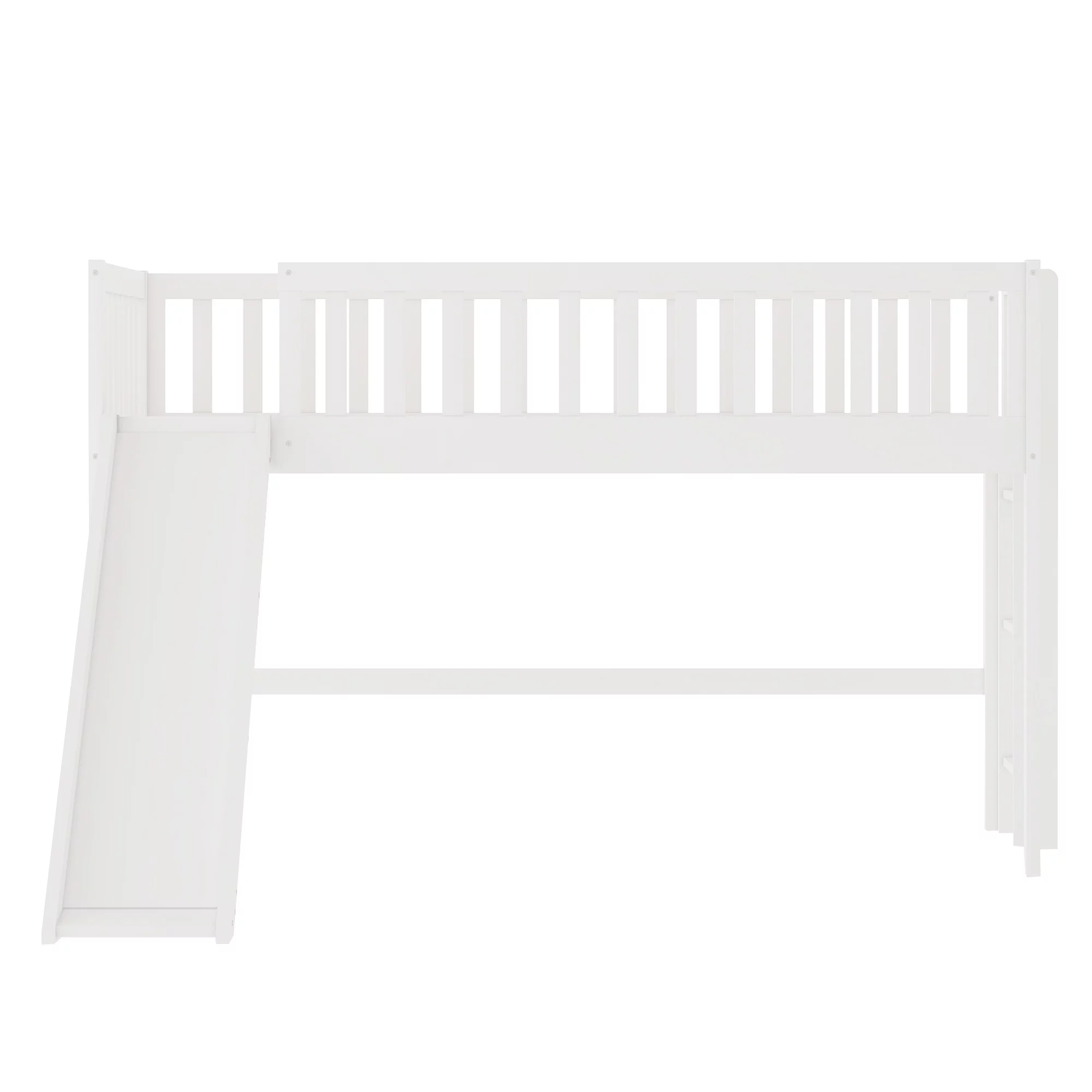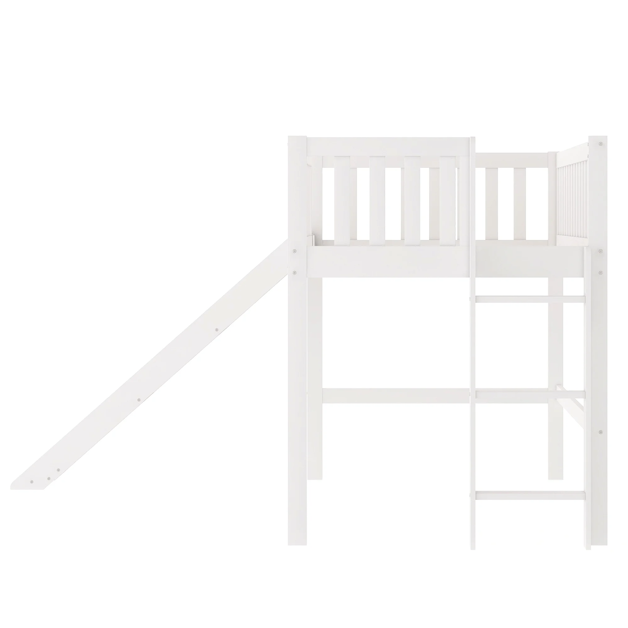Twin Bunk Beds with Slide Floor Loft Bed Solid Wood Twin Size Low Loft Bed with Slide and Ladder No Box Spring Required