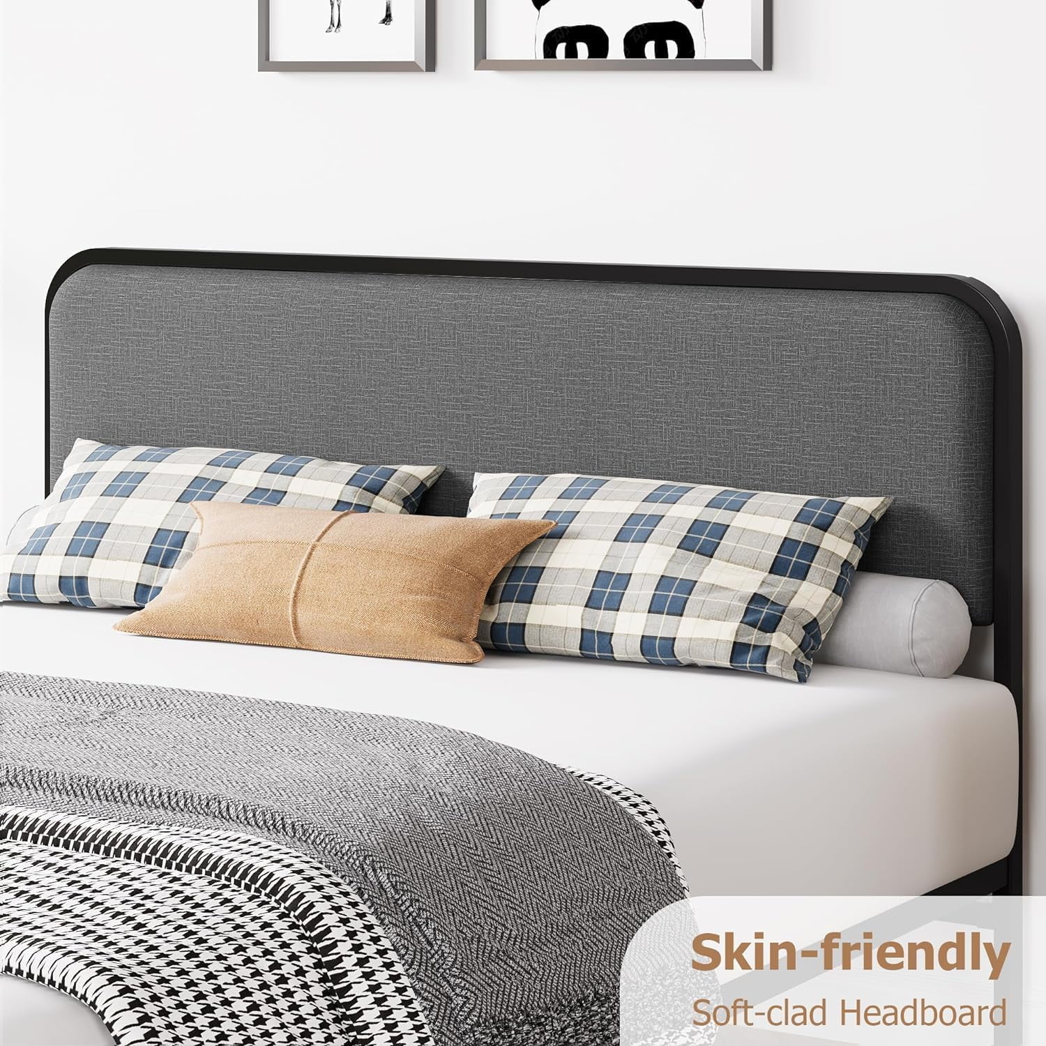 SAFAVIEH Dane Welt Piping Classic Upholstered Headboard, Queen, Charcoal/True Taupe