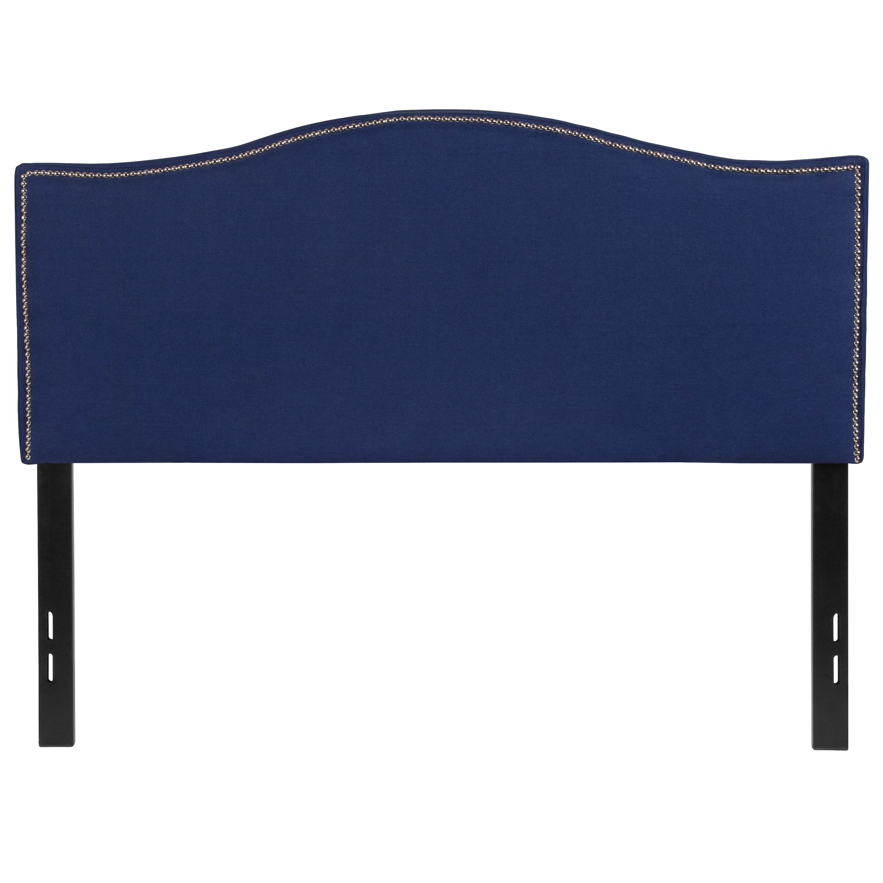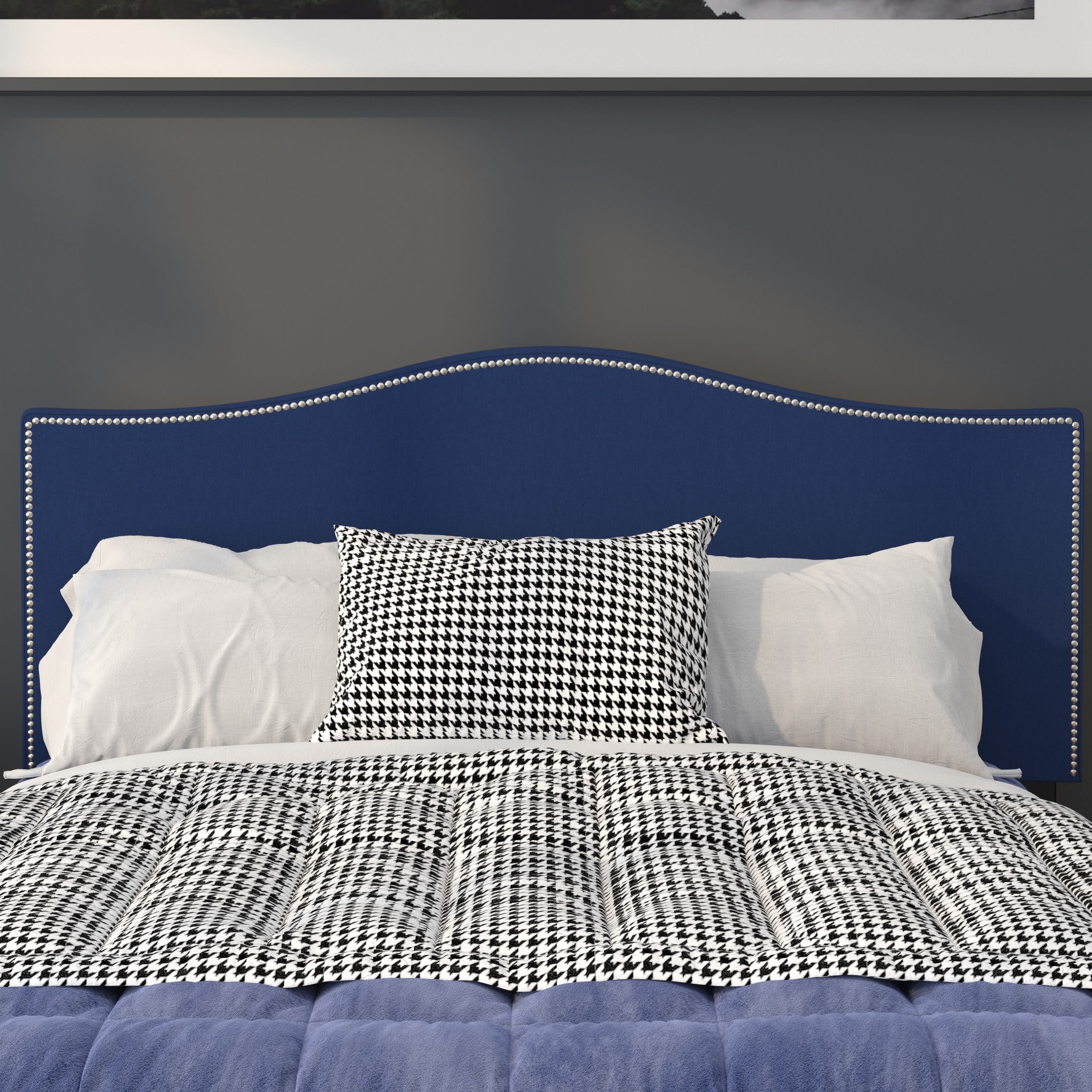 Emma + Oliver Upholstered Full Size Headboard with Nailtrim in Navy Fabric