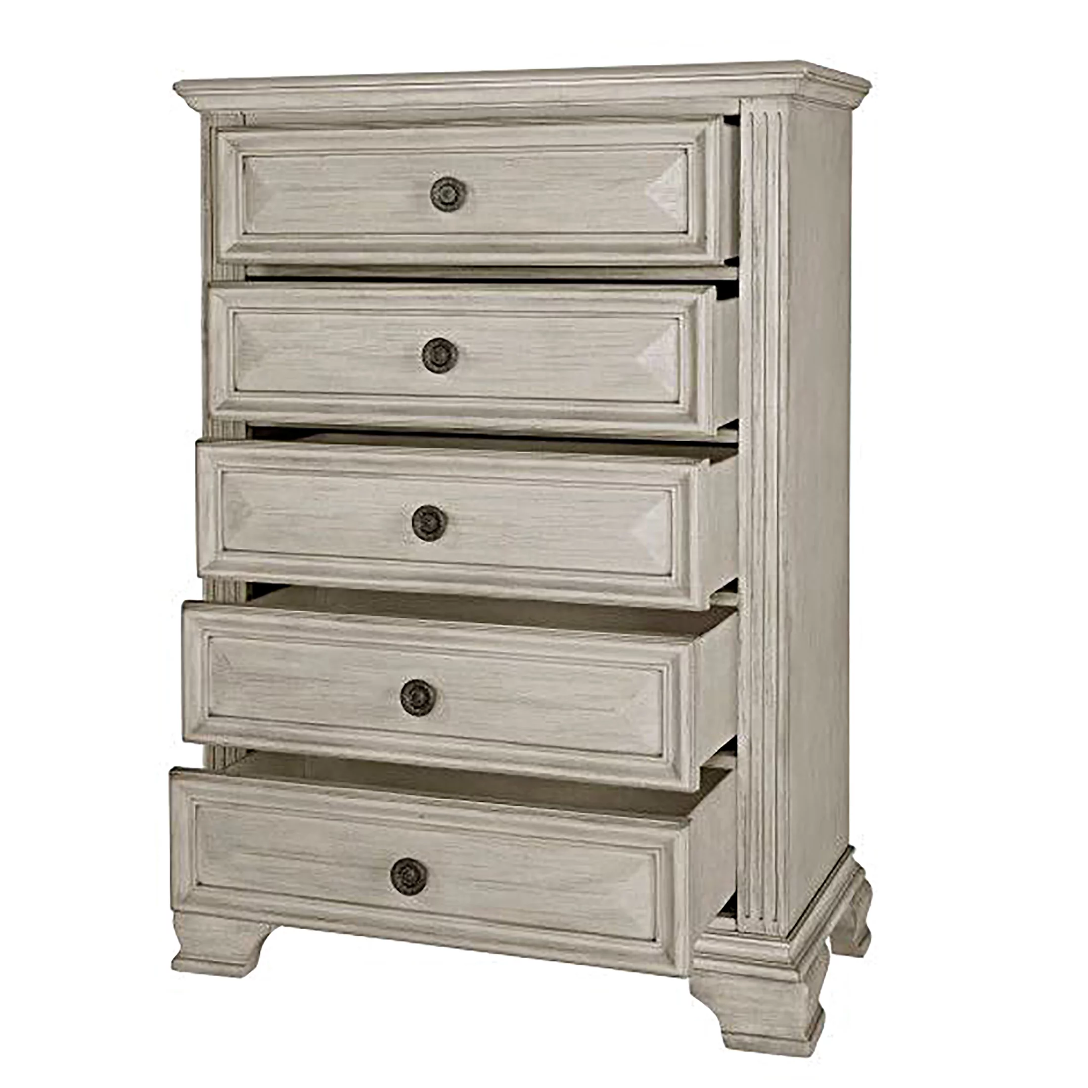 Roundhill Imerland Contemporary White Wash Finish Bedroom Set, Queen Bed, Dresser, Mirror, Nightstand, Chest