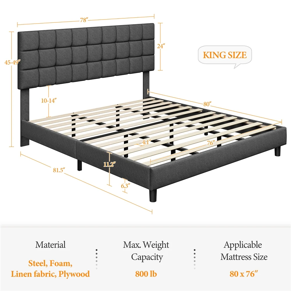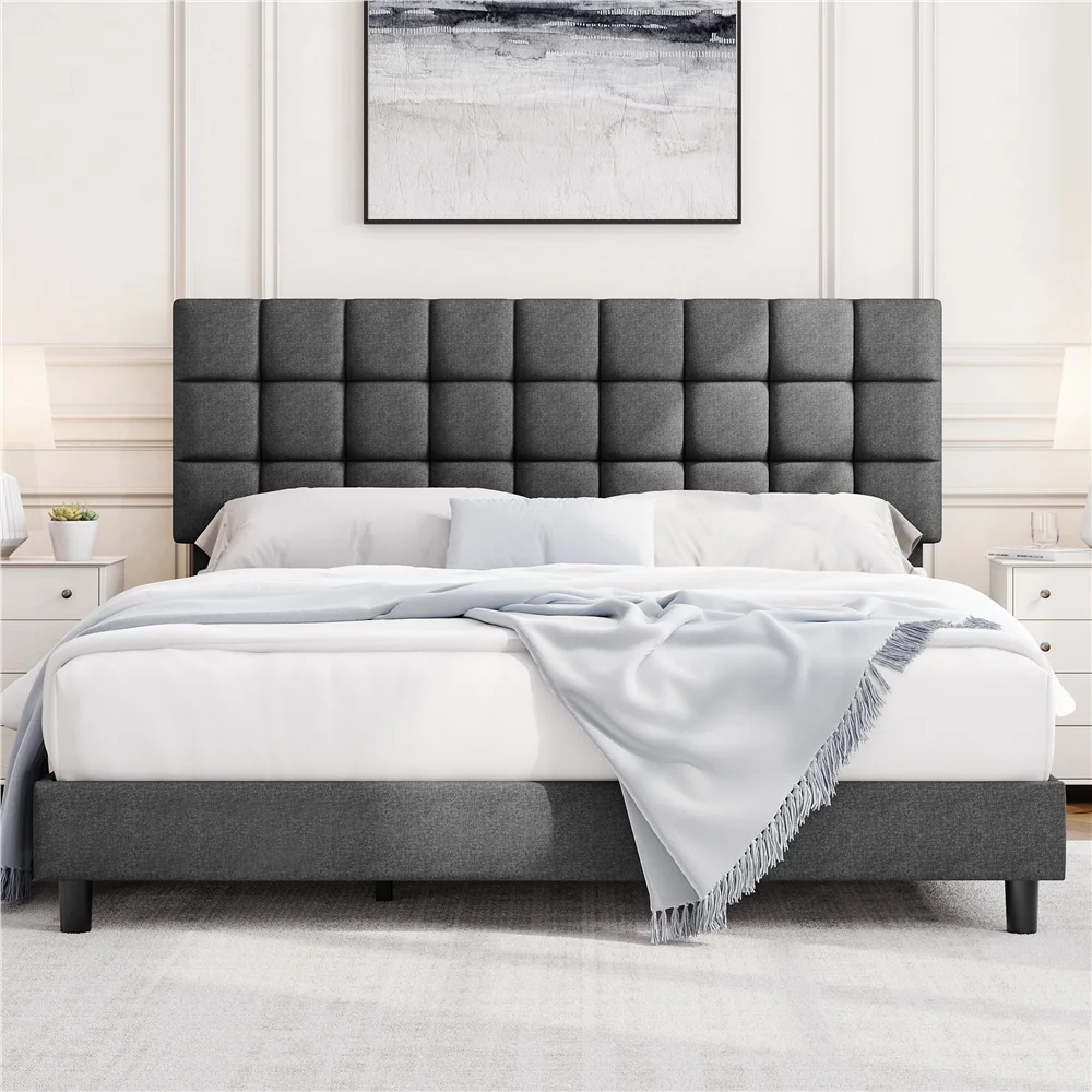 Topeakmart King Size Upholstered Platform Bed with Adjustable Tufted Headboard, Dark Gray