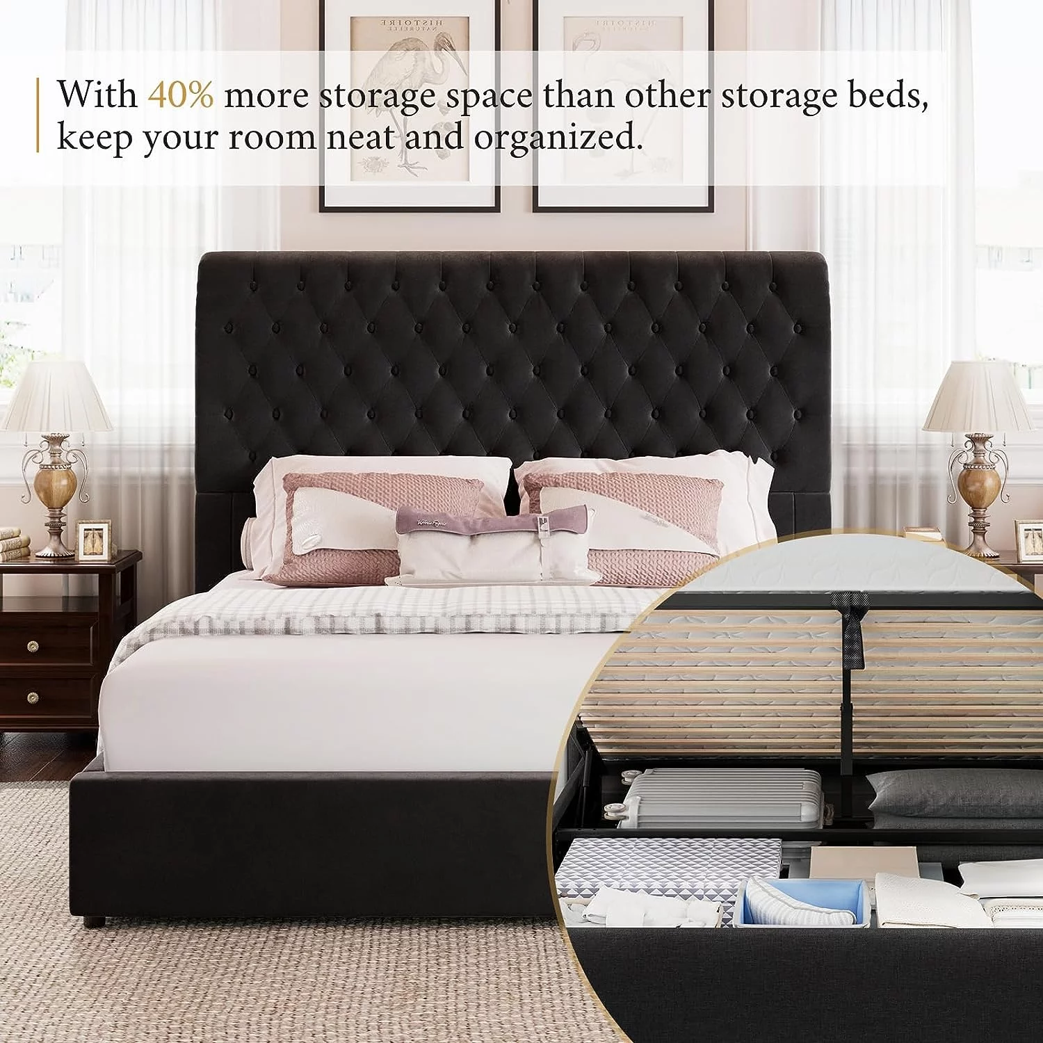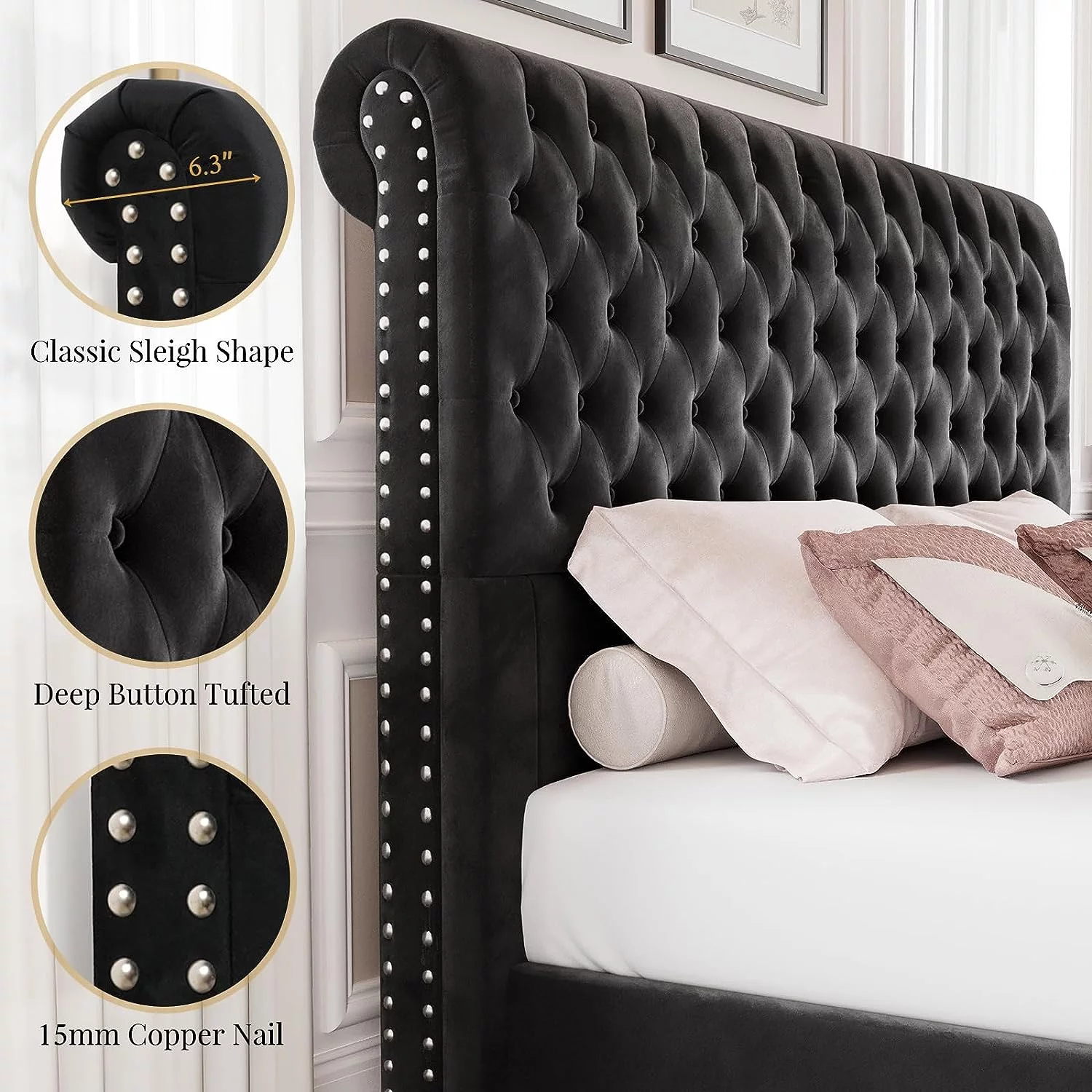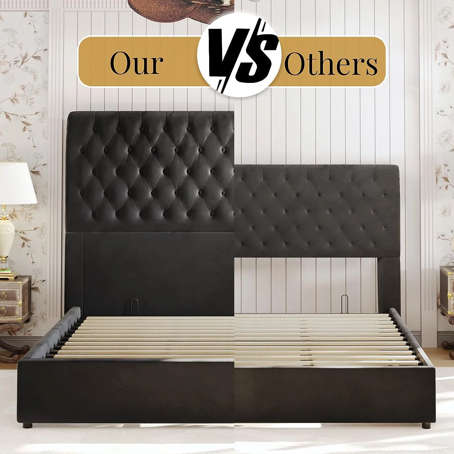 Sha Cerlin Grey King Size Platform Bed Frame with Tufted Headboard & Wingback, Adult