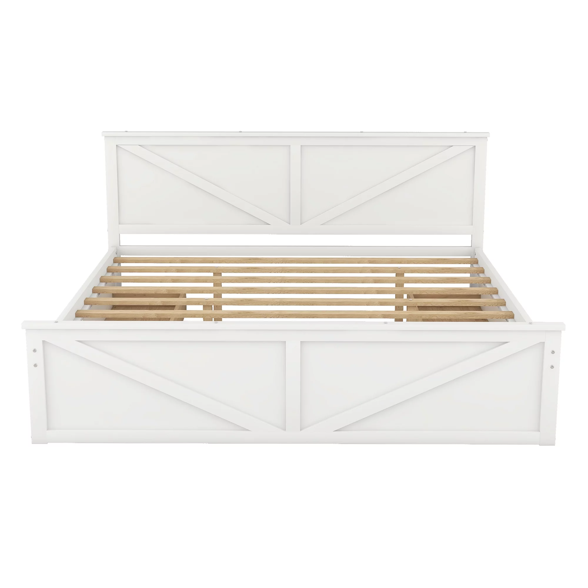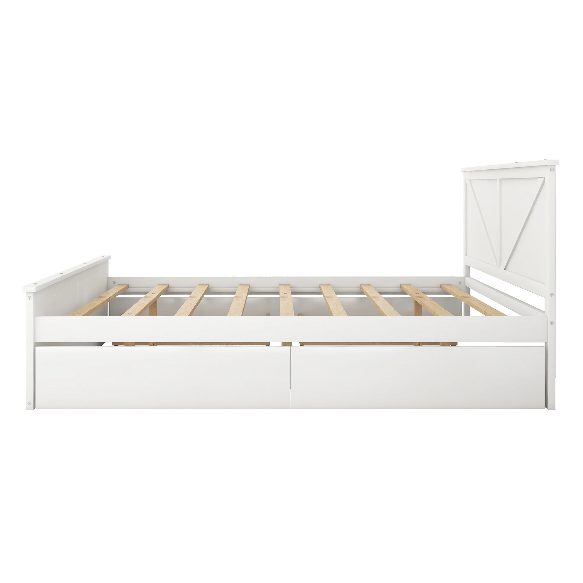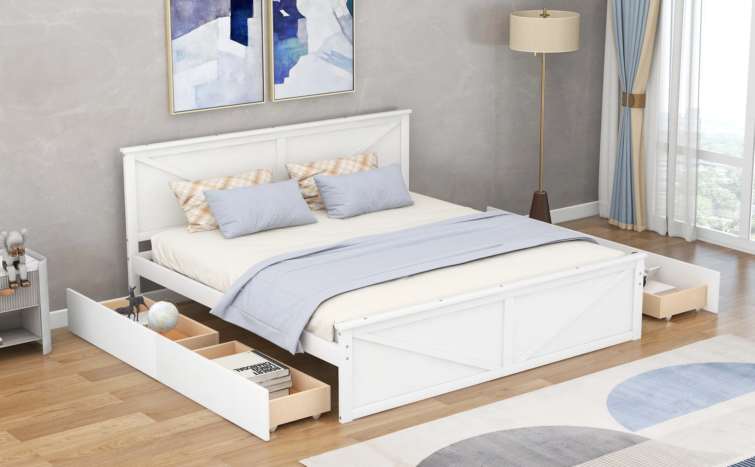 Euroco Pine Wood King Size Platform Bed with Four Storage Drawers for Living Room, White